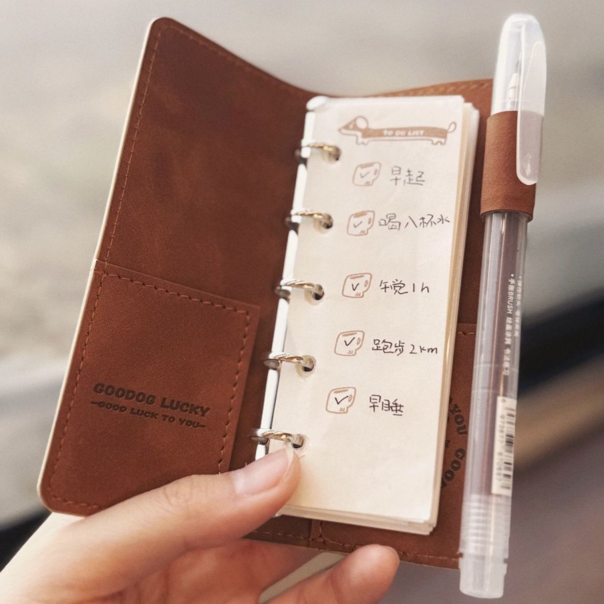 닥스훈트 m2.5 가죽 핸드북 루스리프 분리형 미니 레트로 휴대용 일정 노트