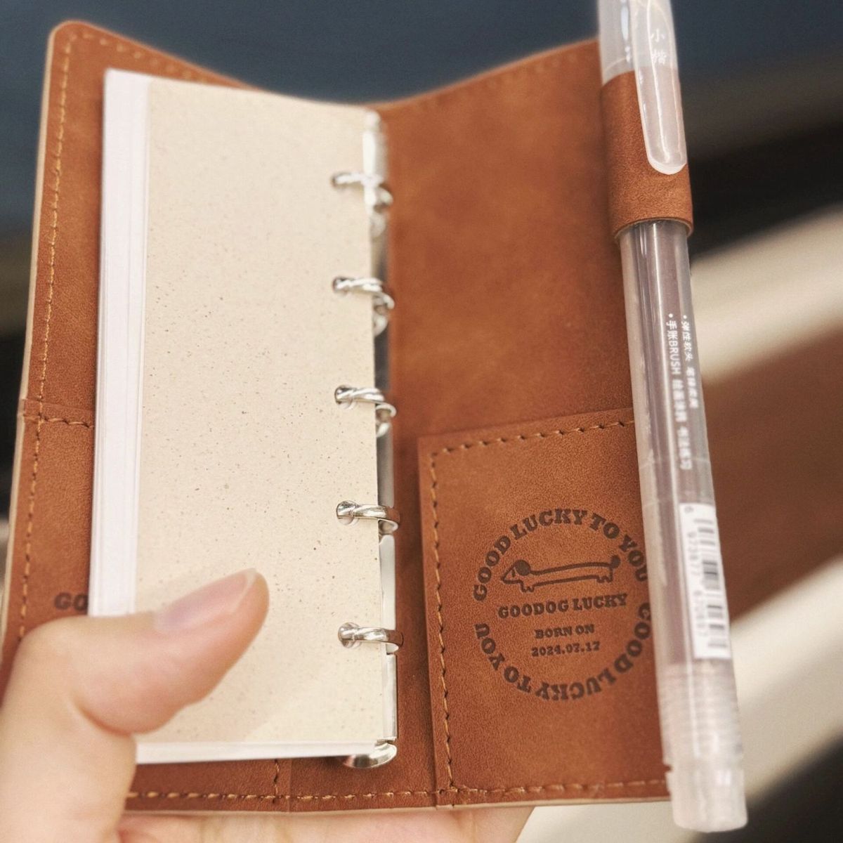 닥스훈트 m2.5 가죽 핸드북 루스리프 분리형 미니 레트로 휴대용 일정 노트스토어 가기