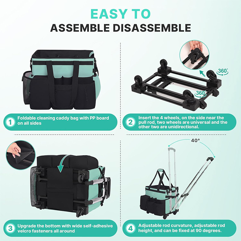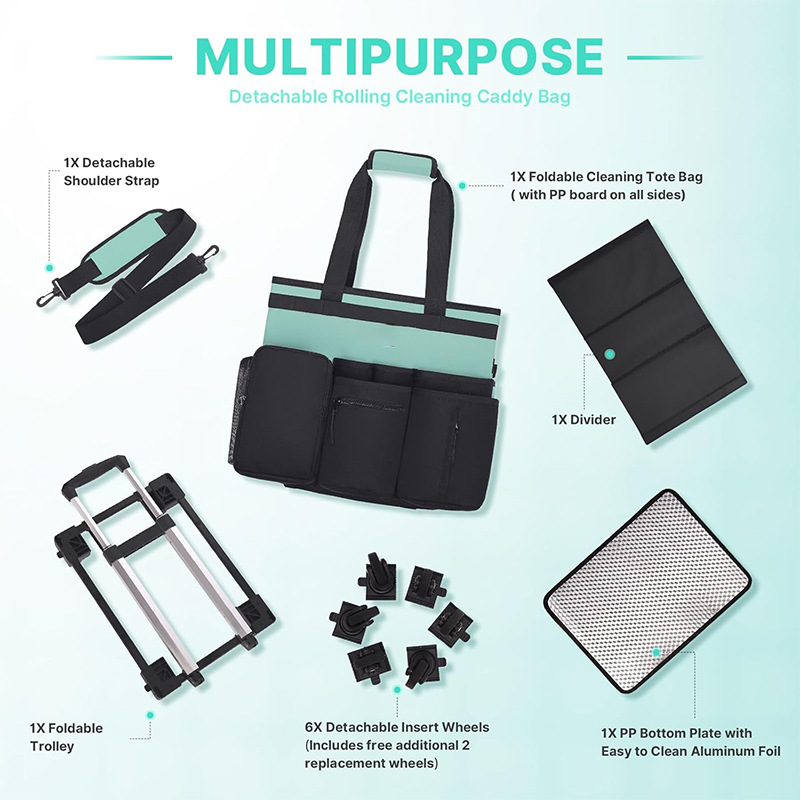 국경 간 대용량 청소 도구 보관 가방 다기능 하우스키핑 청소 휴대용 도구 정리 바퀴 트롤리 가방