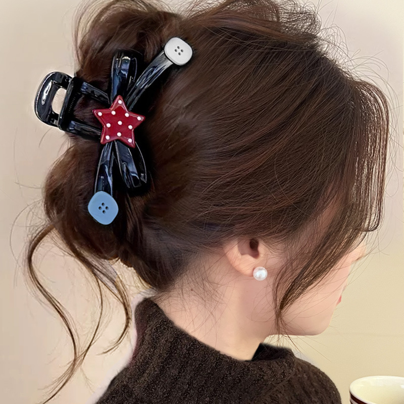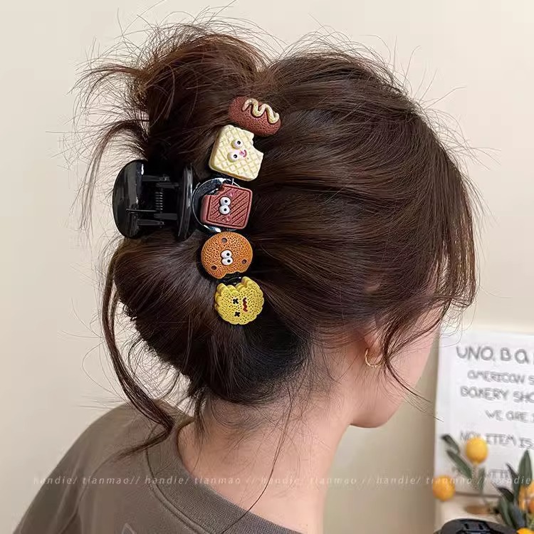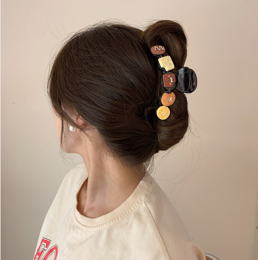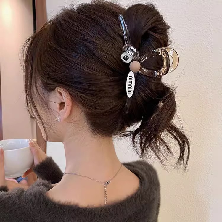 머리카락이 많은 사람들을 위한 기질이 있는 특대형 머리핀, 뒷머리에 착용할 수 있는 새로운 심플한 머리핀, 상어핀, 만화 강아지 비스킷 모자
