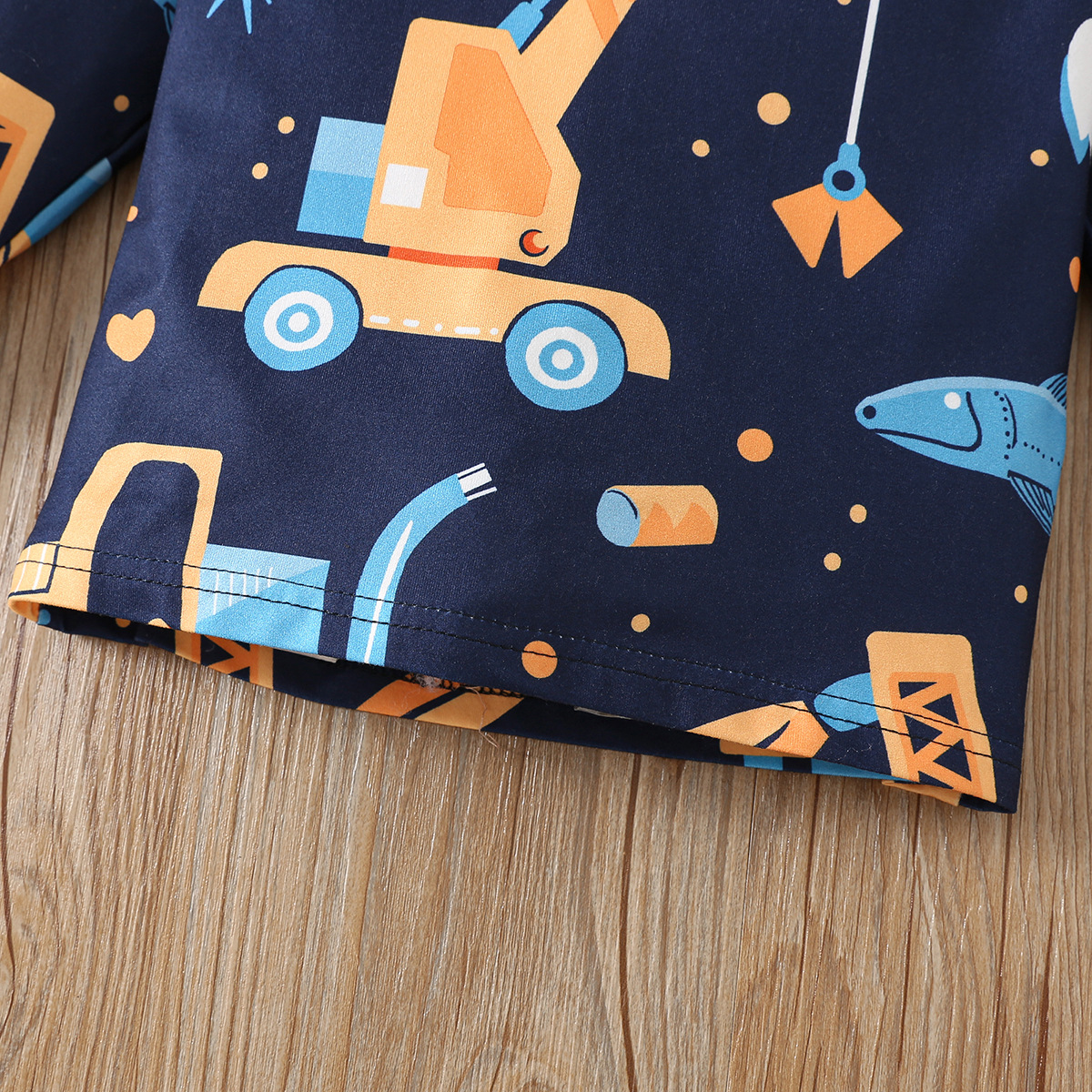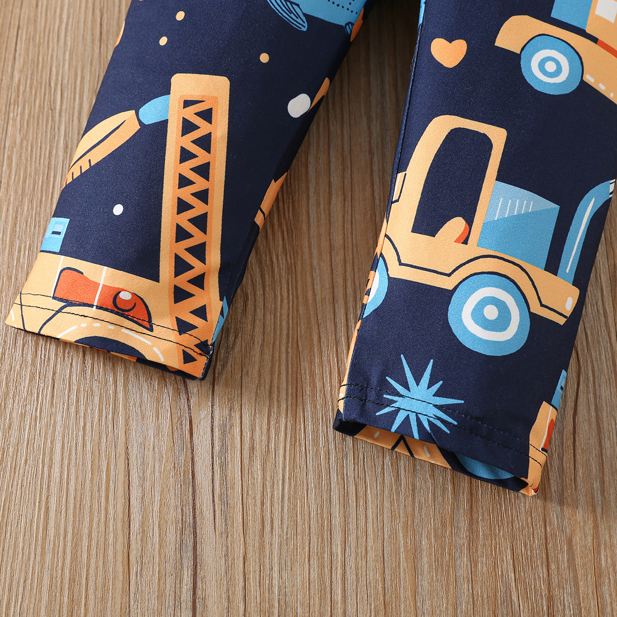 소년 홈웨어 잠옷 봄과 가을 따뜻한 양복 전체 인쇄 굴삭기 우주선 인쇄 긴팔 바지 세트