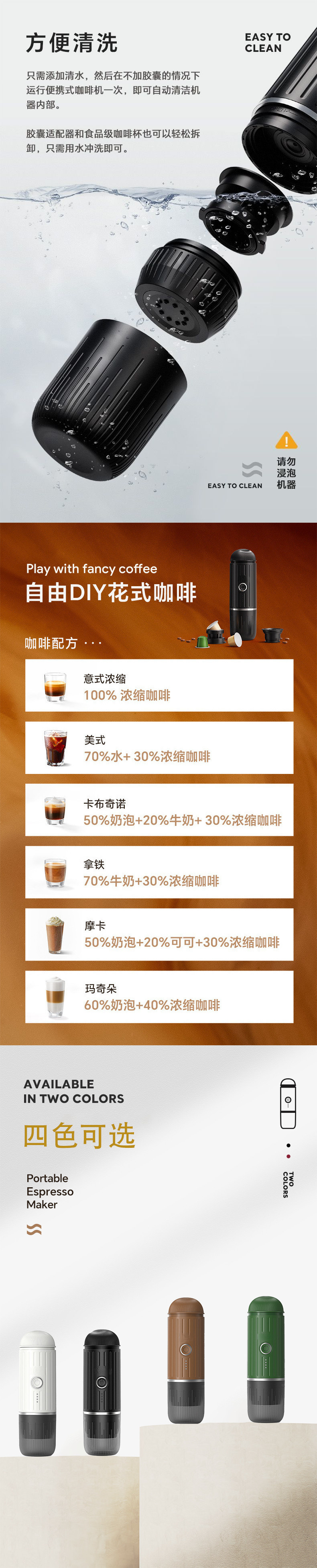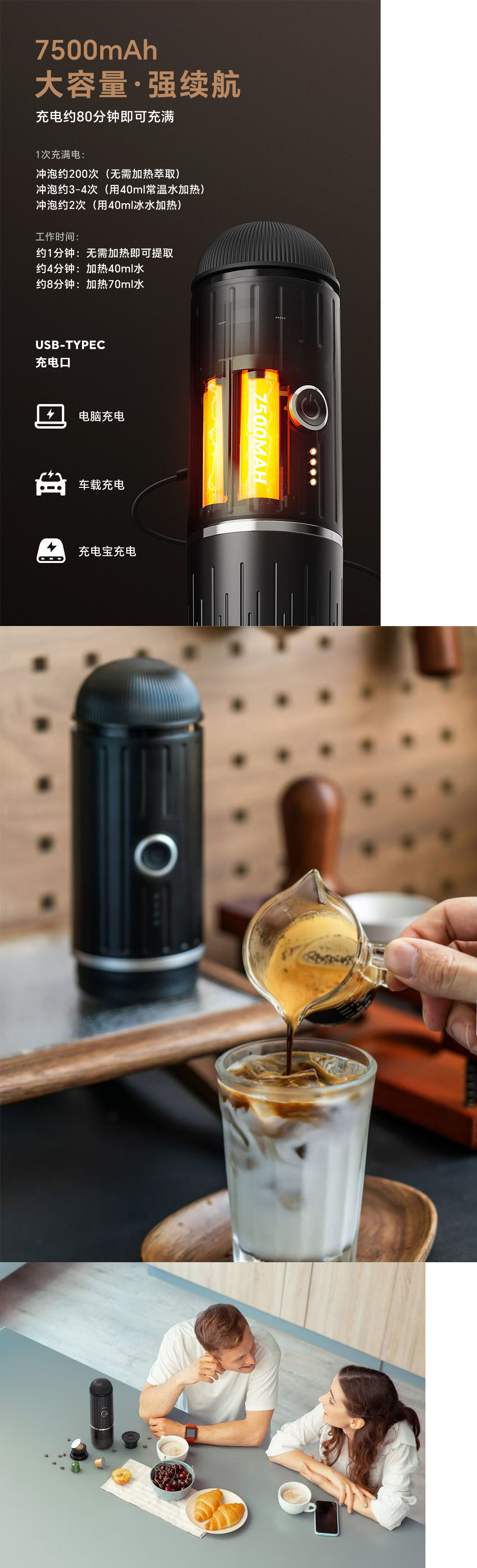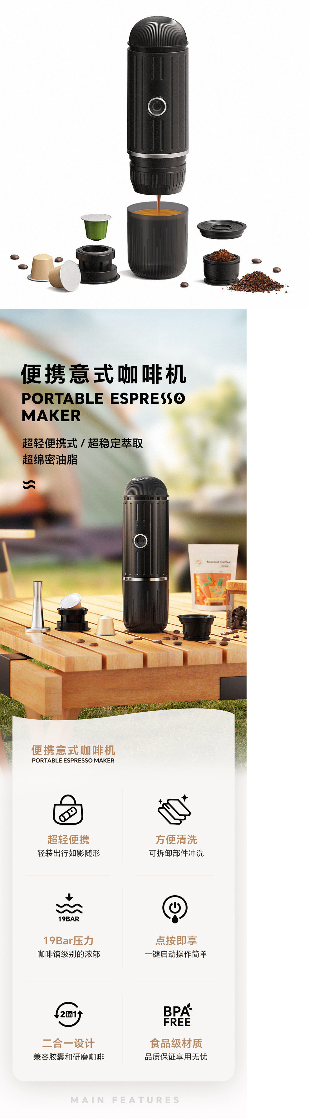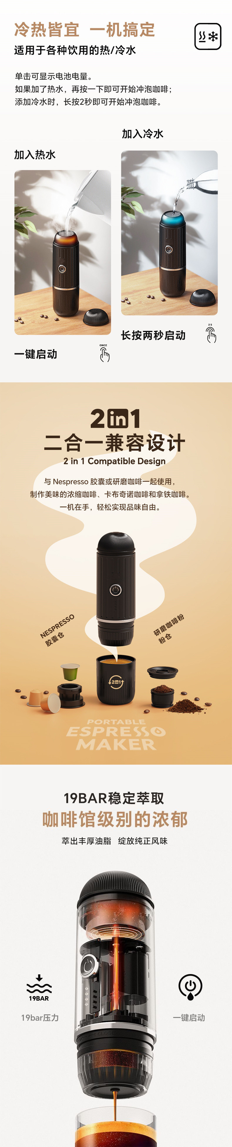 휴대용 에스프레소 머신 전기 뜨겁고 차가운 추출 커피 파우더 캡슐 이중 용도 야외 캠핑 가열 가능