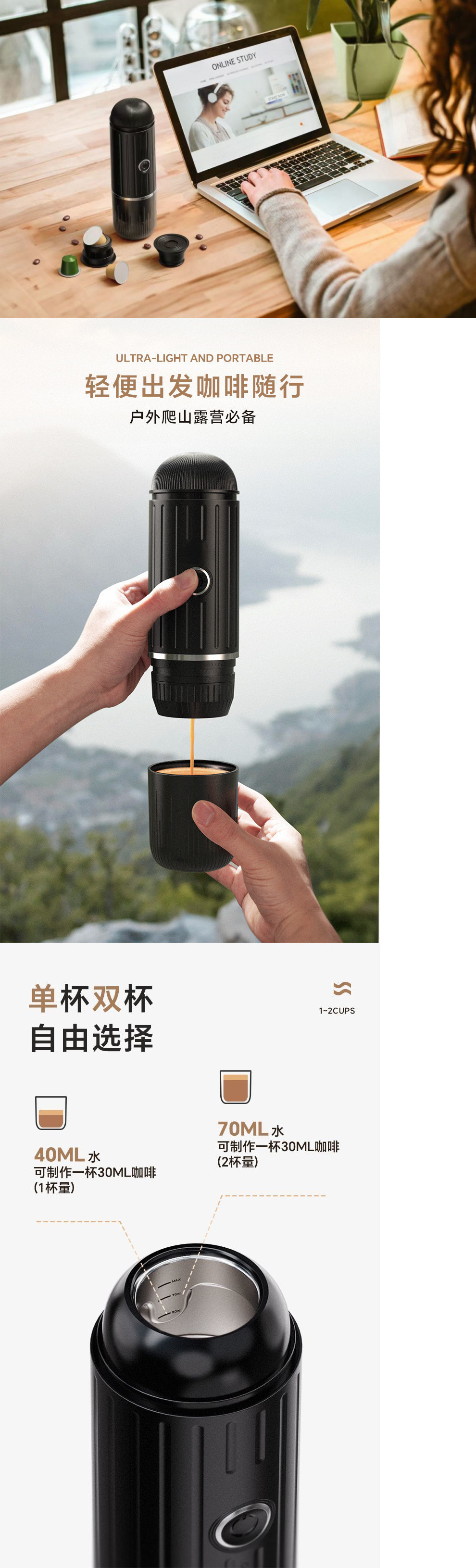 휴대용 에스프레소 머신 전기 뜨겁고 차가운 추출 커피 파우더 캡슐 이중 용도 야외 캠핑 가열 가능스토어 가기