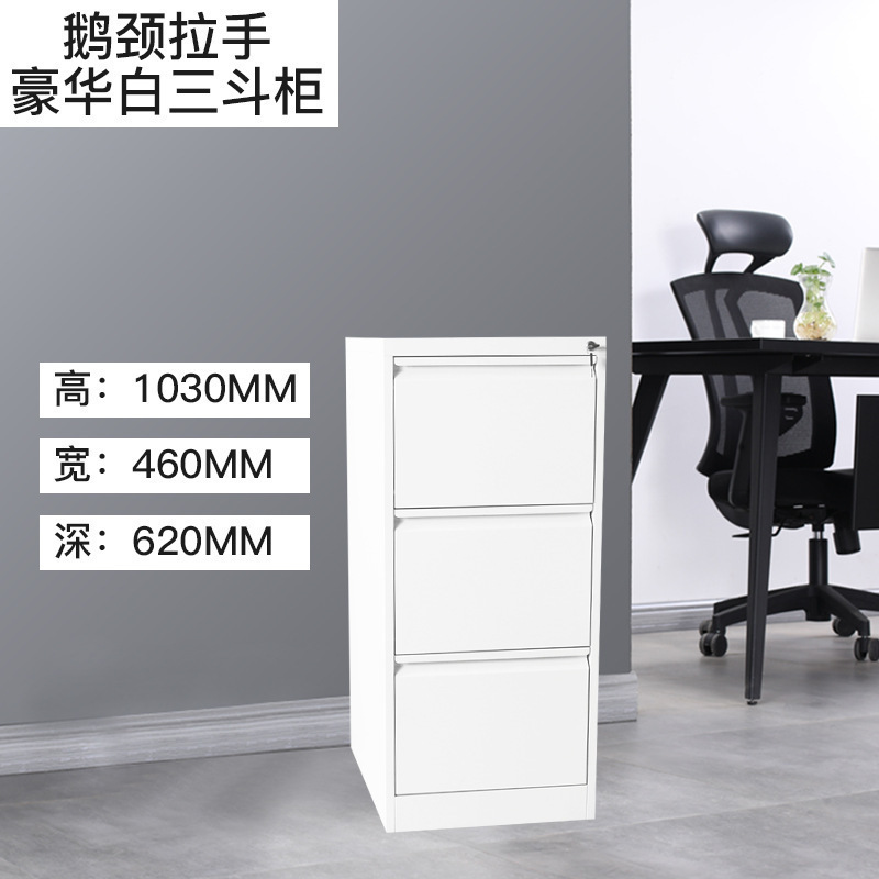 • 순백색 3단 서랍장(구즈넥 손잡이)