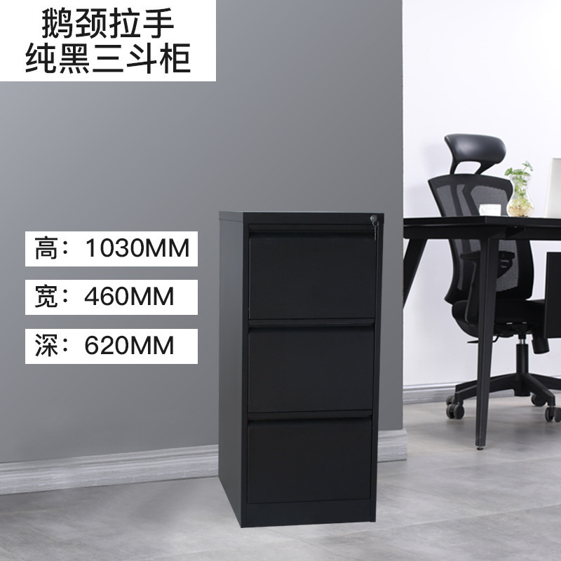 • 퓨어 블랙 3단 서랍장(구즈넥 손잡이)