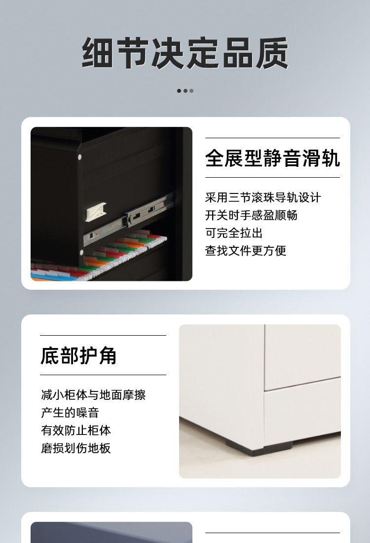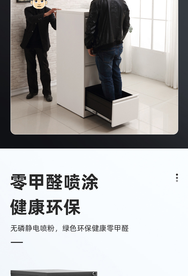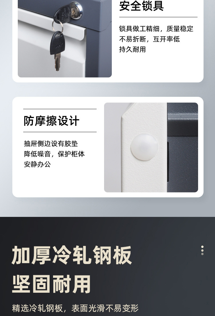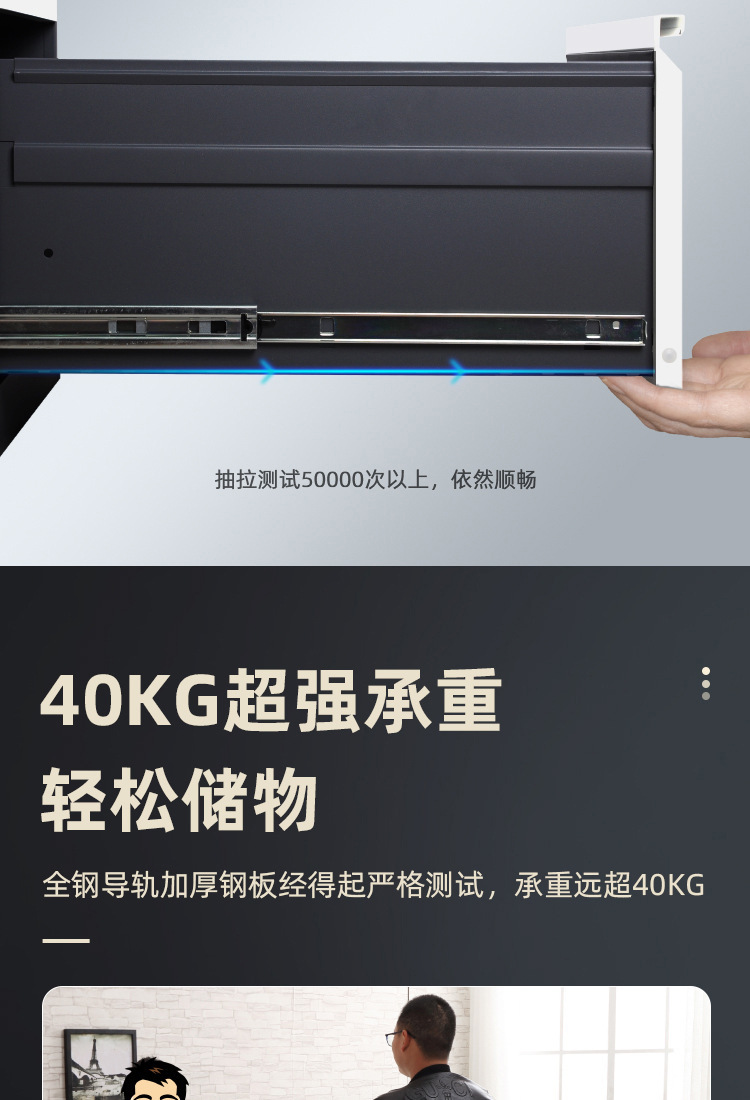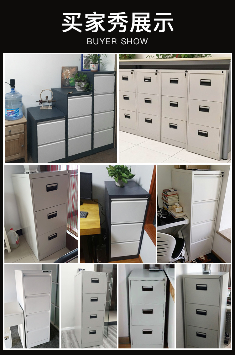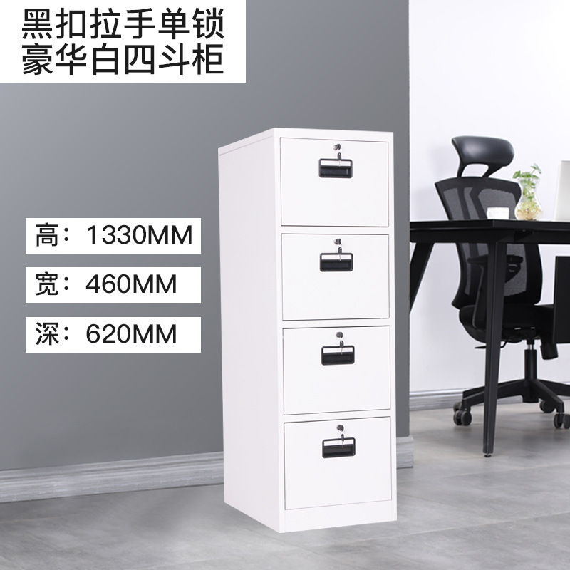 • 순백색 4단 서랍장(검은색 손잡이) 기계식 잠금장치