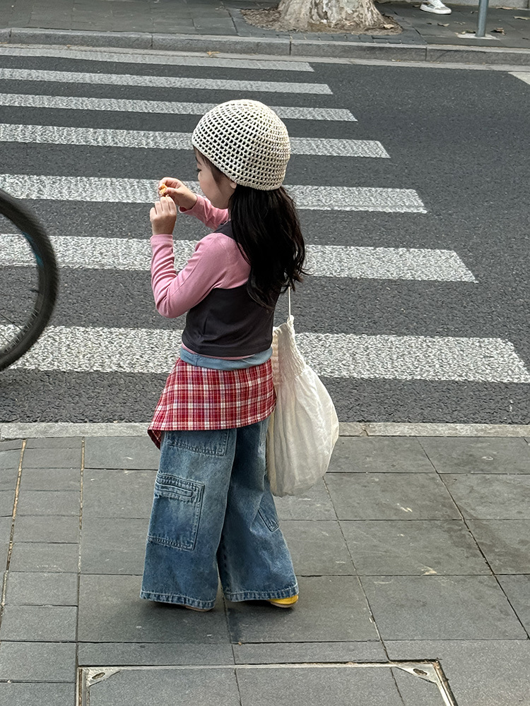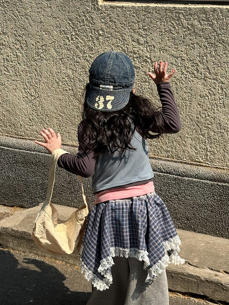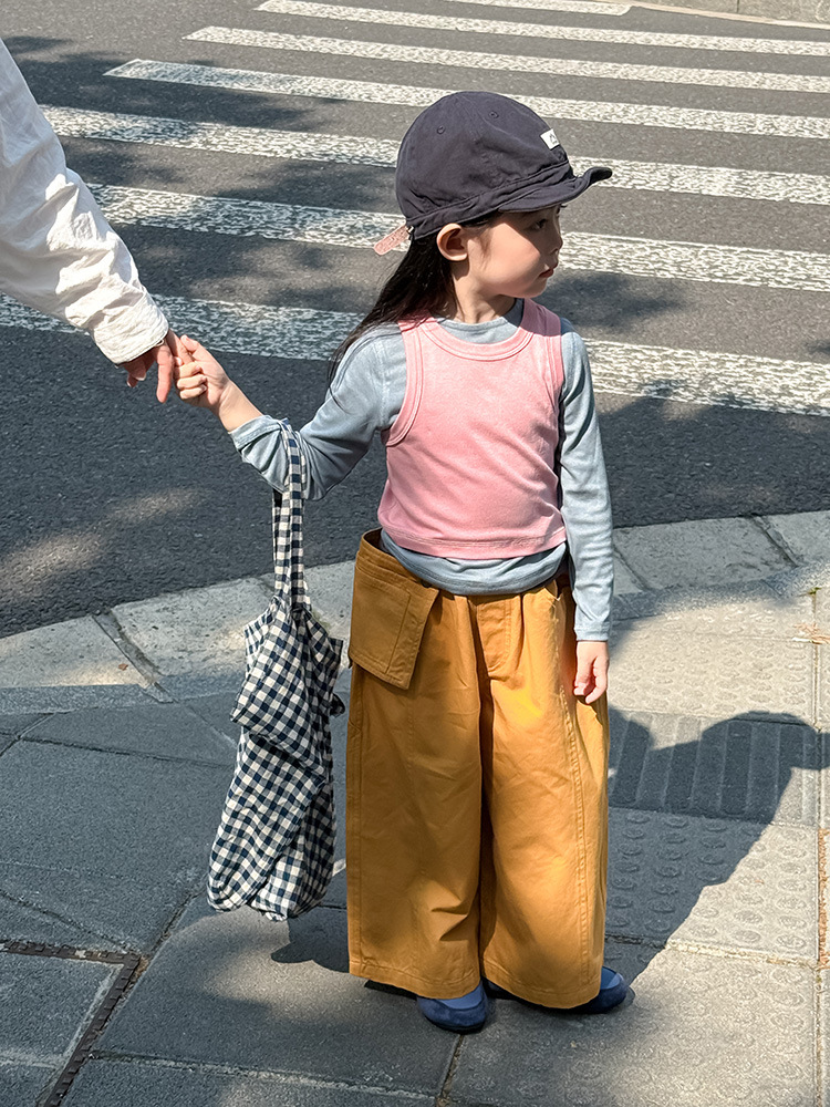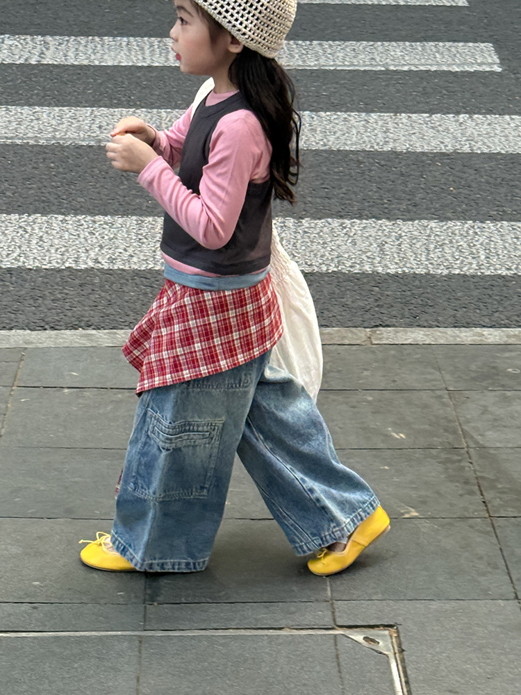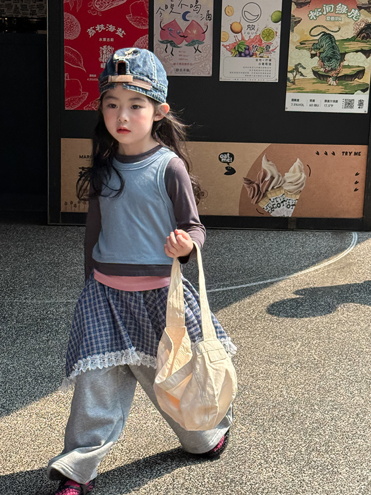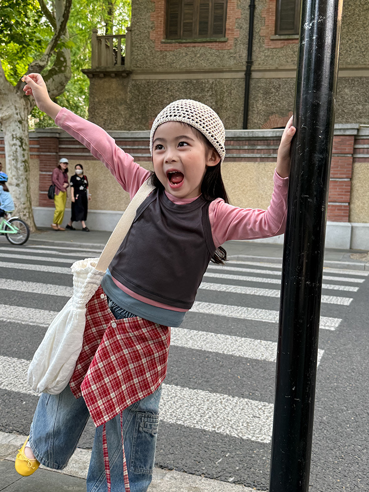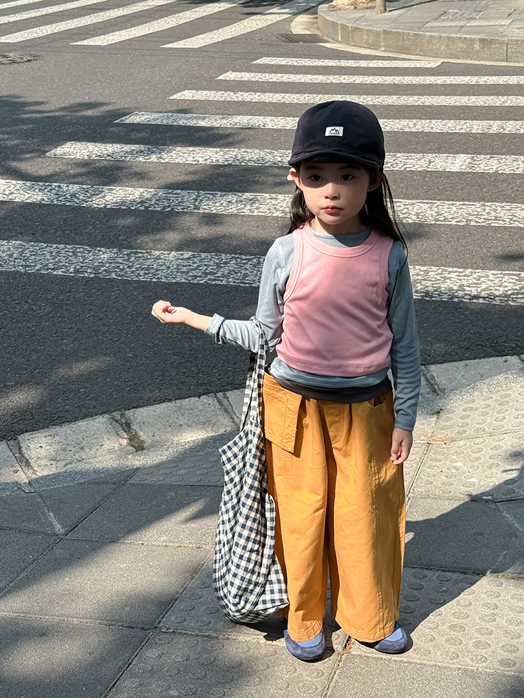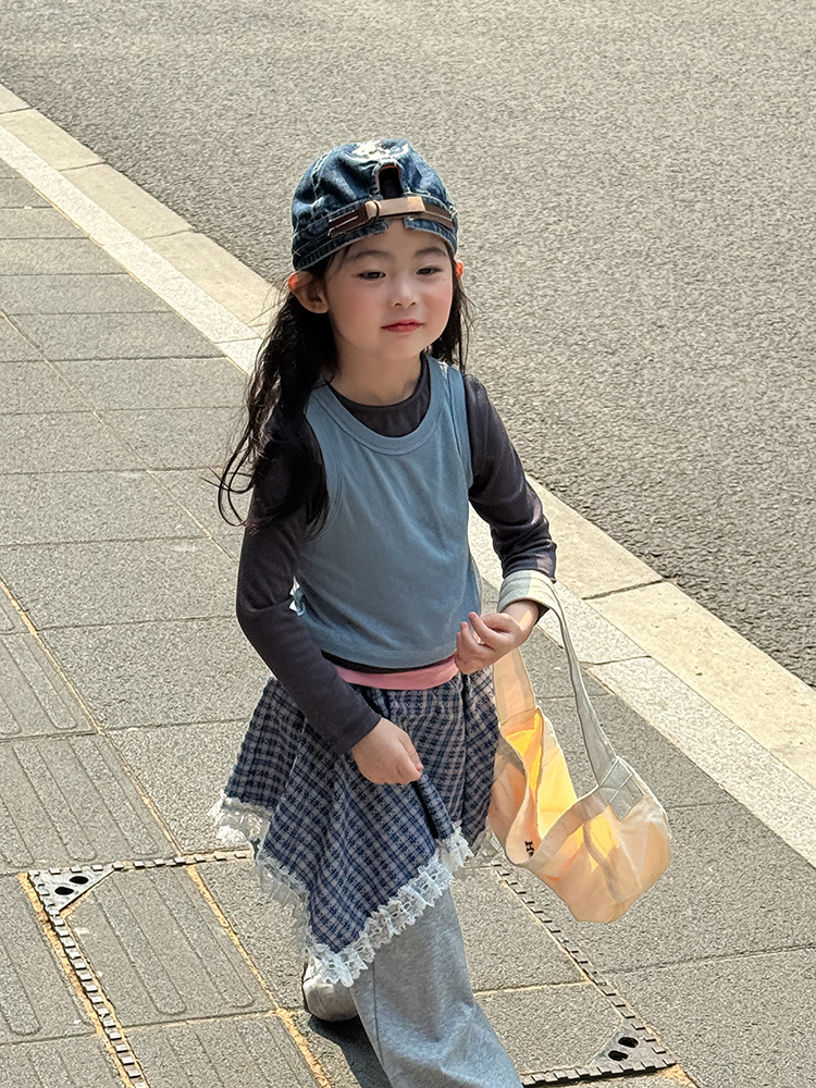여아 가짜 3피스 대비색 바텀 셔츠 마스크 느낌 티셔츠 아동 레이어드 바텀 탑 가을 겨울 신작 한국어 버전스토어 가기