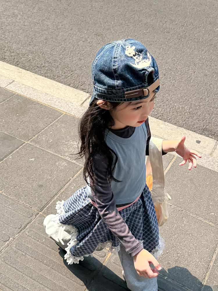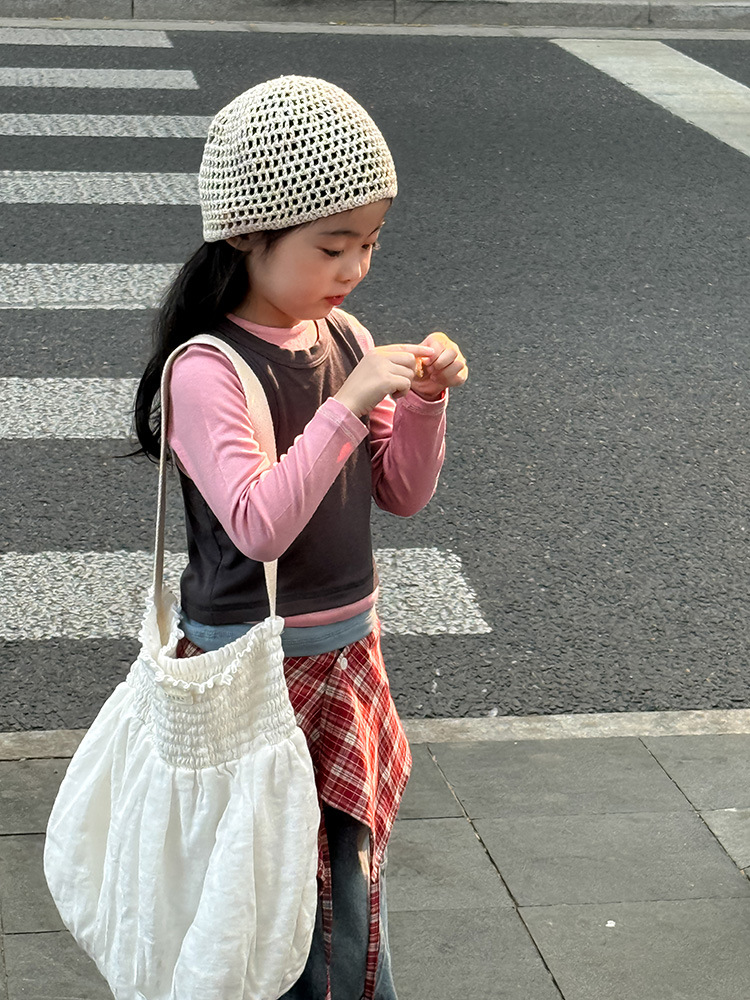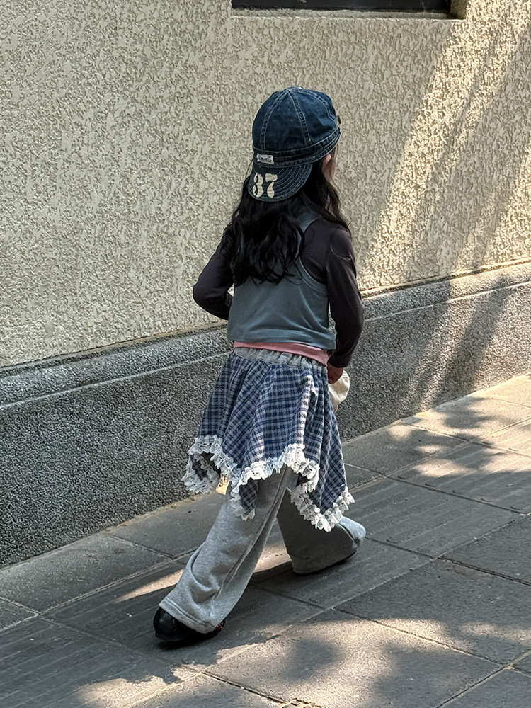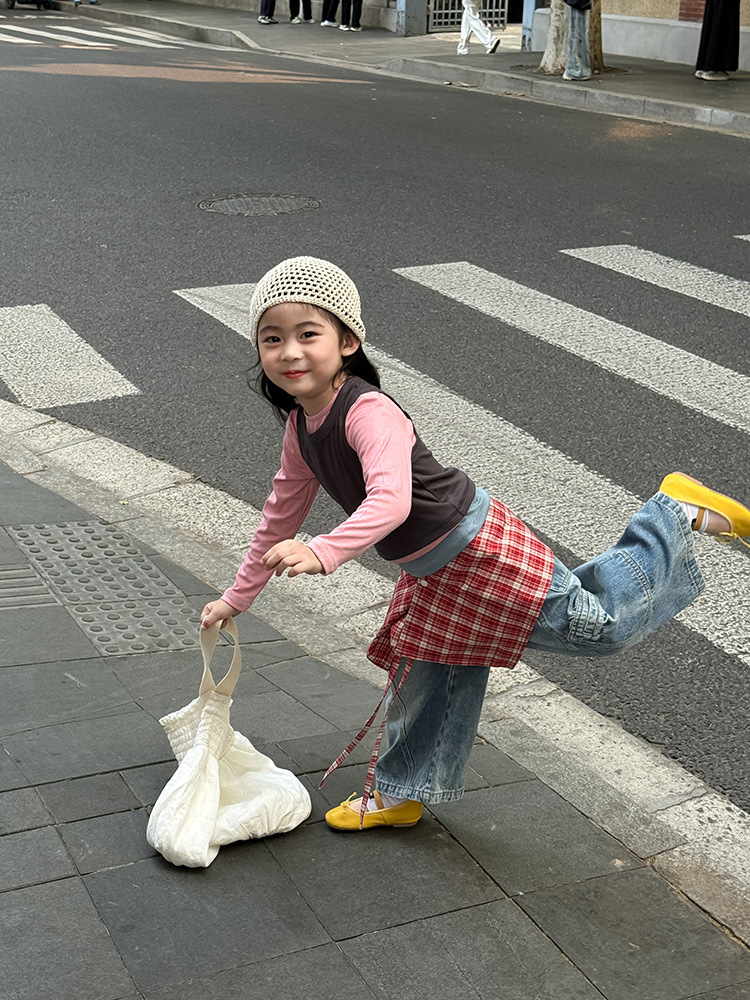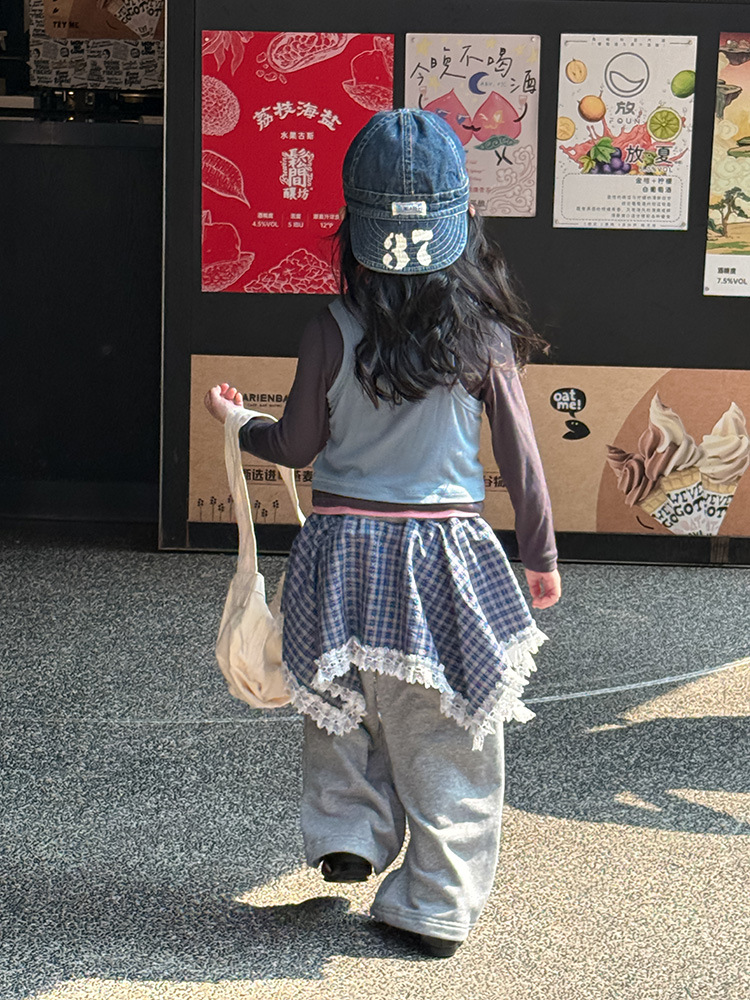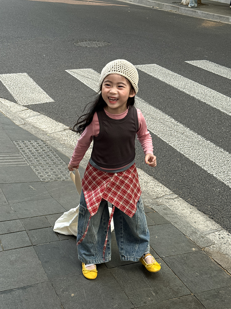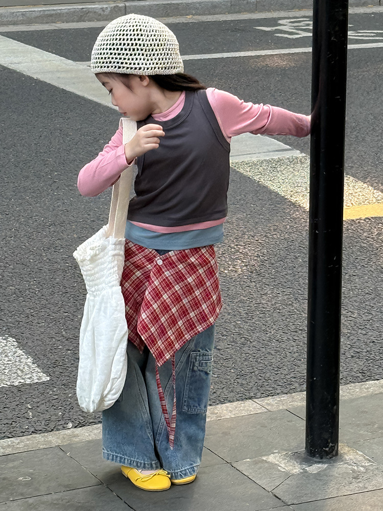 여아 가짜 3피스 대비색 바텀 셔츠 마스크 느낌 티셔츠 아동 레이어드 바텀 탑 가을 겨울 신작 한국어 버전스토어 가기
