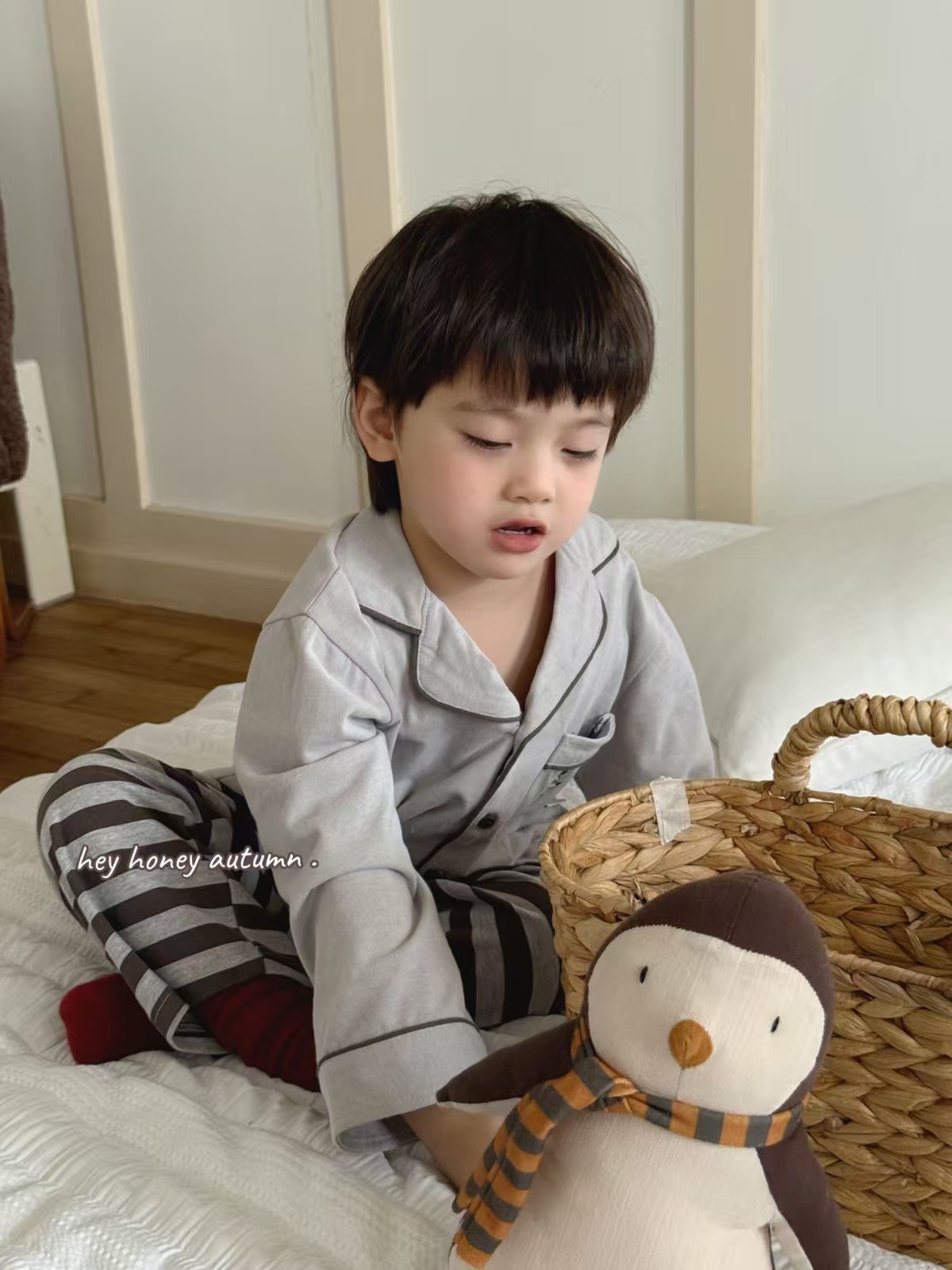 헤이 허니25 가을 신상 남아 홈웨어 남아용 스트라이프 카라 순면 A급 잠옷스토어 가기