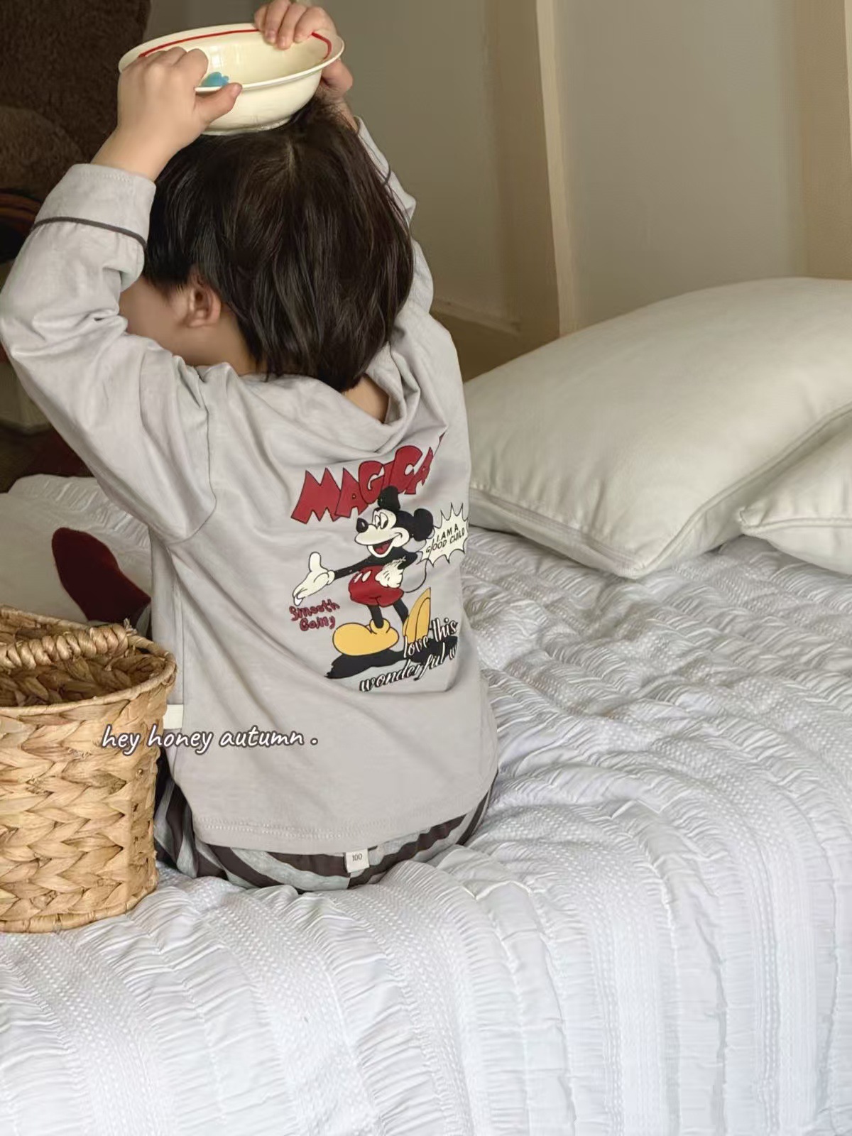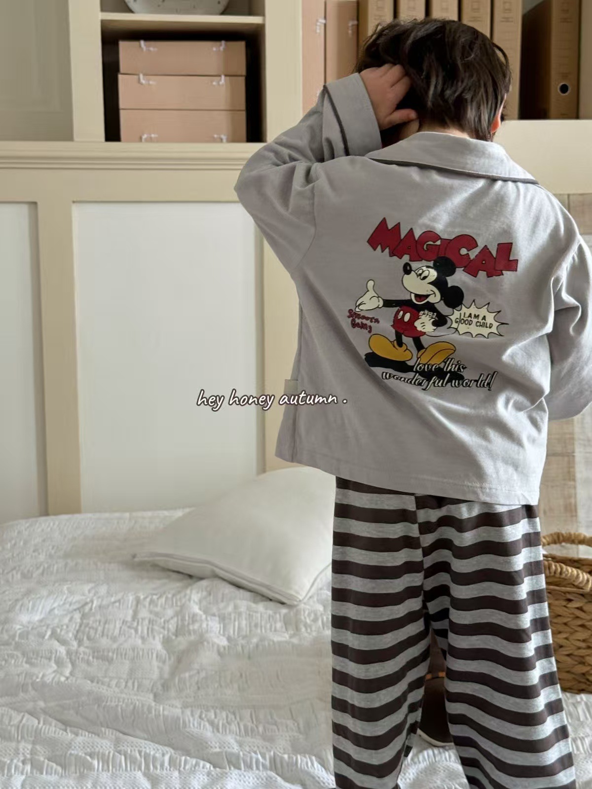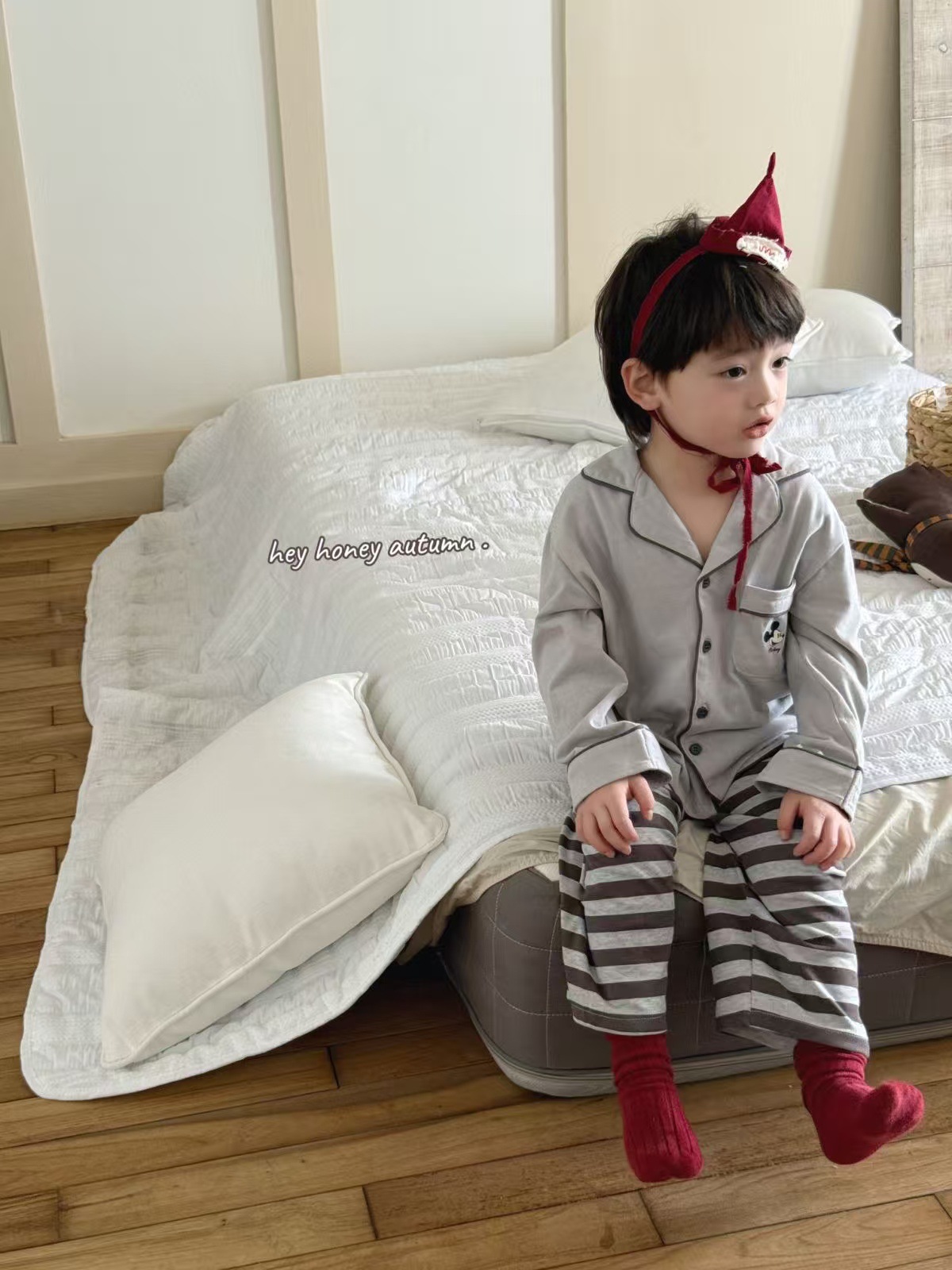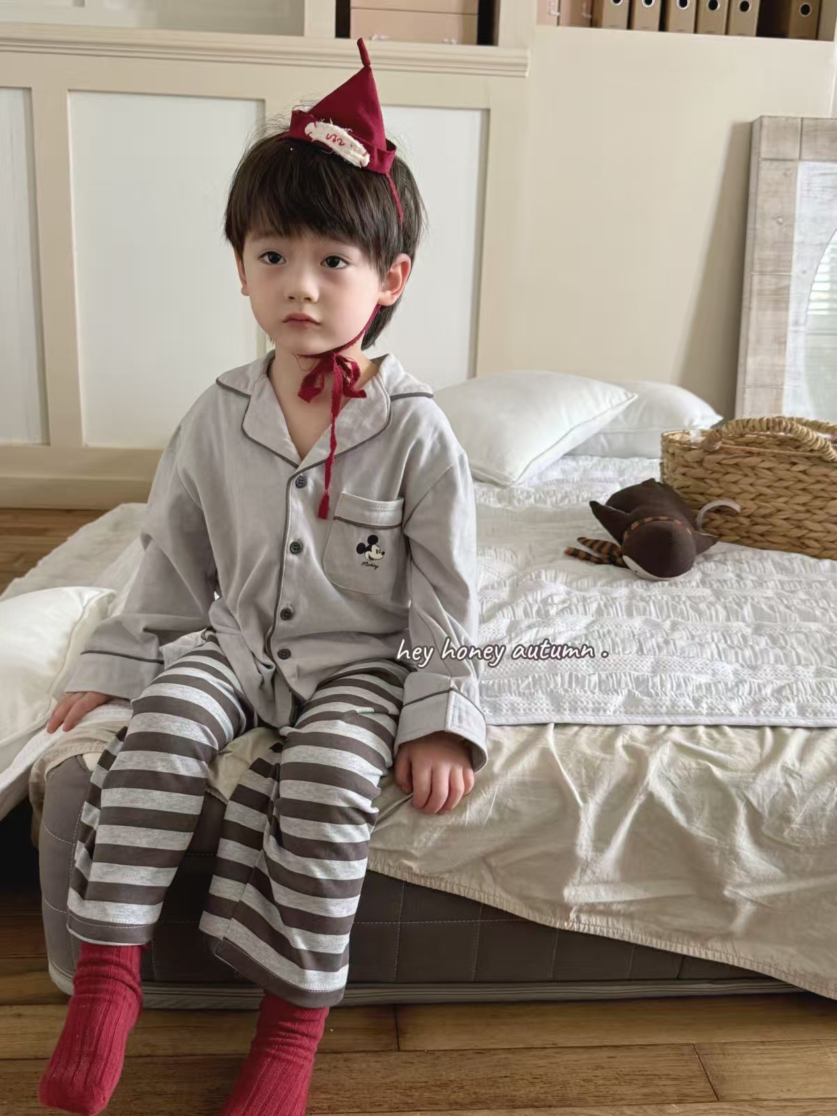 헤이 허니25 가을 신상 남아 홈웨어 남아용 스트라이프 카라 순면 A급 잠옷