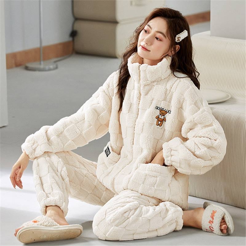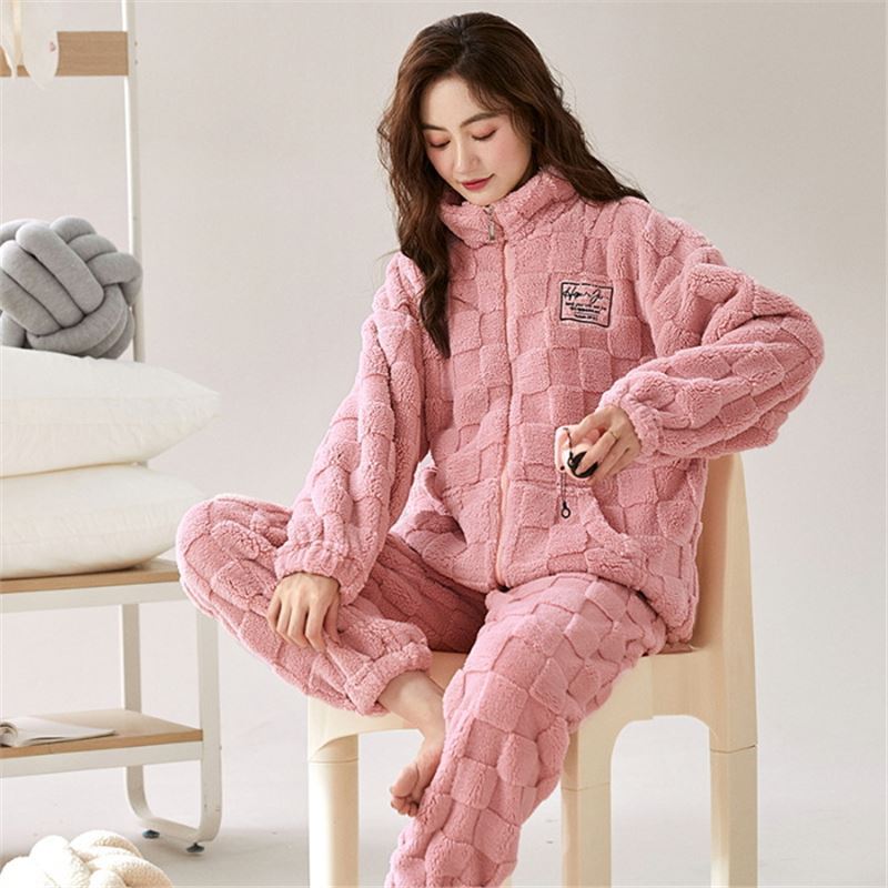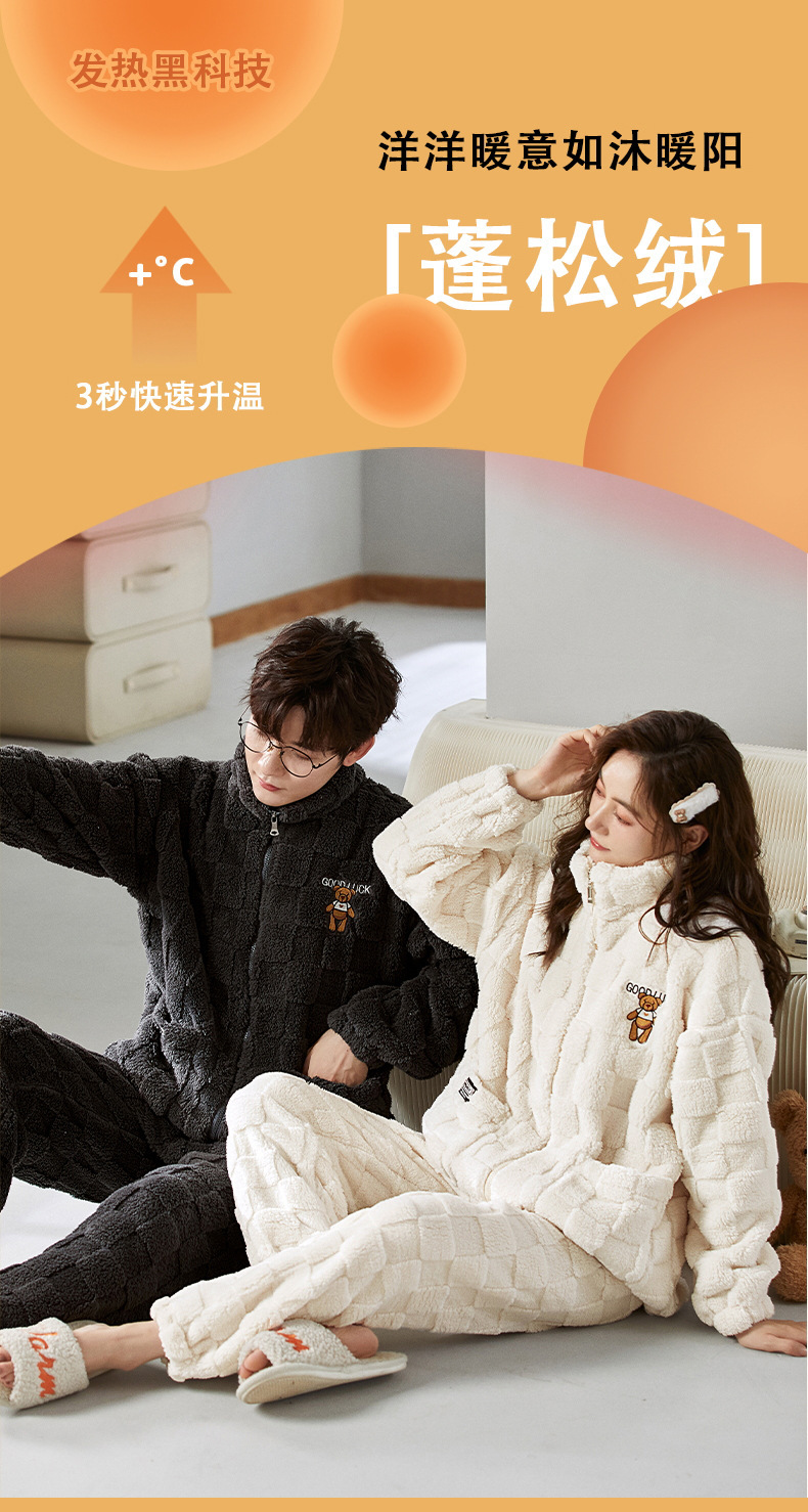 가을과 겨울 여성용 자카드 플러시 커플 잠옷 긴팔 두꺼운 따뜻한 산호 벨벳 남성용 홈웨어 세트스토어 가기