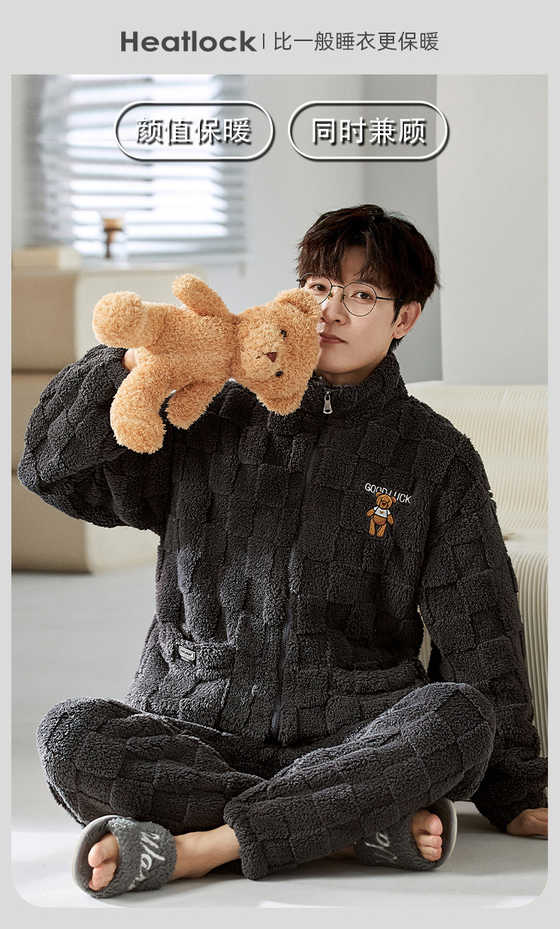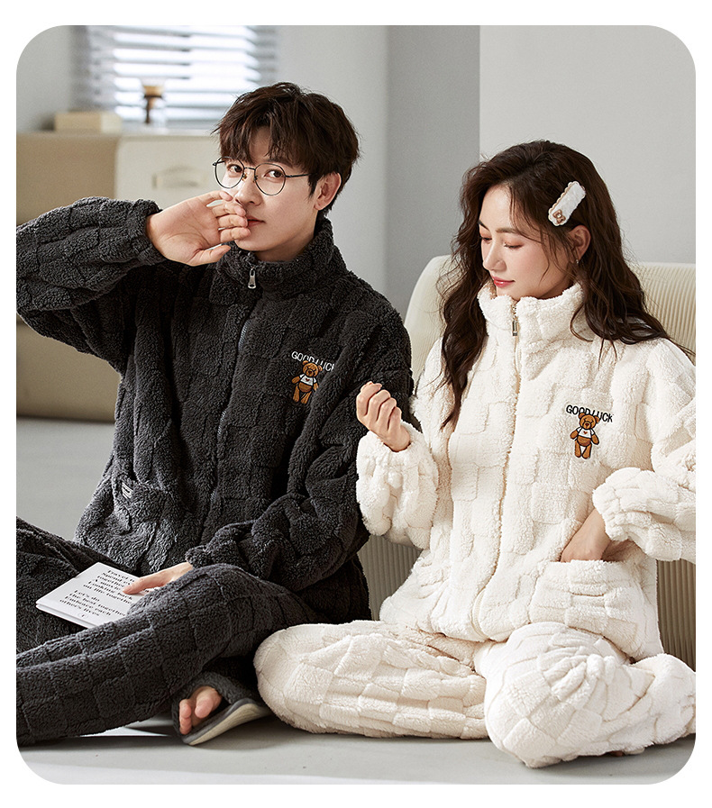 가을과 겨울 여성용 자카드 플러시 커플 잠옷 긴팔 두꺼운 따뜻한 산호 벨벳 남성용 홈웨어 세트