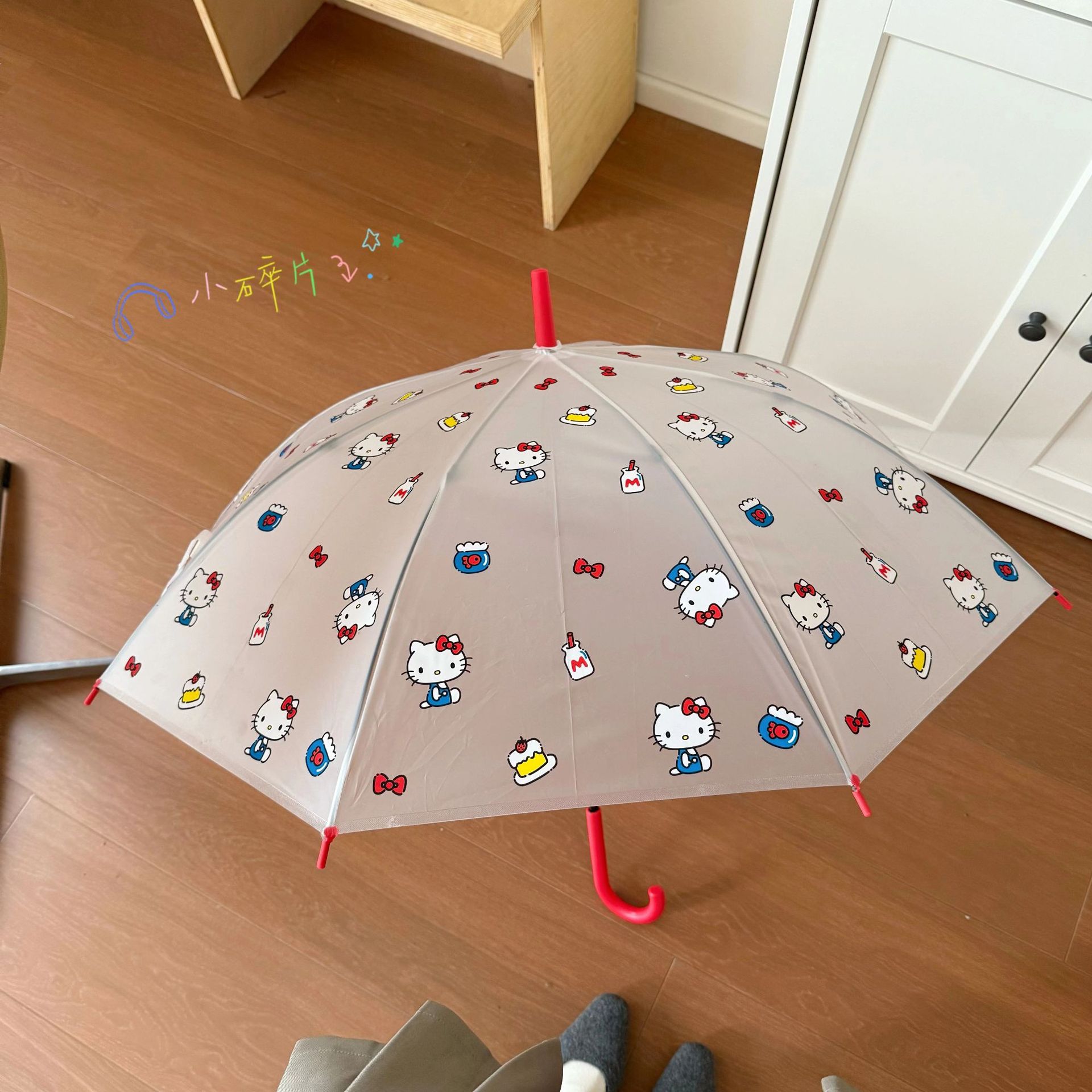 hellokitty 정품 투명 우산 완전 자동 헬로 키티 귀여운 소녀 어린이 초등학생 긴 손잡이 우산스토어 가기