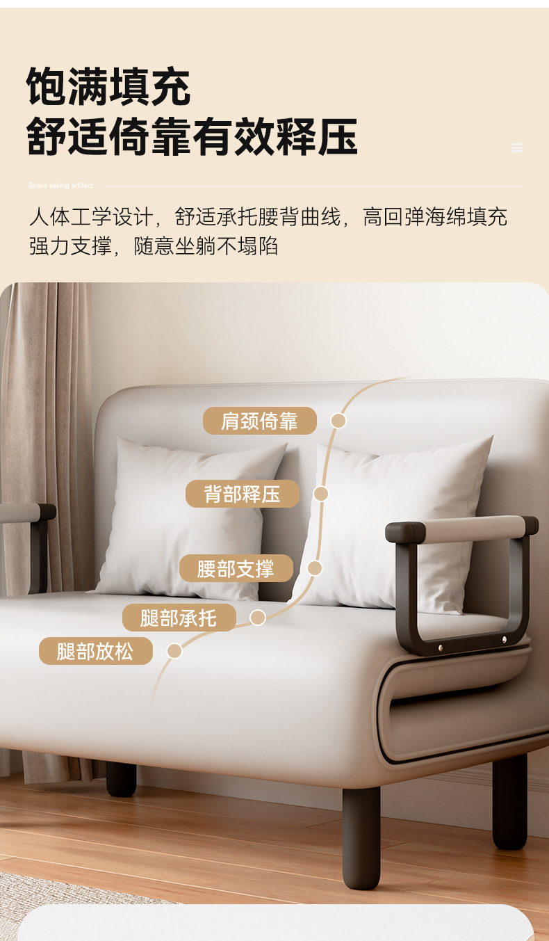 소파 베드 접이식 이중 목적 발코니 거실 작은 아파트 다기능 인터넷 연예인 모델 더블 푸시 슬라이드 개폐식 가변 침대스토어 가기