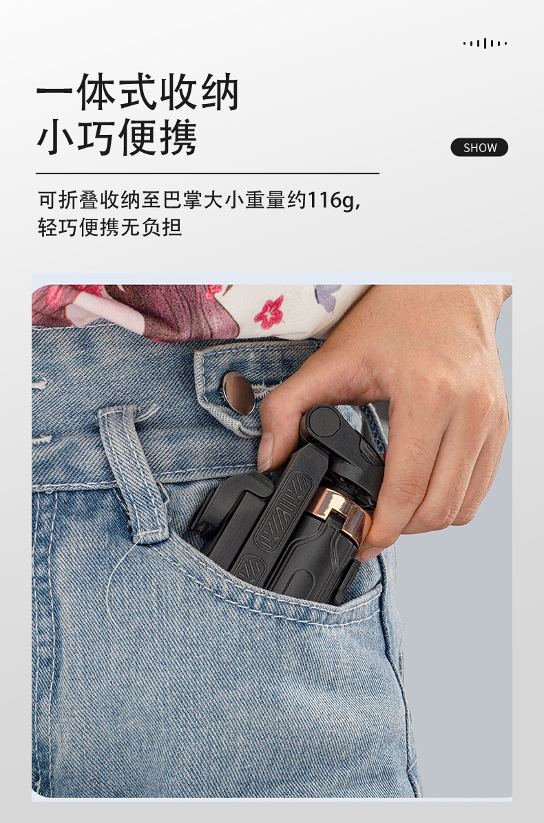 국경 간 JC25 미니 셀카봉 휴대용 여행 블로그 휴대폰 사진 손떨림 방지 라이브 방송 플로어 스탠딩 삼각대