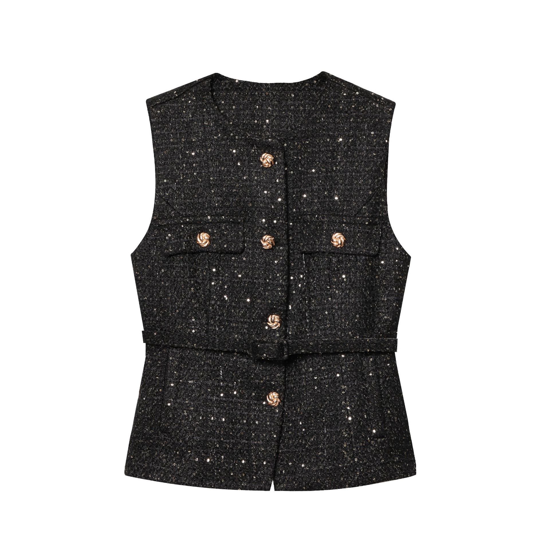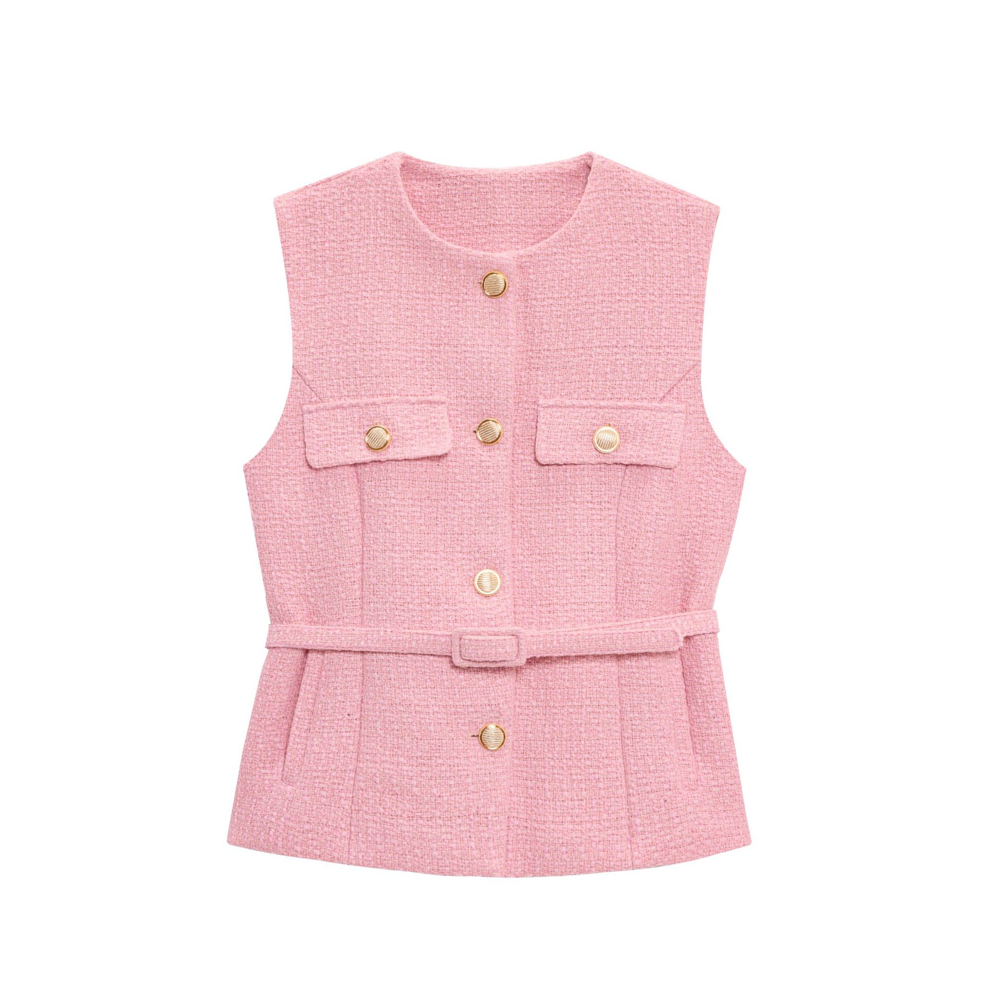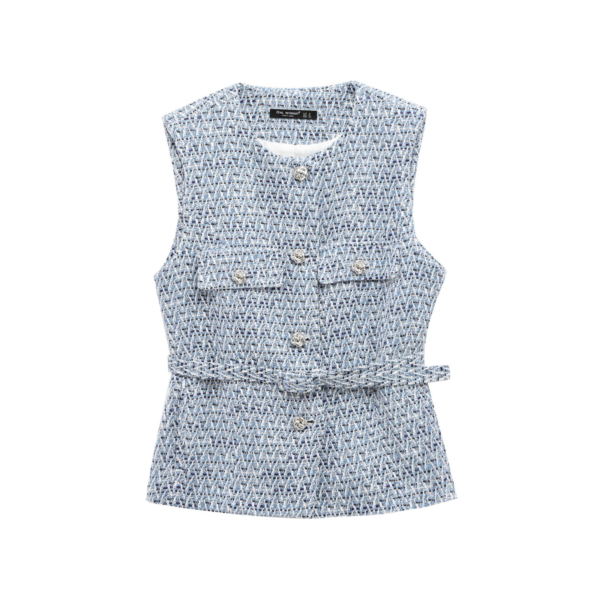 국경 간 대외 무역 여성 의류 2025 가을 유럽과 미국 스타일의 라운드 넥 민소매 벨트 질감 조끼 여성 K52580