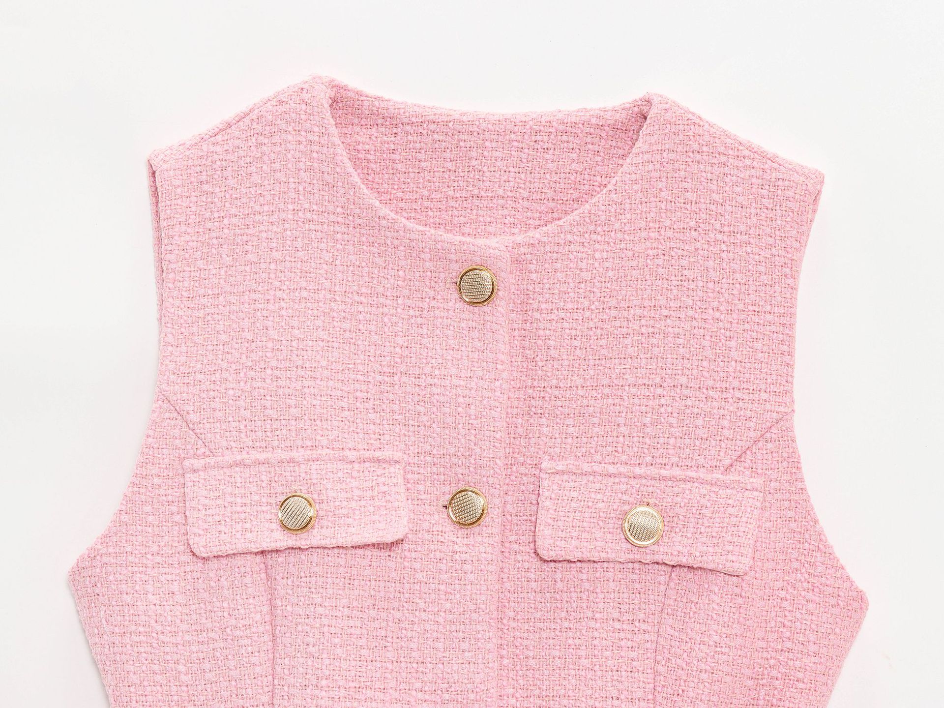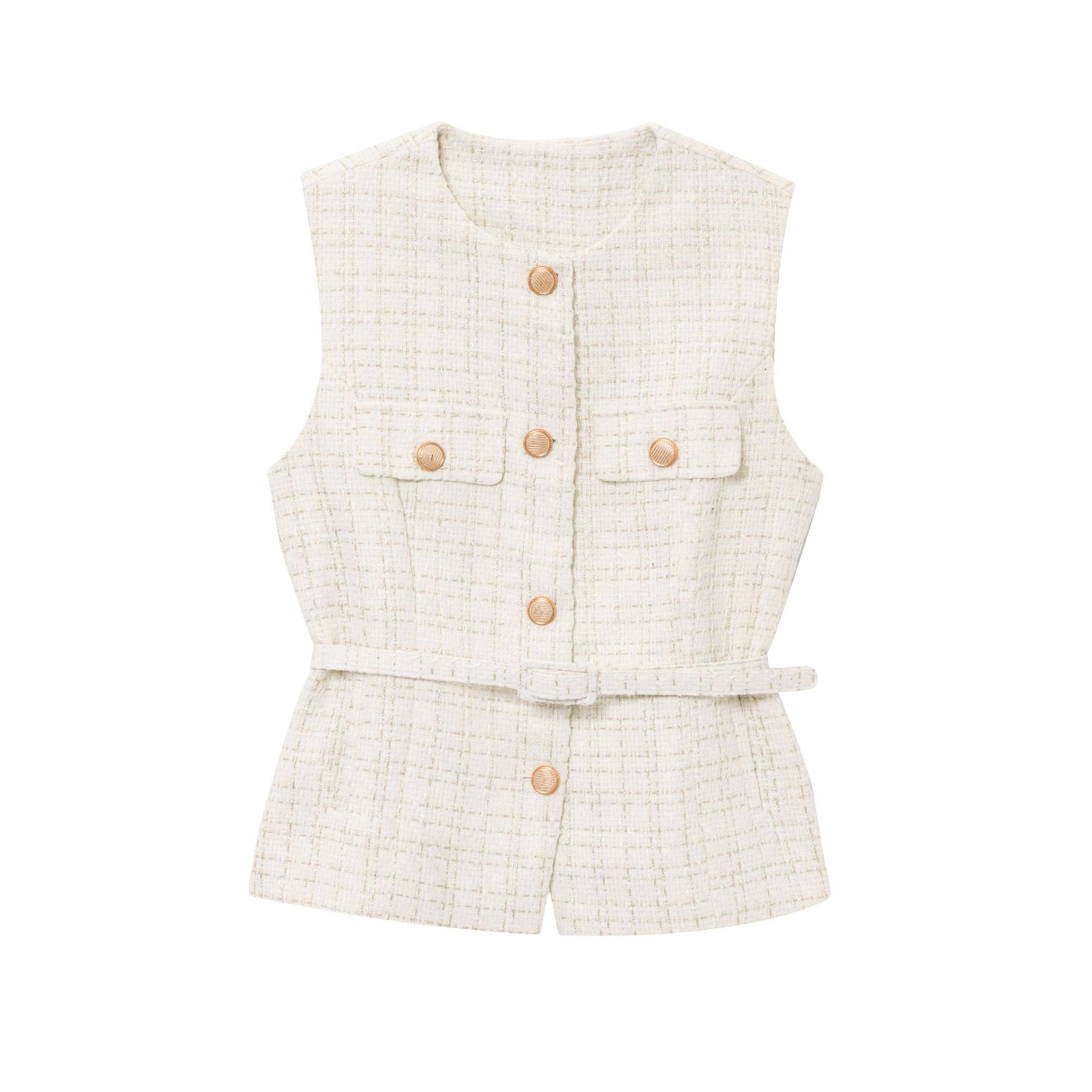 국경 간 대외 무역 여성 의류 2025 가을 유럽과 미국 스타일의 라운드 넥 민소매 벨트 질감 조끼 여성 K52580스토어 가기