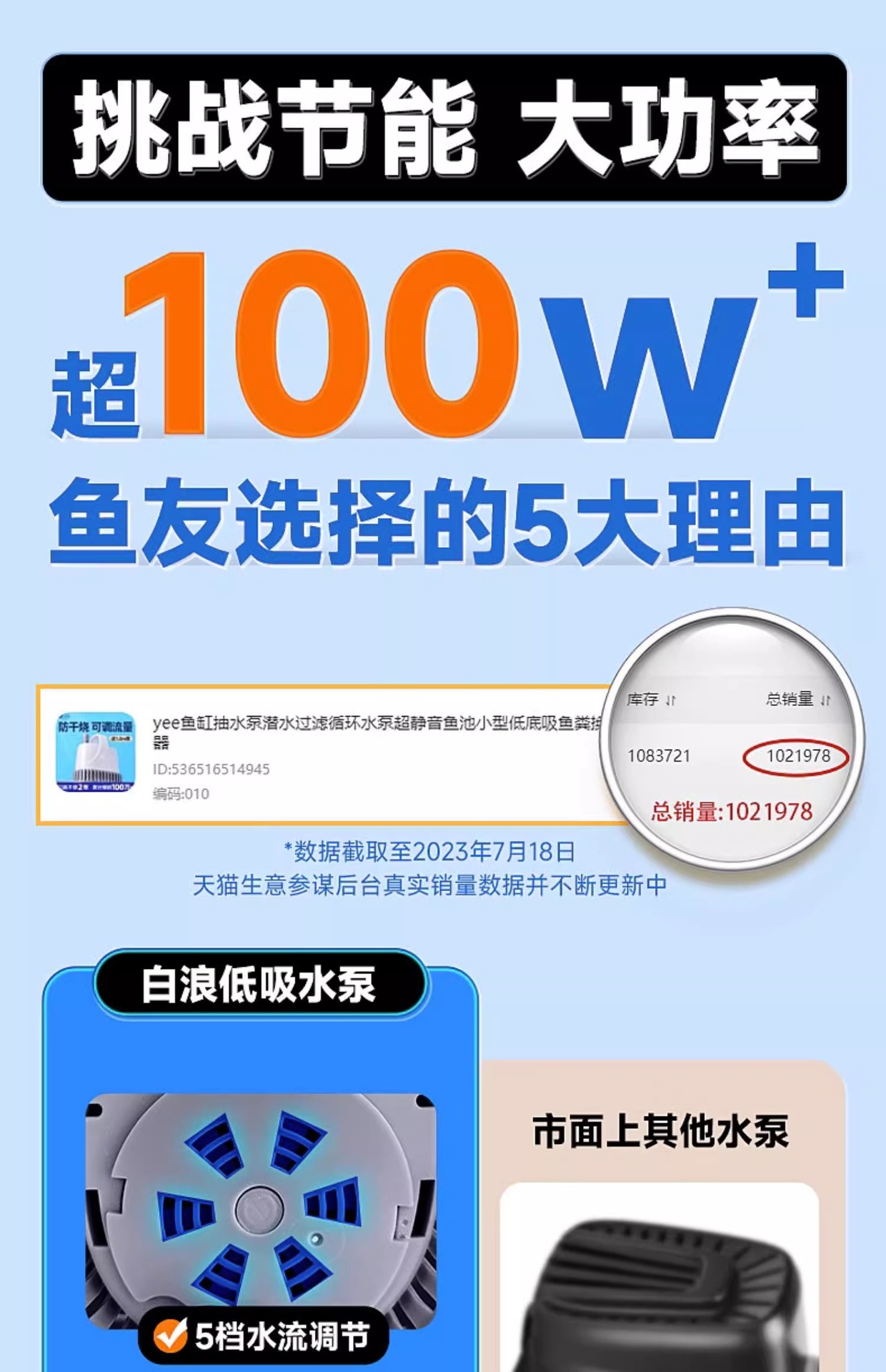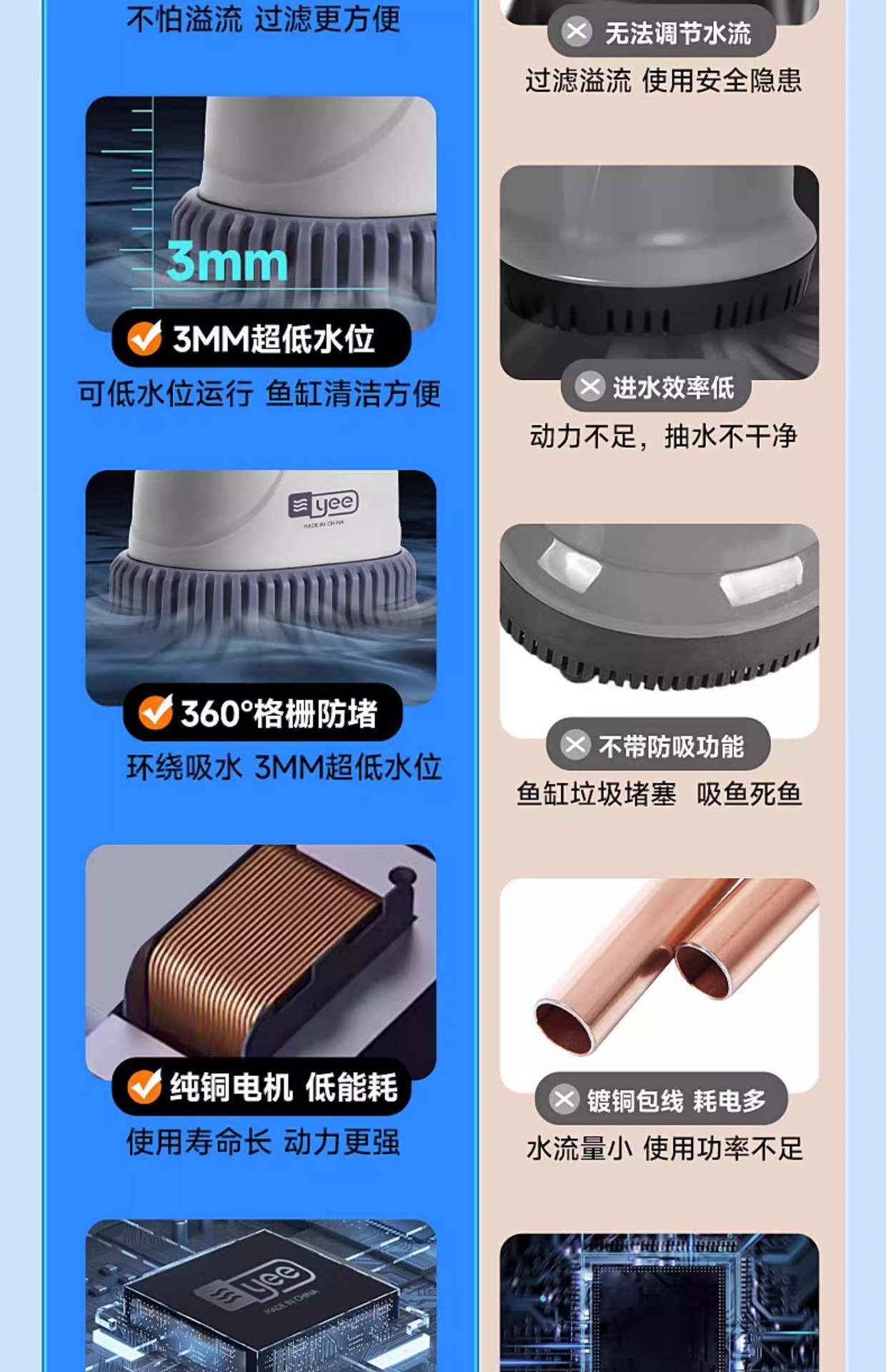 Yirui 수조 잠수정 펌프, 소형 바닥 흡입 펌프, 필터링 순환, 초저소음 물고기 분뇨 물 교환 장치 도매스토어 가기
