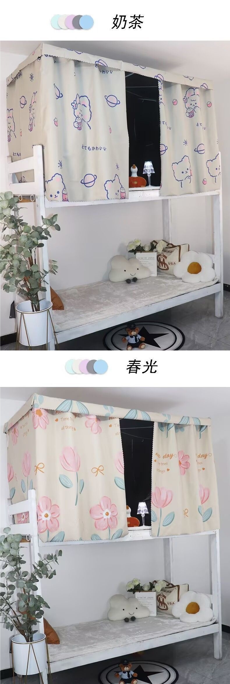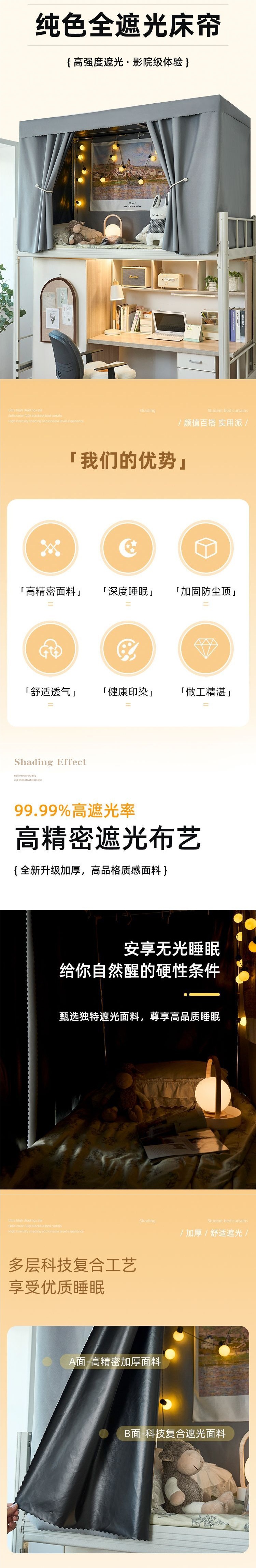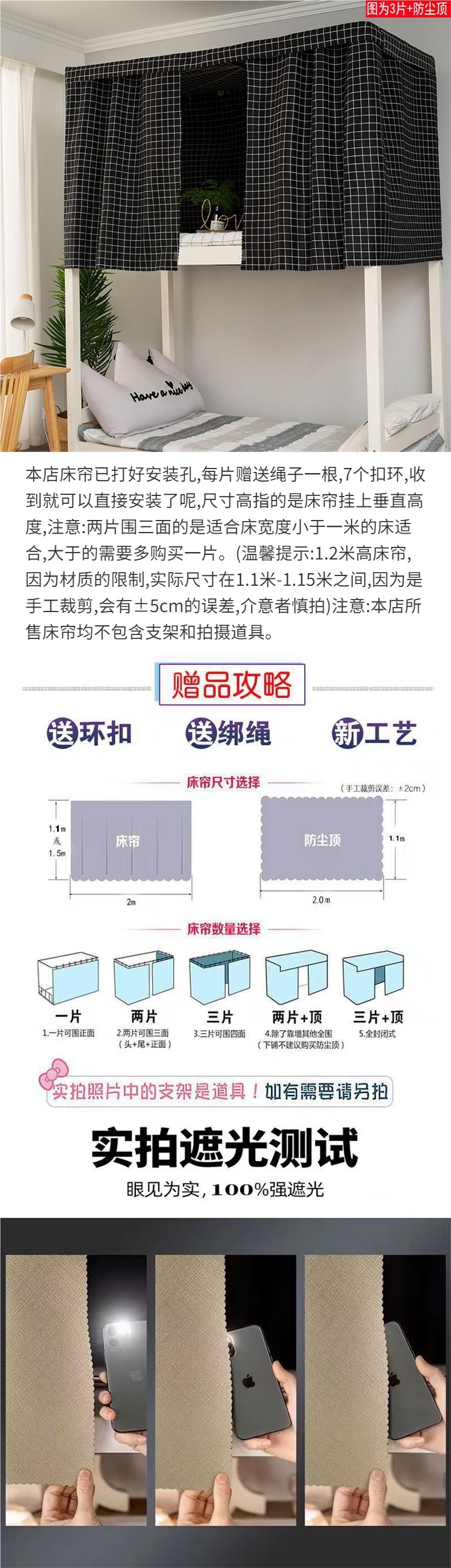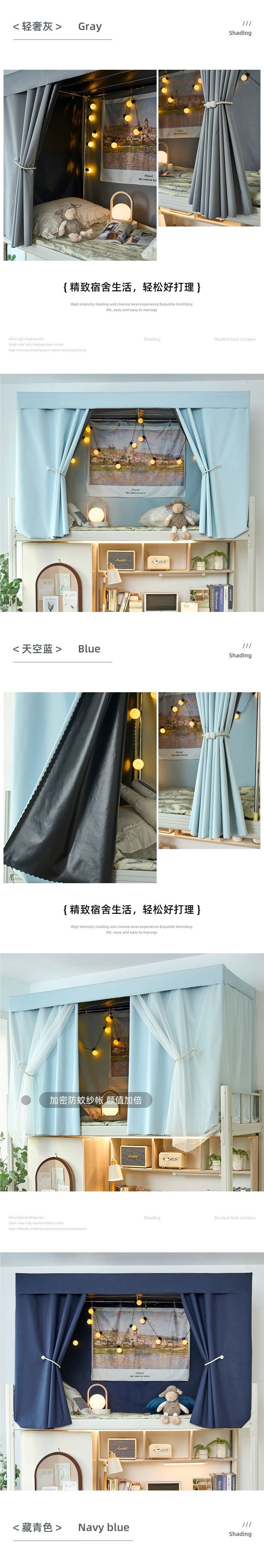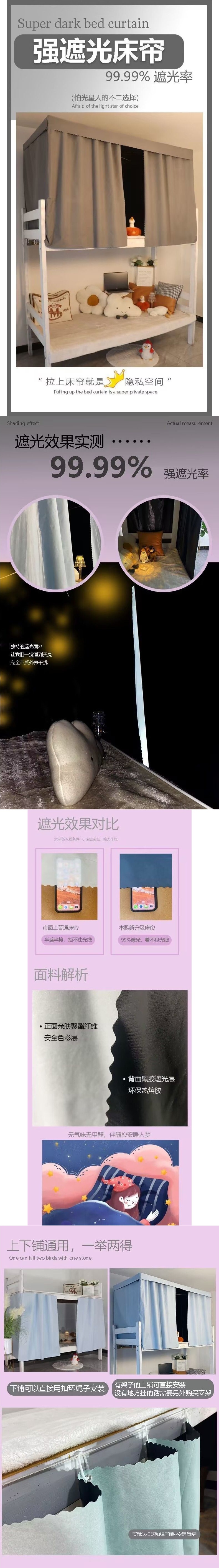 기숙사 침대 커튼 대학생 하프 블랙 아웃 커튼 상단 및 하단 침대 여성 및 남성 기숙사 인 스타일 북유럽 커튼 침대 커튼스토어 가기