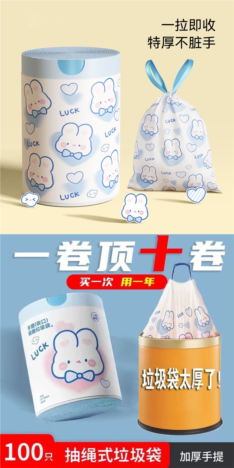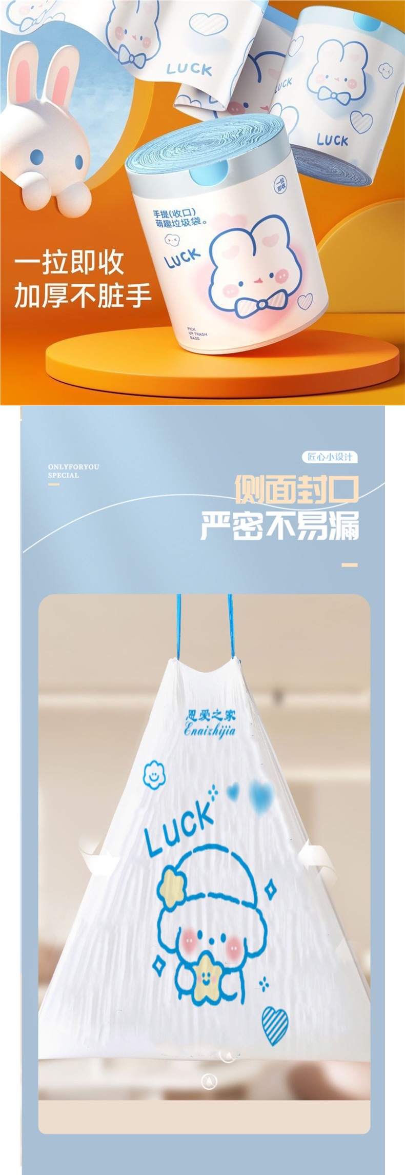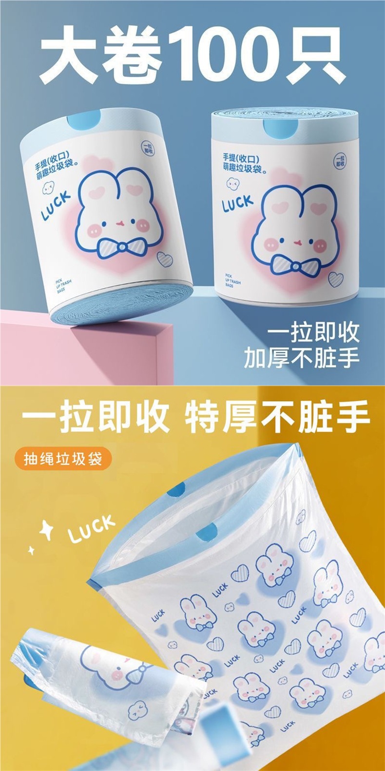 블루 하트 토끼 졸라매는 끈 귀여운 만화 고가치 홈 주방 휴대용 두꺼운 쓰레기 봉투 인쇄 실버 지스토어 가기