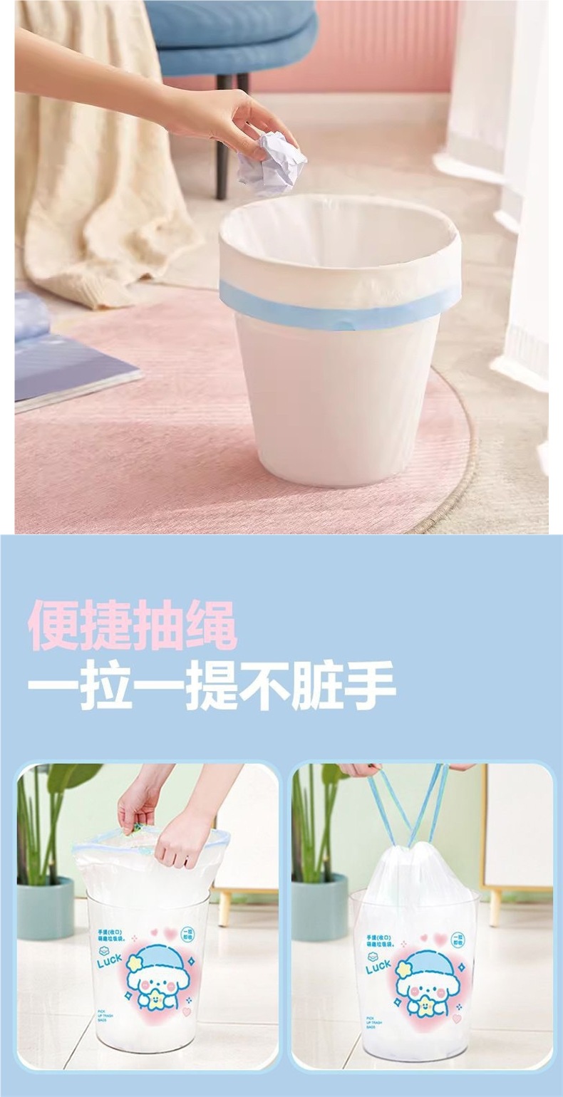 블루 하트 토끼 졸라매는 끈 귀여운 만화 고가치 홈 주방 휴대용 두꺼운 쓰레기 봉투 인쇄 실버 지