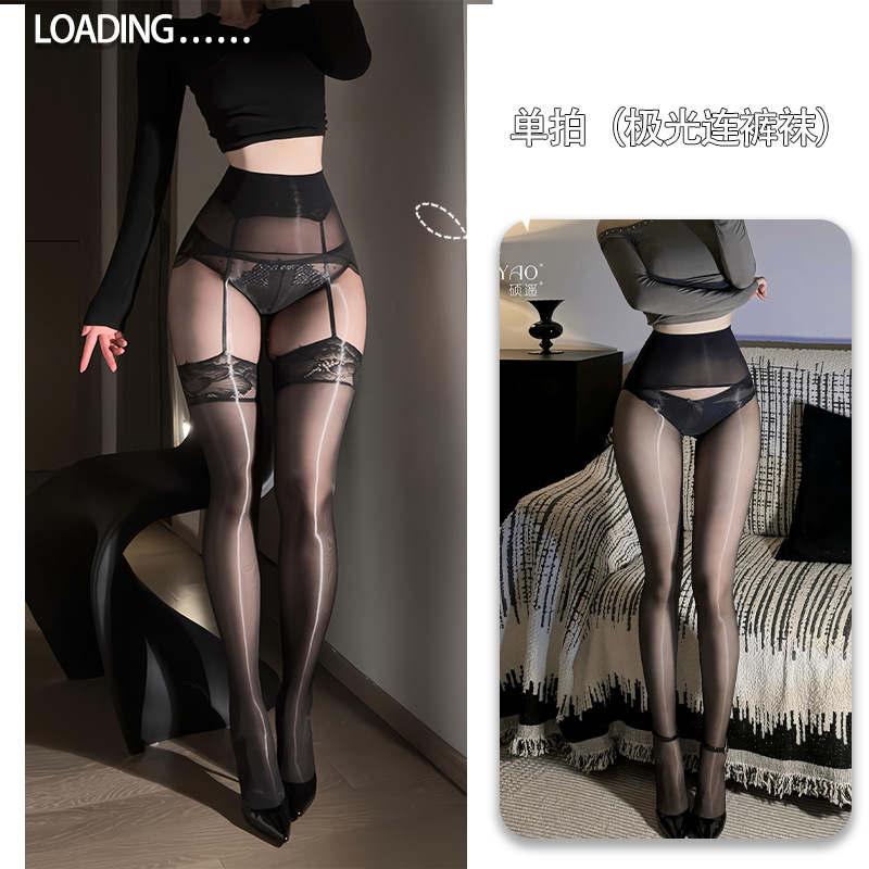 Shuoyao "환상 꽃" 오로라 오일 광택 서스펜더 스타킹 무릎 위 초박형 검은 실크 섹시한 섹시한 스타킹 여성 A265스토어 가기