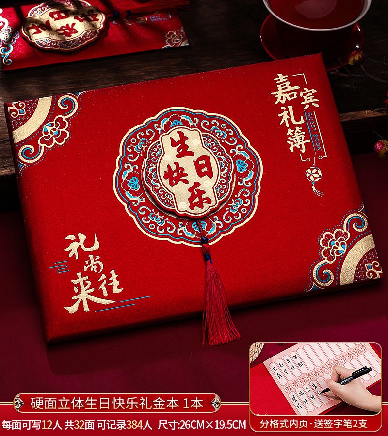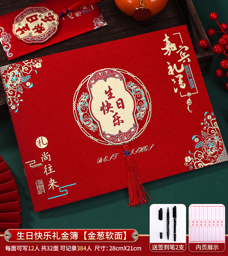 • [384명 쓰기 가능 + 펜 2개 증정 - 벨벳 하드 태슬] 가로 버전 Happy Birthday