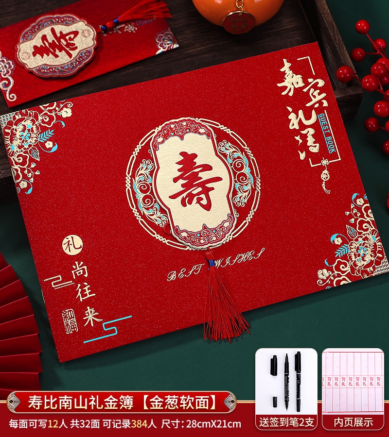 • [384명 서명 가능 - 반짝이는 단단한 국수 + 펜 2개 무료] 가로 스타일 Shoubi Nanshan