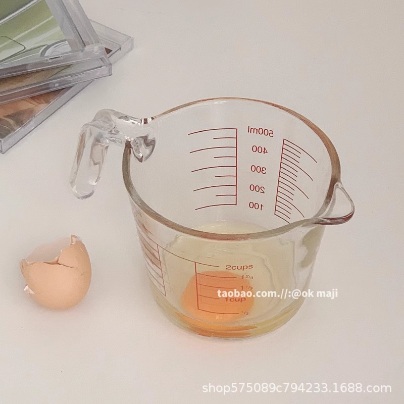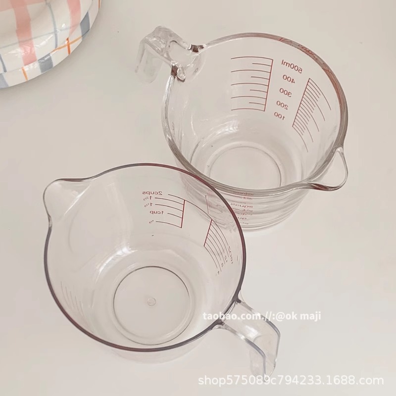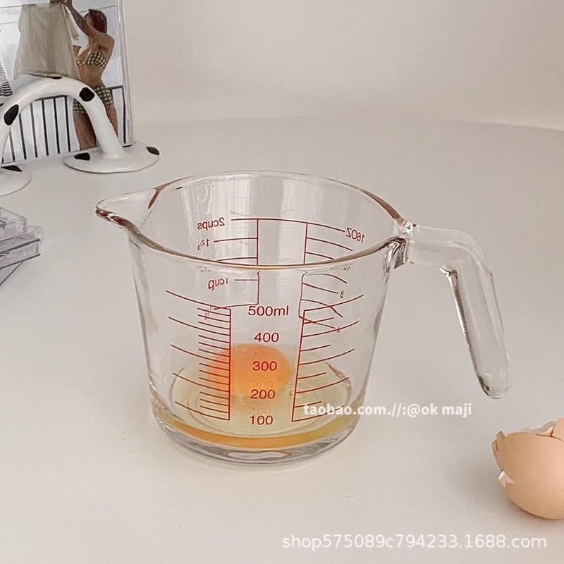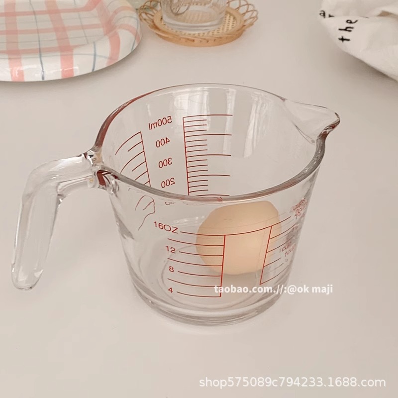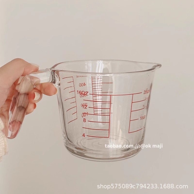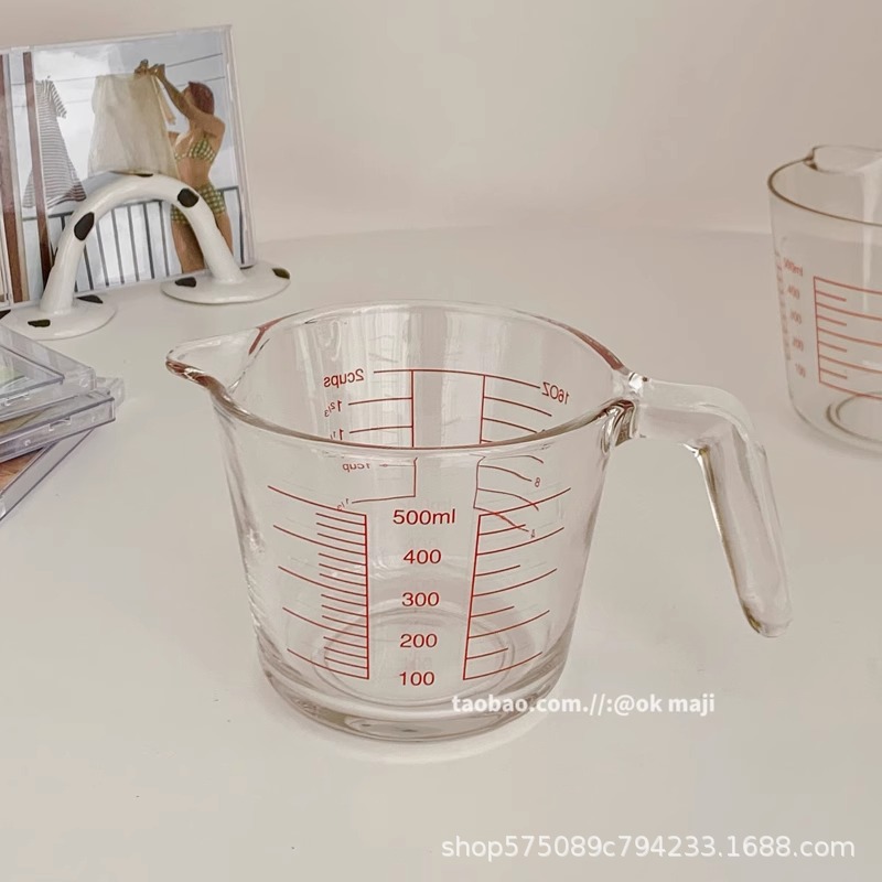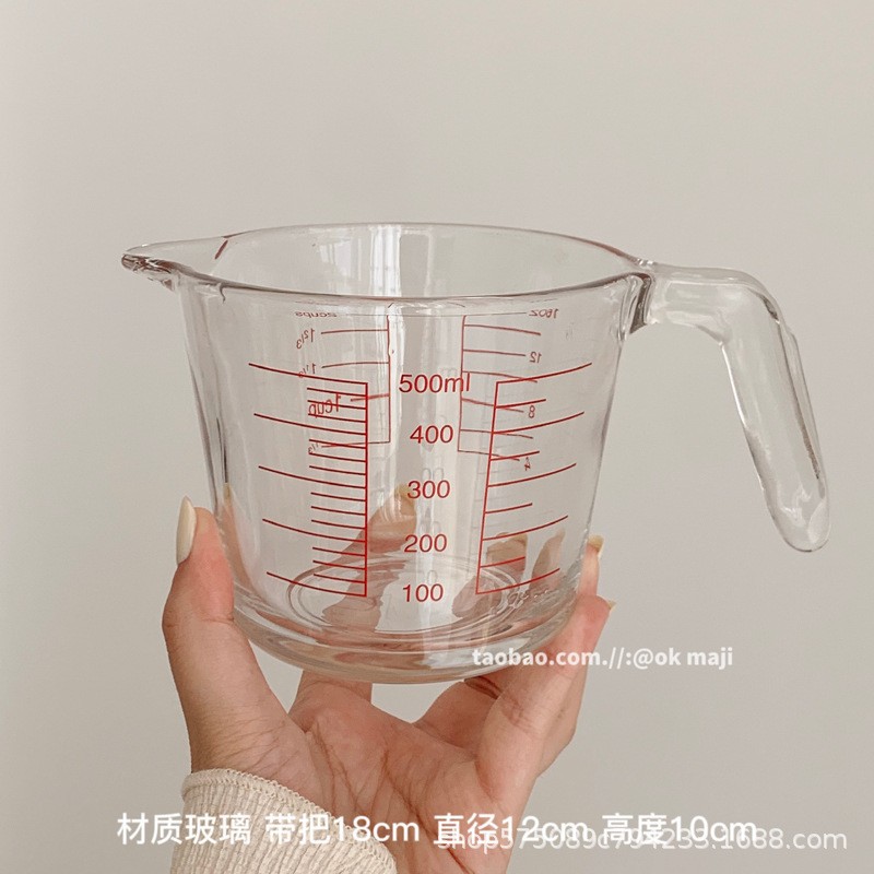 ok maji 한국 ins 블로거 같은 스타일의 우유 컵 가정용 스케일 컵 내열 유리 손잡이 측정 컵 베이킹 컵스토어 가기
