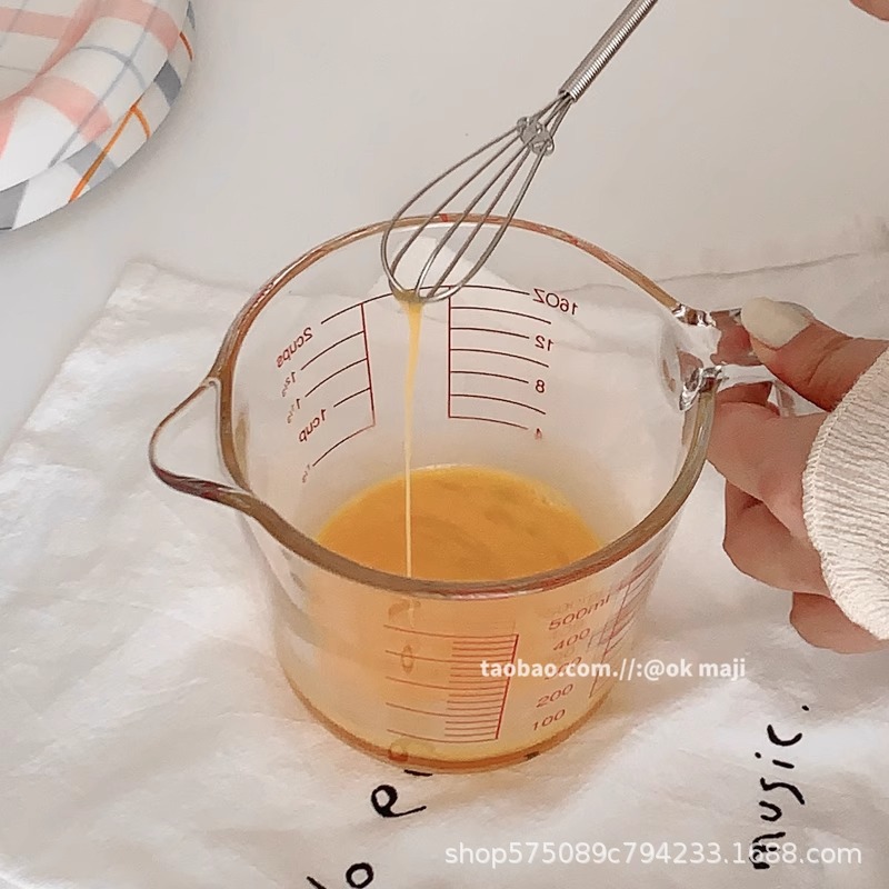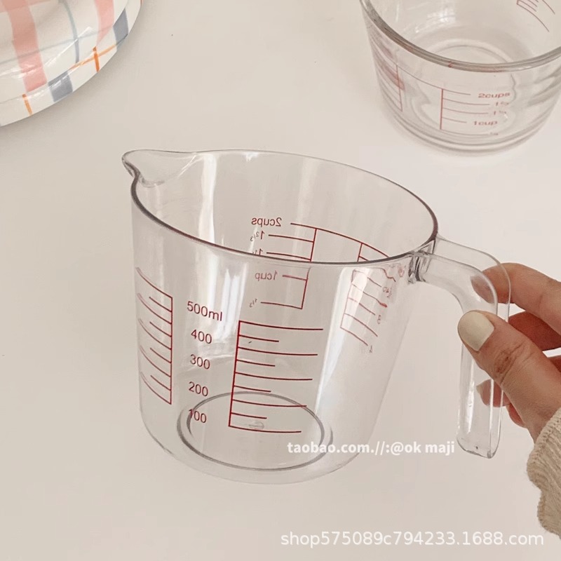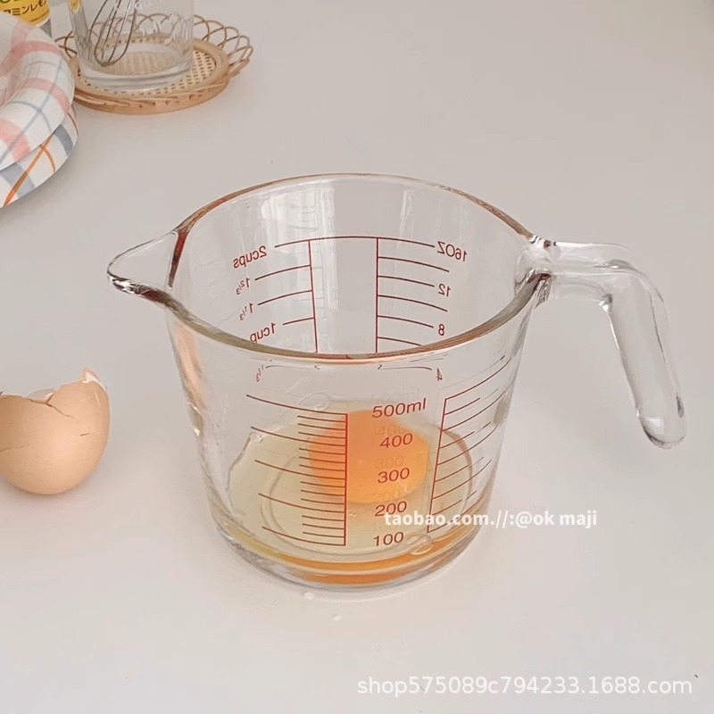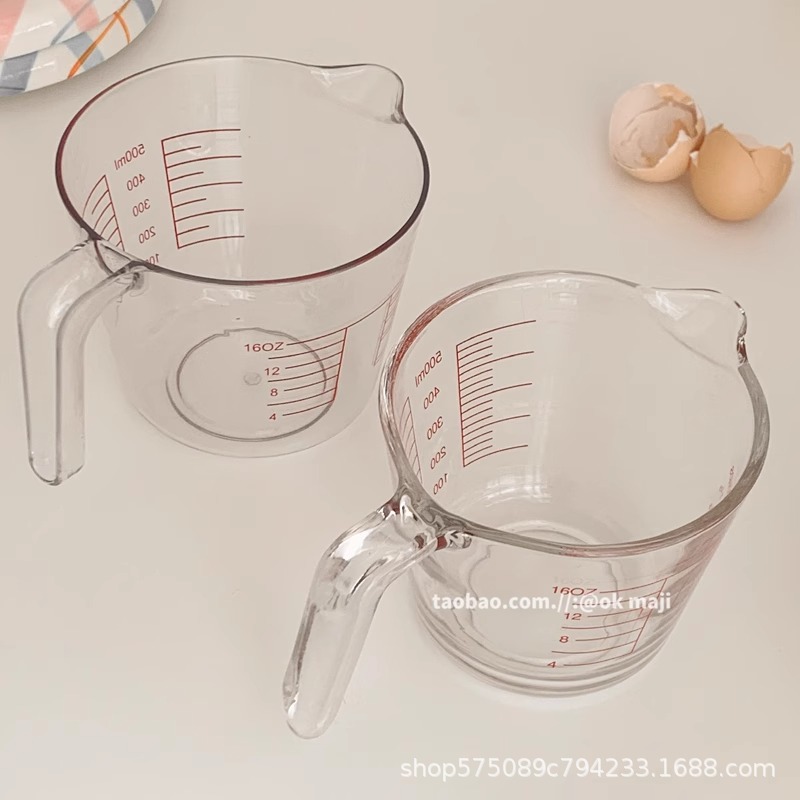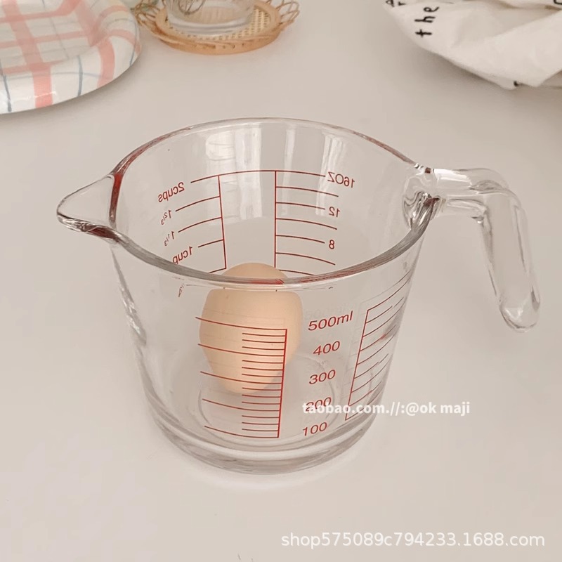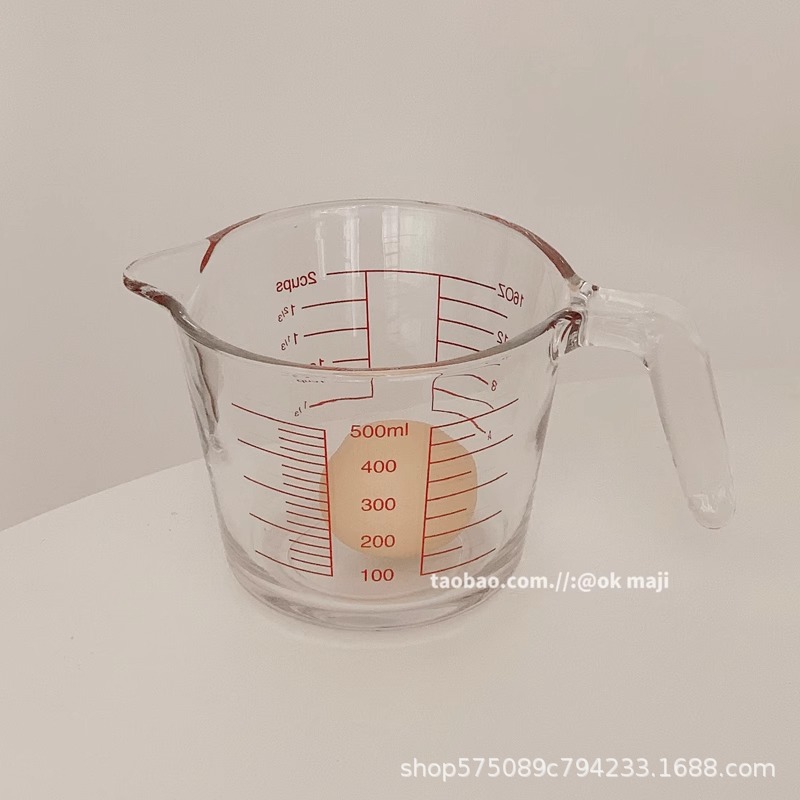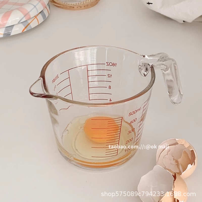 ok maji 한국 ins 블로거 같은 스타일의 우유 컵 가정용 스케일 컵 내열 유리 손잡이 측정 컵 베이킹 컵스토어 가기