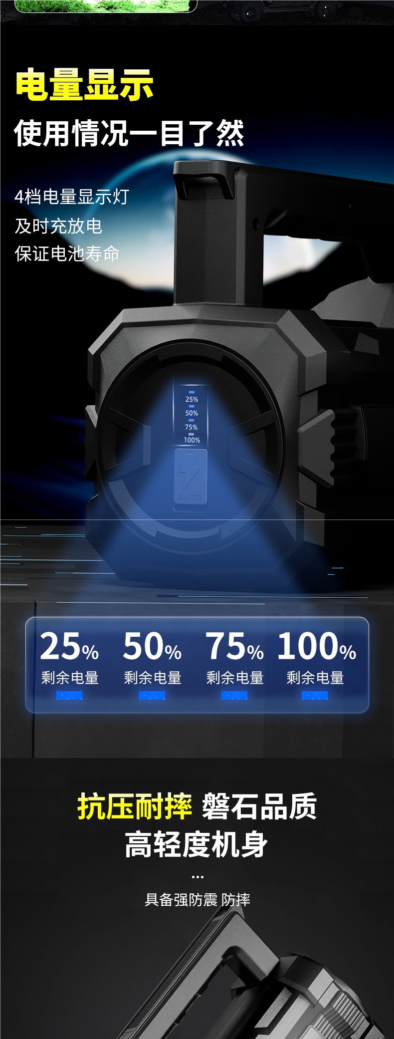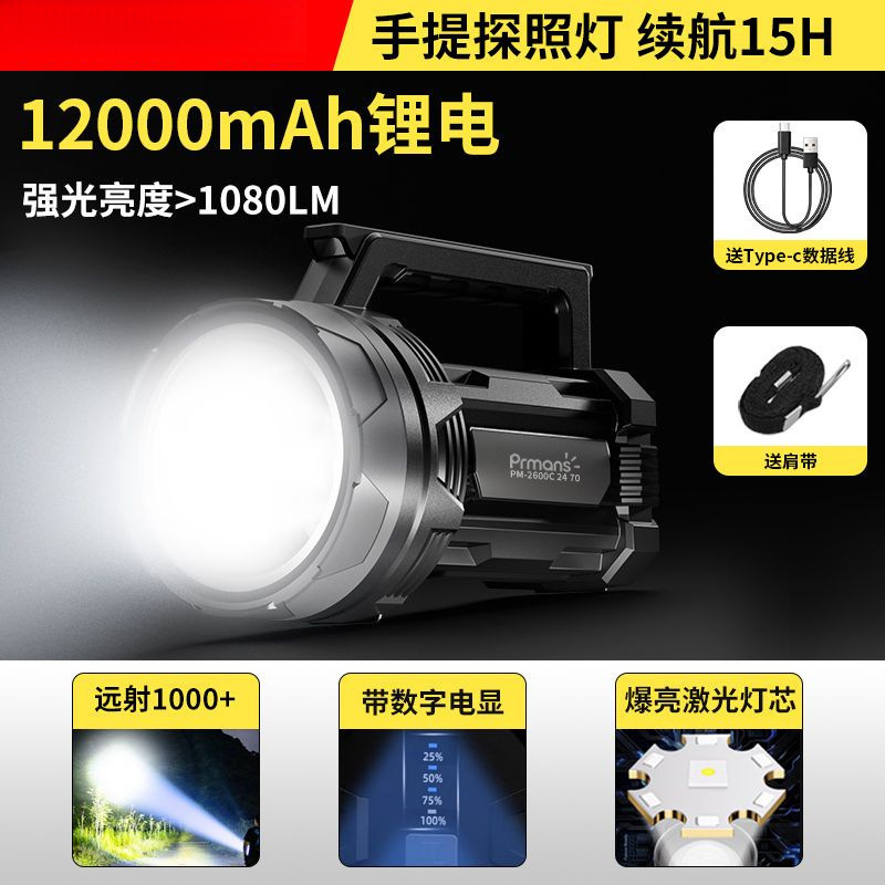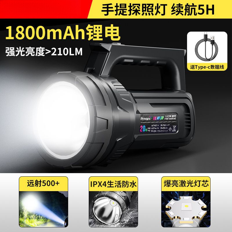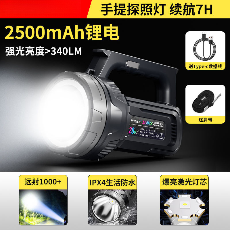 휴대용 탐조등, 강한 빛, 긴 배터리 수명, 충전식 야외 장거리 고출력 손전등 용량, 무료 배송스토어 가기