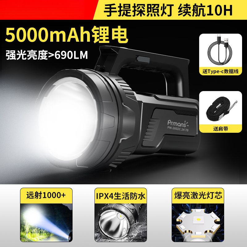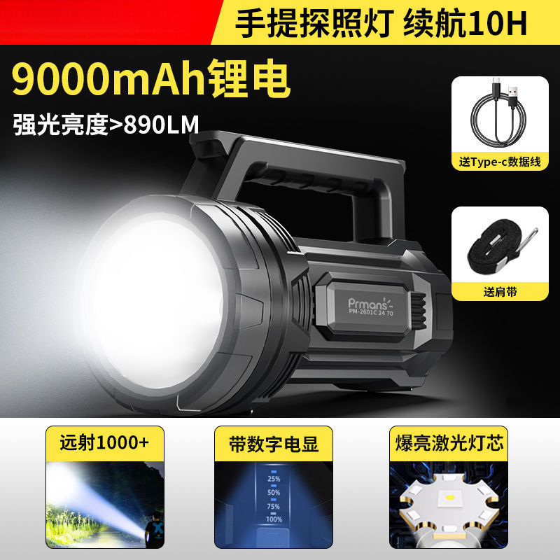 휴대용 탐조등, 강한 빛, 긴 배터리 수명, 충전식 야외 장거리 고출력 손전등 용량, 무료 배송