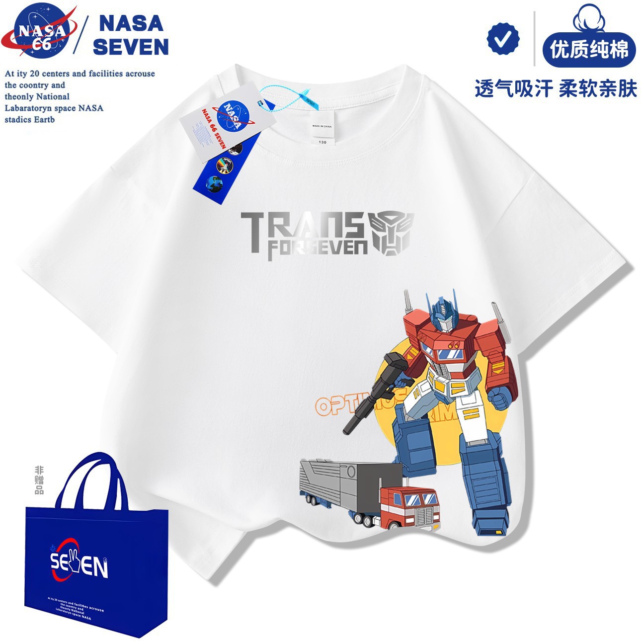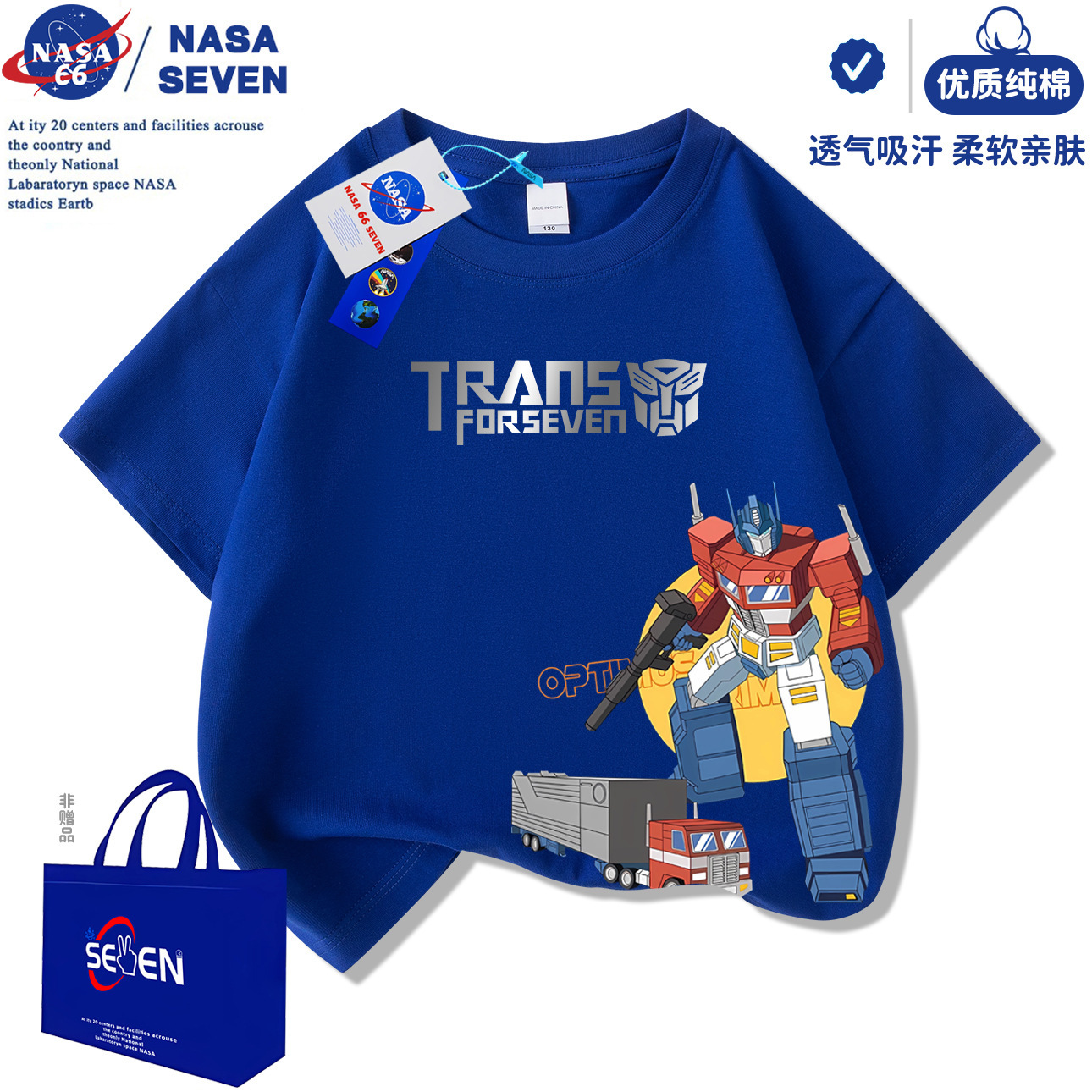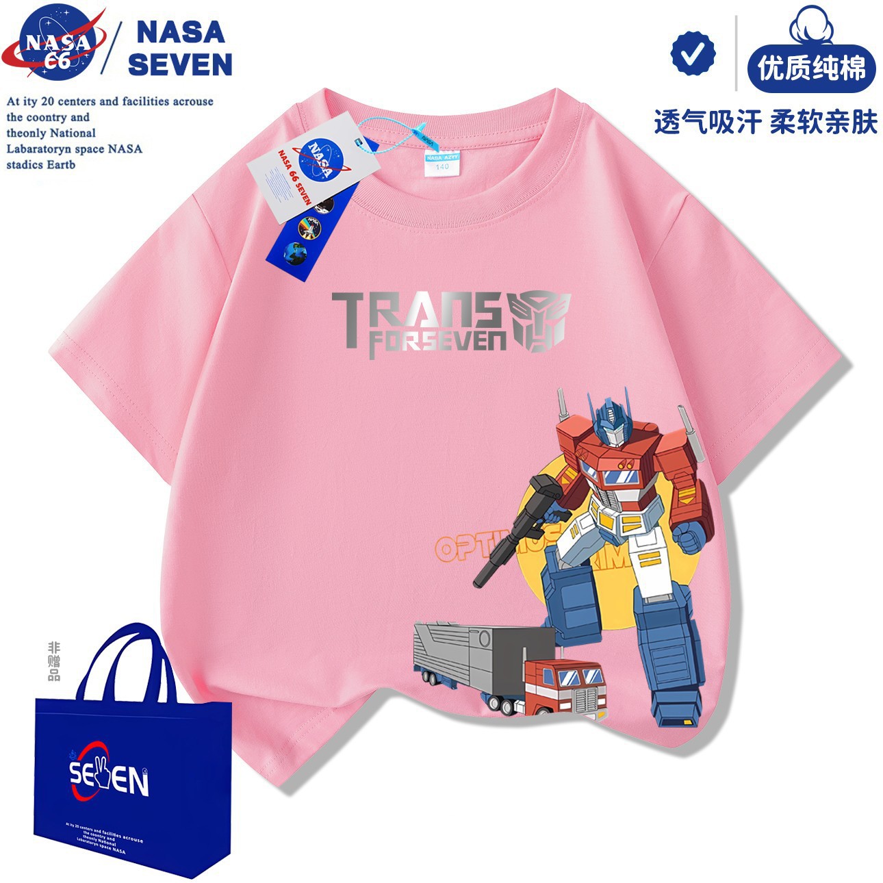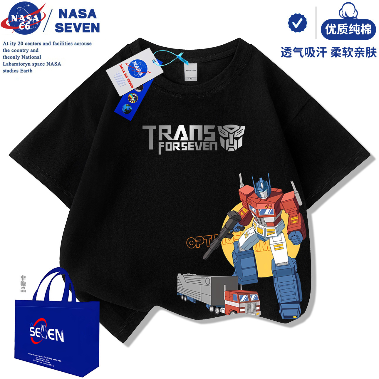 NASA 만화 Optimus Prime 아동용 반팔 잘 생긴 여름 Transformers 순면 티셔츠 중대형 아동 캐주얼상의스토어 가기