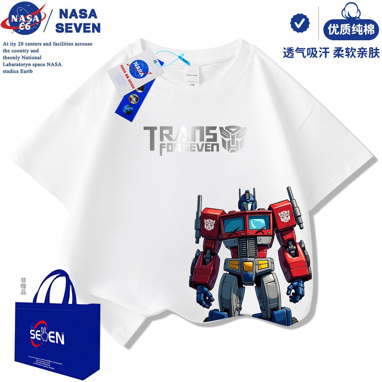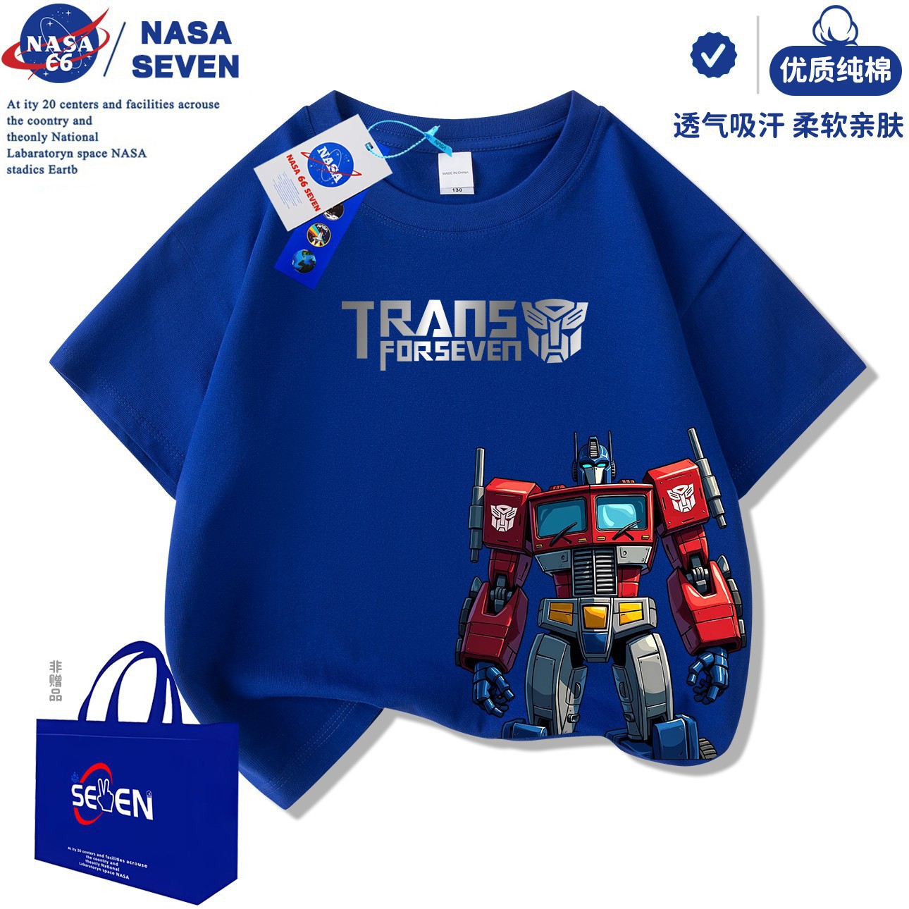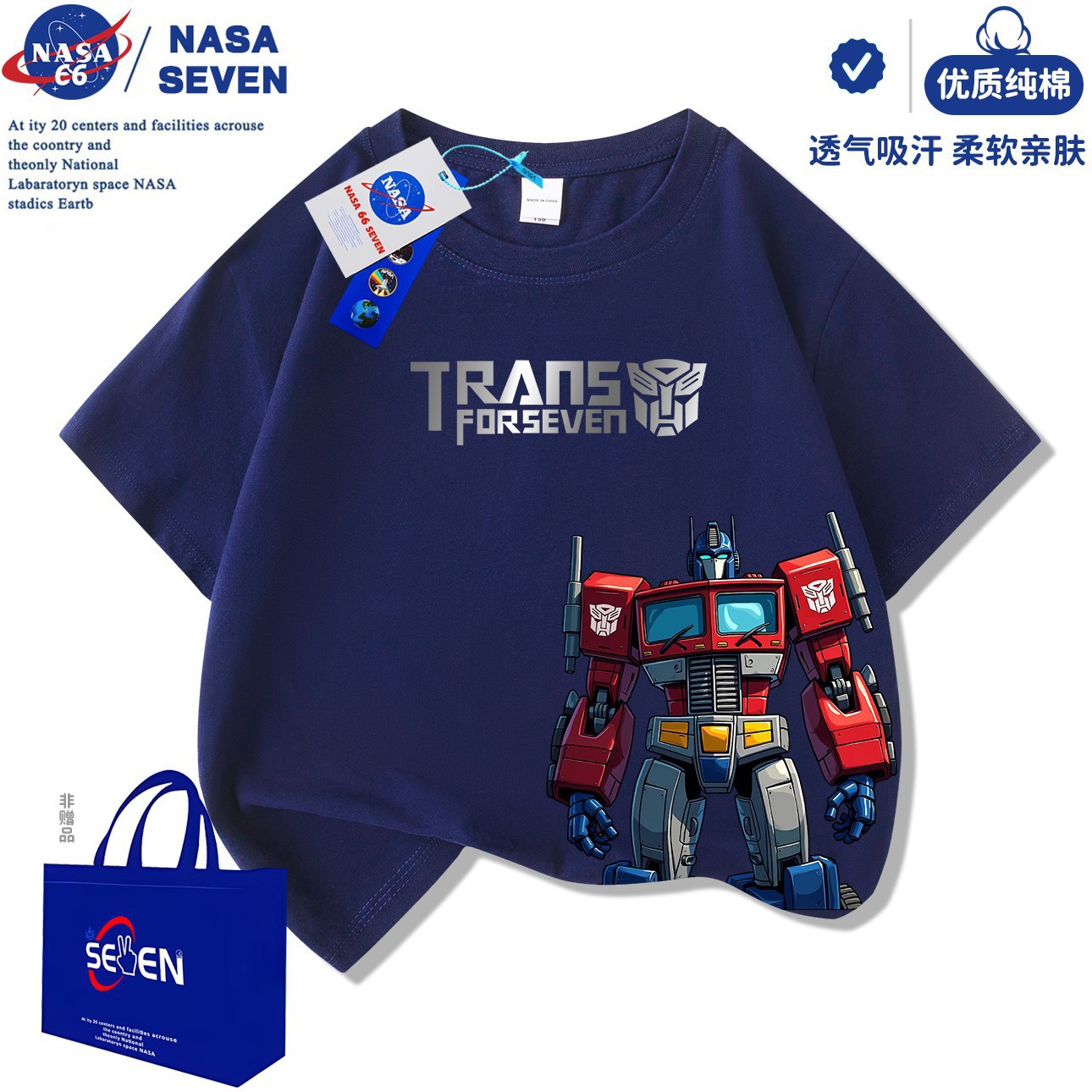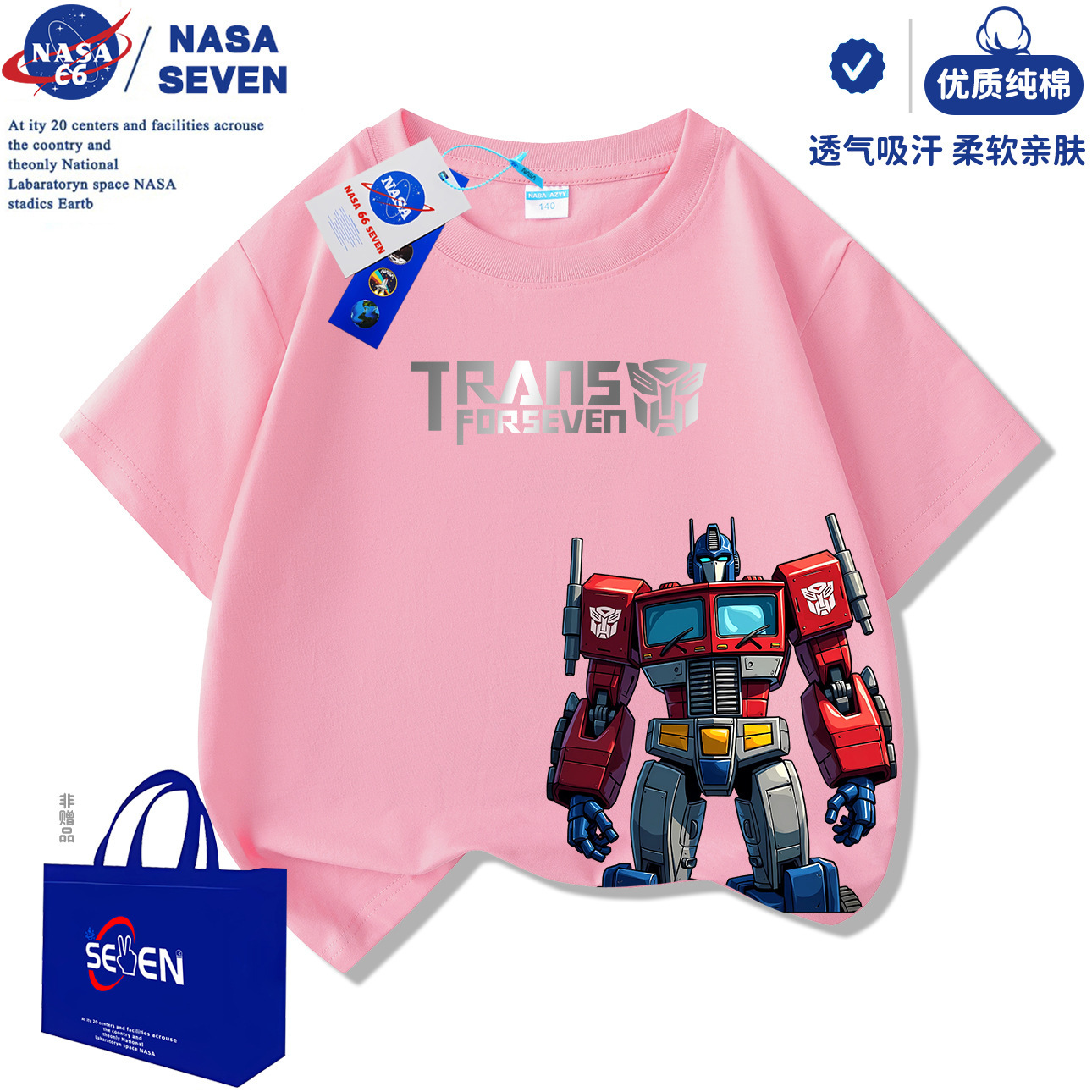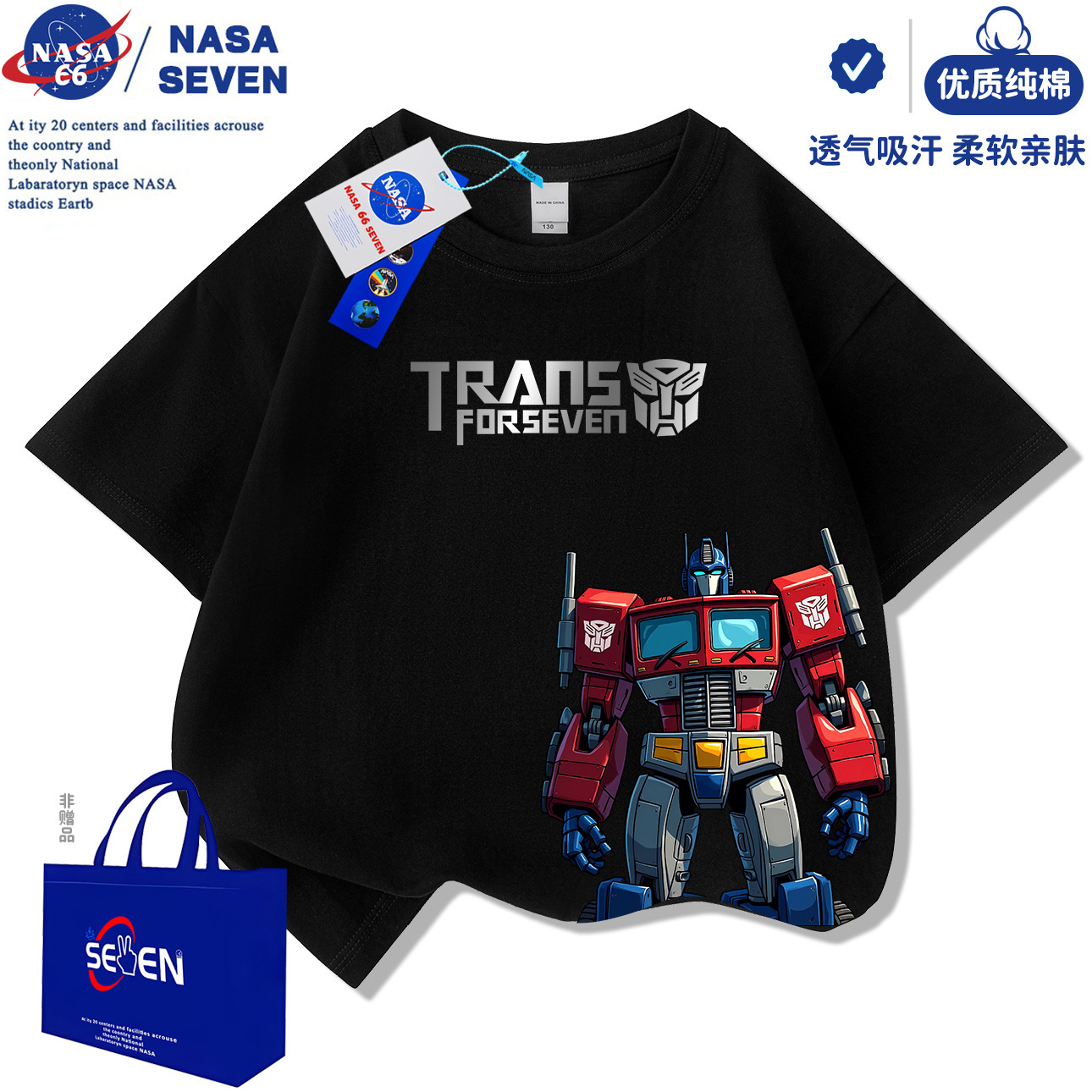 NASA 만화 Optimus Prime 아동용 반팔 잘 생긴 여름 Transformers 순면 티셔츠 중대형 아동 캐주얼상의스토어 가기
