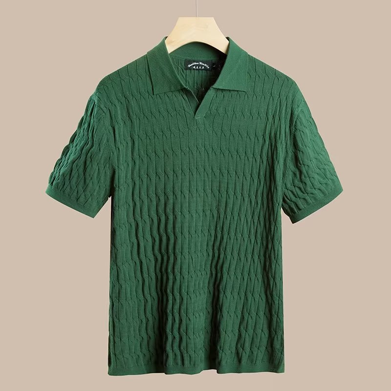 가볍고 성숙한 남성용 폴로 셔츠, 반팔 트렌디 티셔츠, 심플한 하이엔드 슬림핏 라펠 니트 반팔 탑스토어 가기