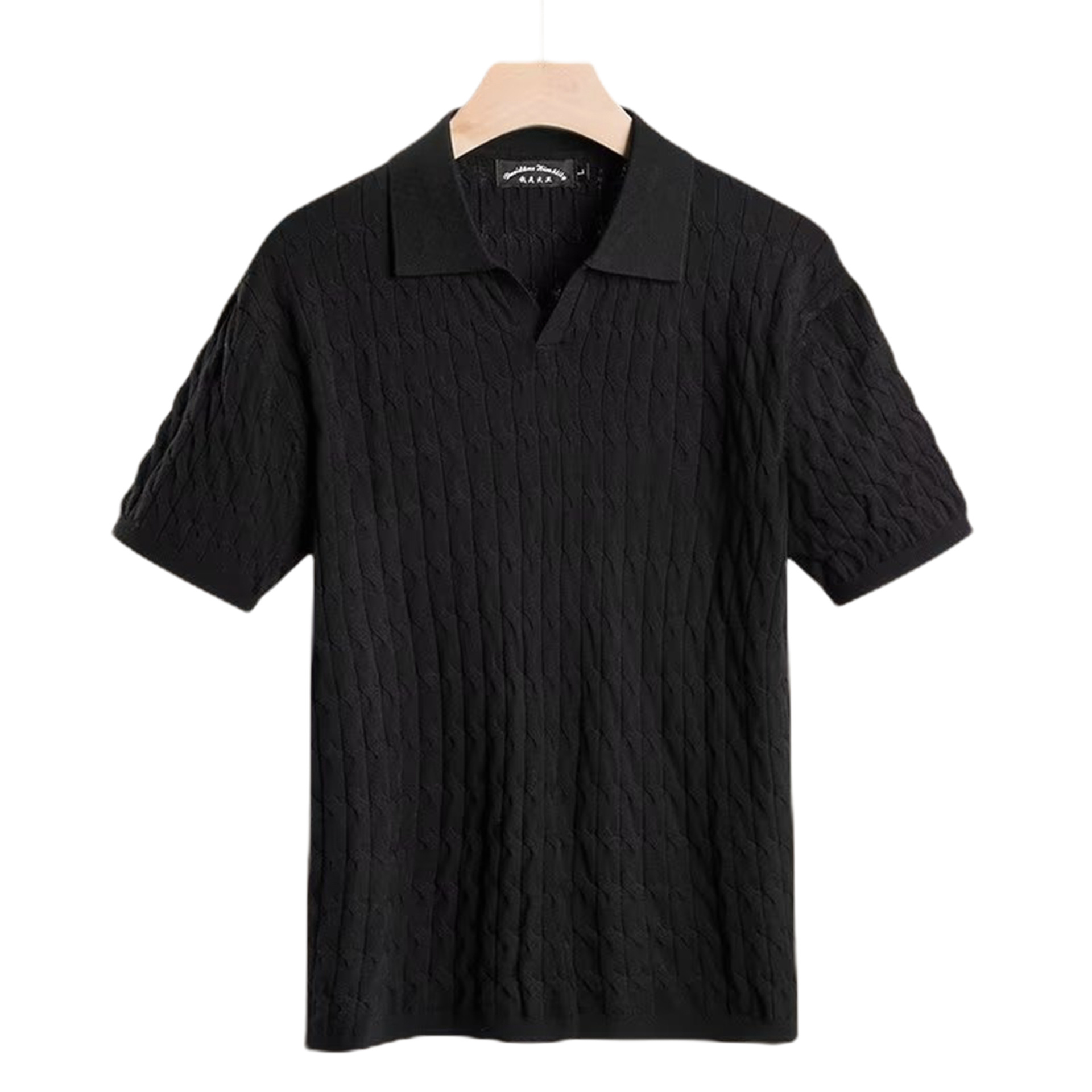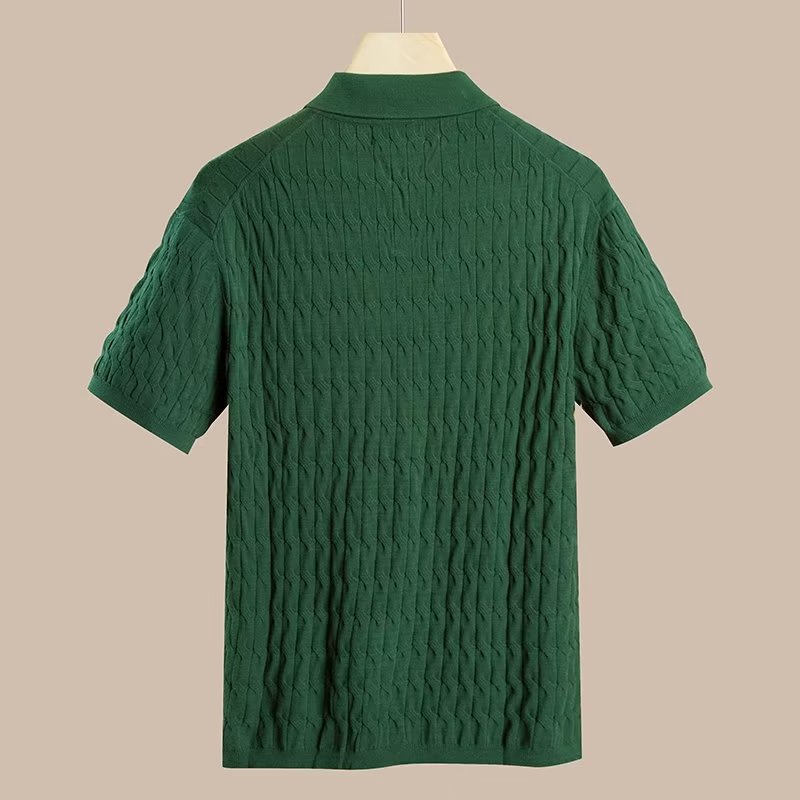 가볍고 성숙한 남성용 폴로 셔츠, 반팔 트렌디 티셔츠, 심플한 하이엔드 슬림핏 라펠 니트 반팔 탑
