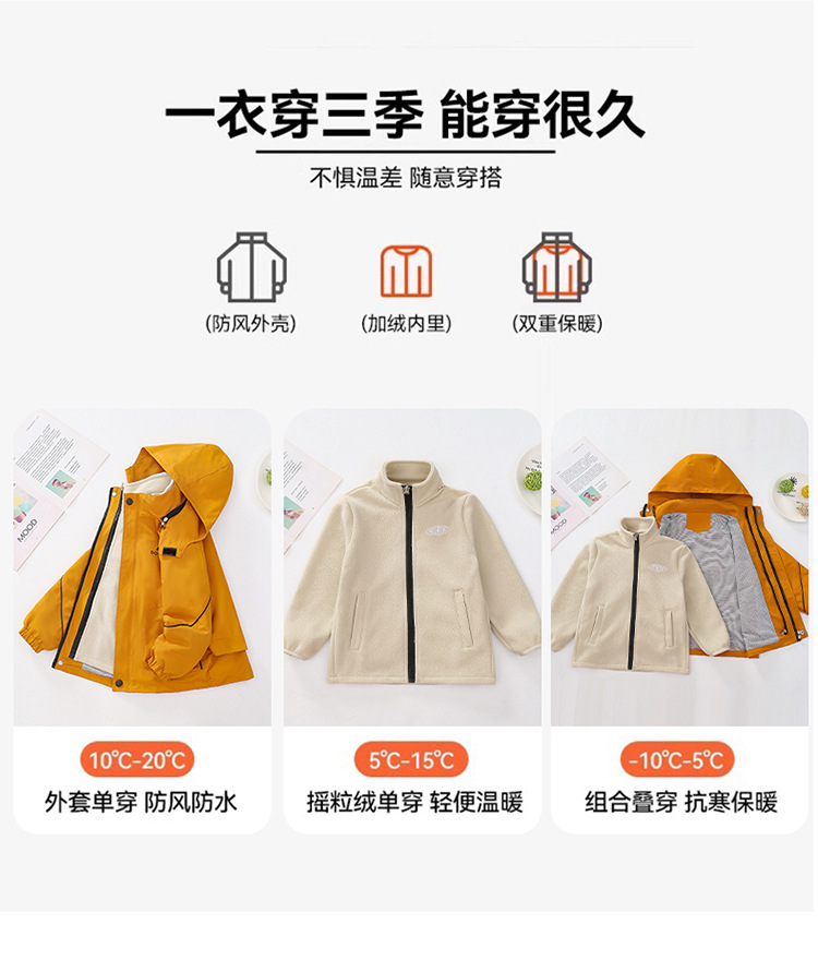 소년 양털 재킷 2025 새로운 봄, 가을, 겨울 소년 3-in-one 방풍 및 방수 어린이 두꺼운 유행스토어 가기