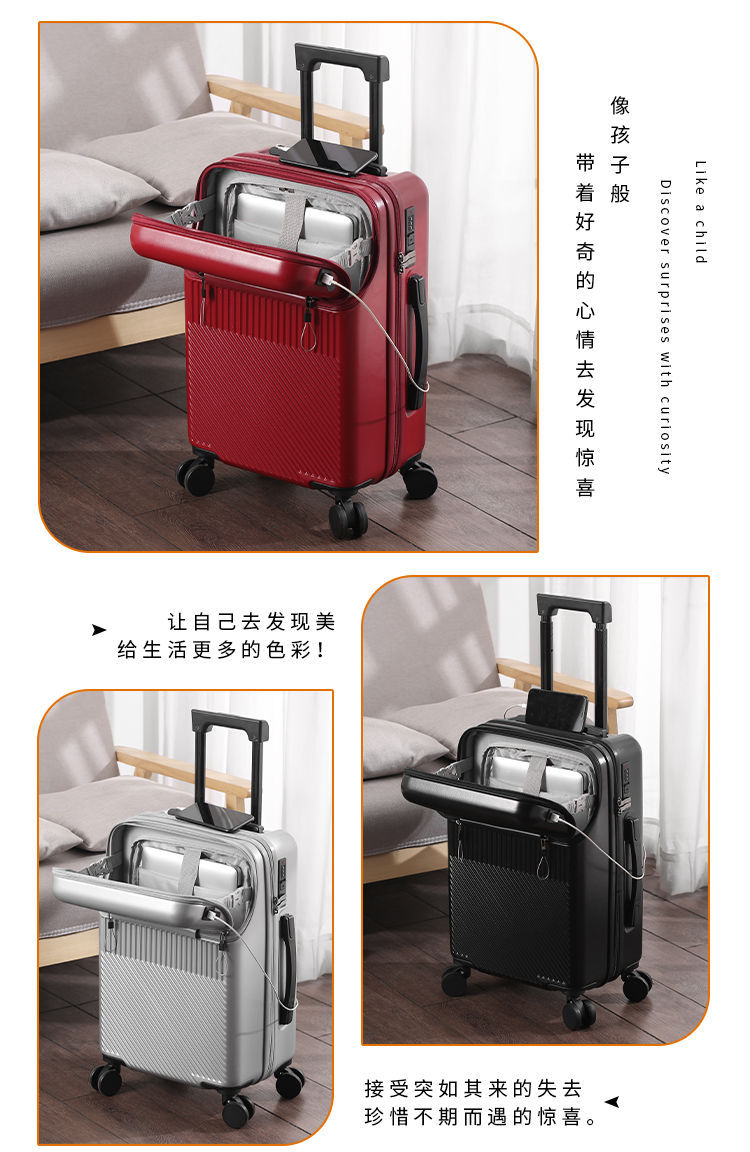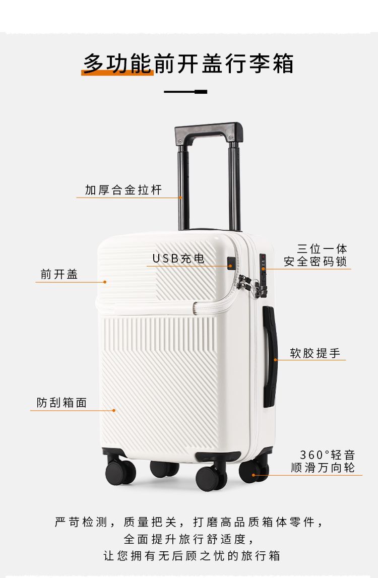 전면 개방형 다기능 무음 20 수하물 학생 새로운 트롤리 케이스 케이스 범용 휠 가방 비즈니스