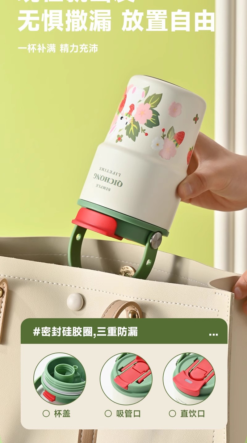 세라믹 라이너 보온병 컵 316 스테인레스 스틸 커피 컵 고급스러운 만화 패턴 더블 스트로 컵