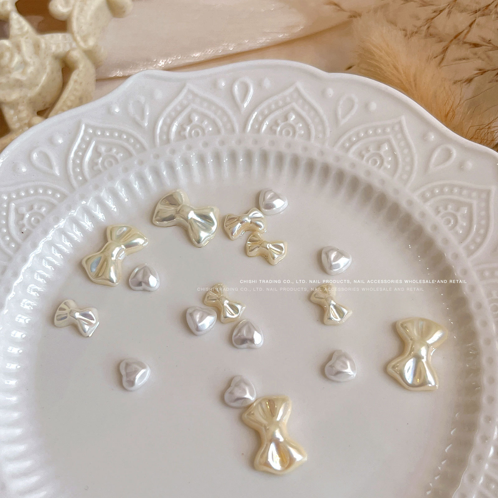 진주 네일 아트 쥬얼리 2025 새로운 프랑스어 간단한 활 사랑 모조 쉘 플랫 네일 다이아몬드 장식 도매