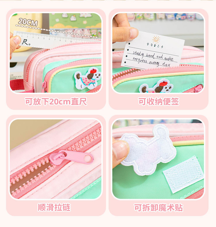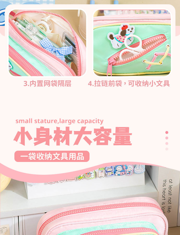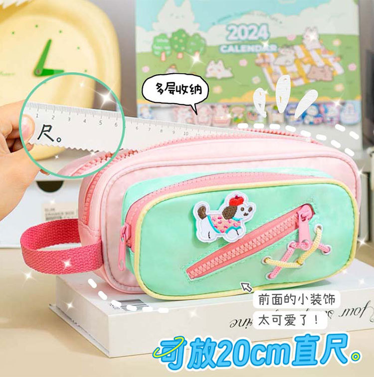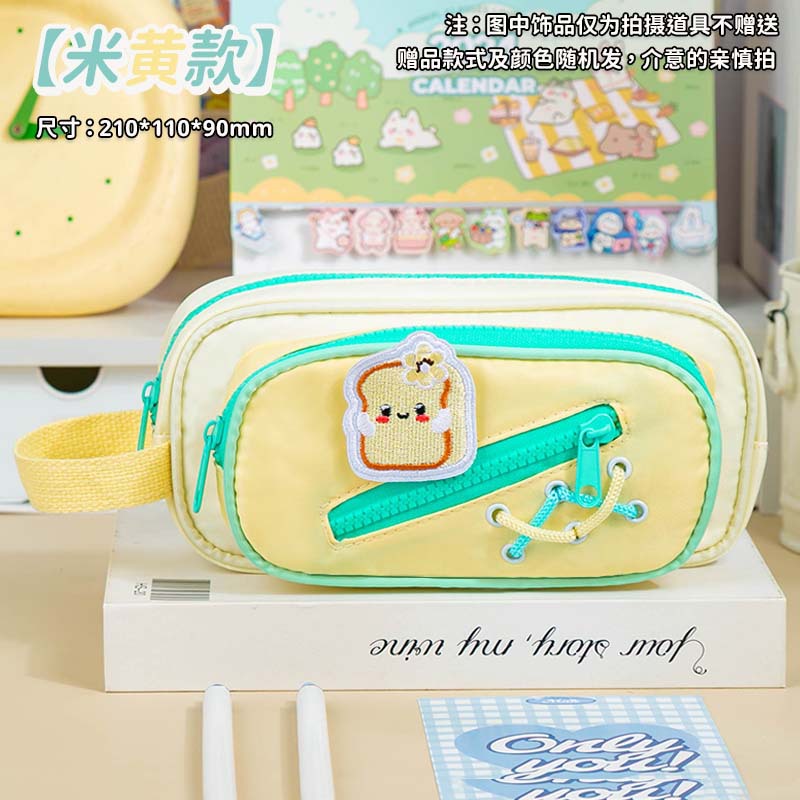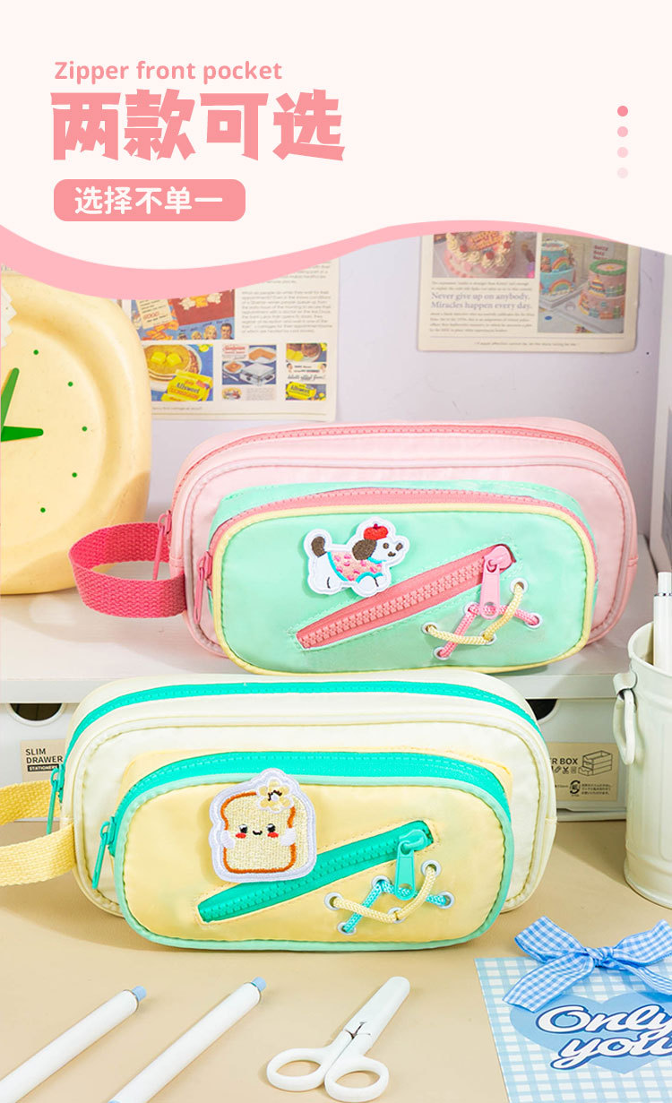 중학생을 위한 한국식 도파민 대비색 연필가방, 귀여운 대용량 보조 자수, 새로운 핸드헬드 스플라이스 문구류스토어 가기