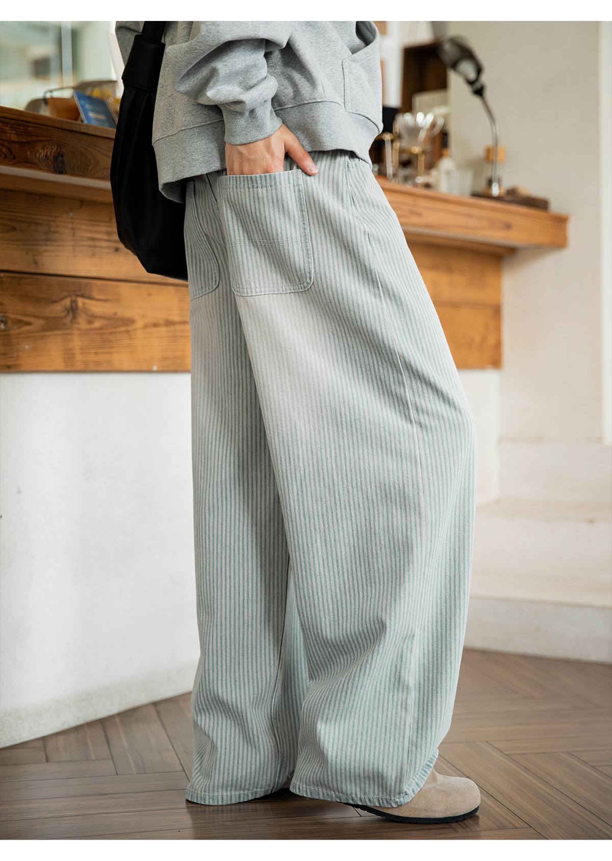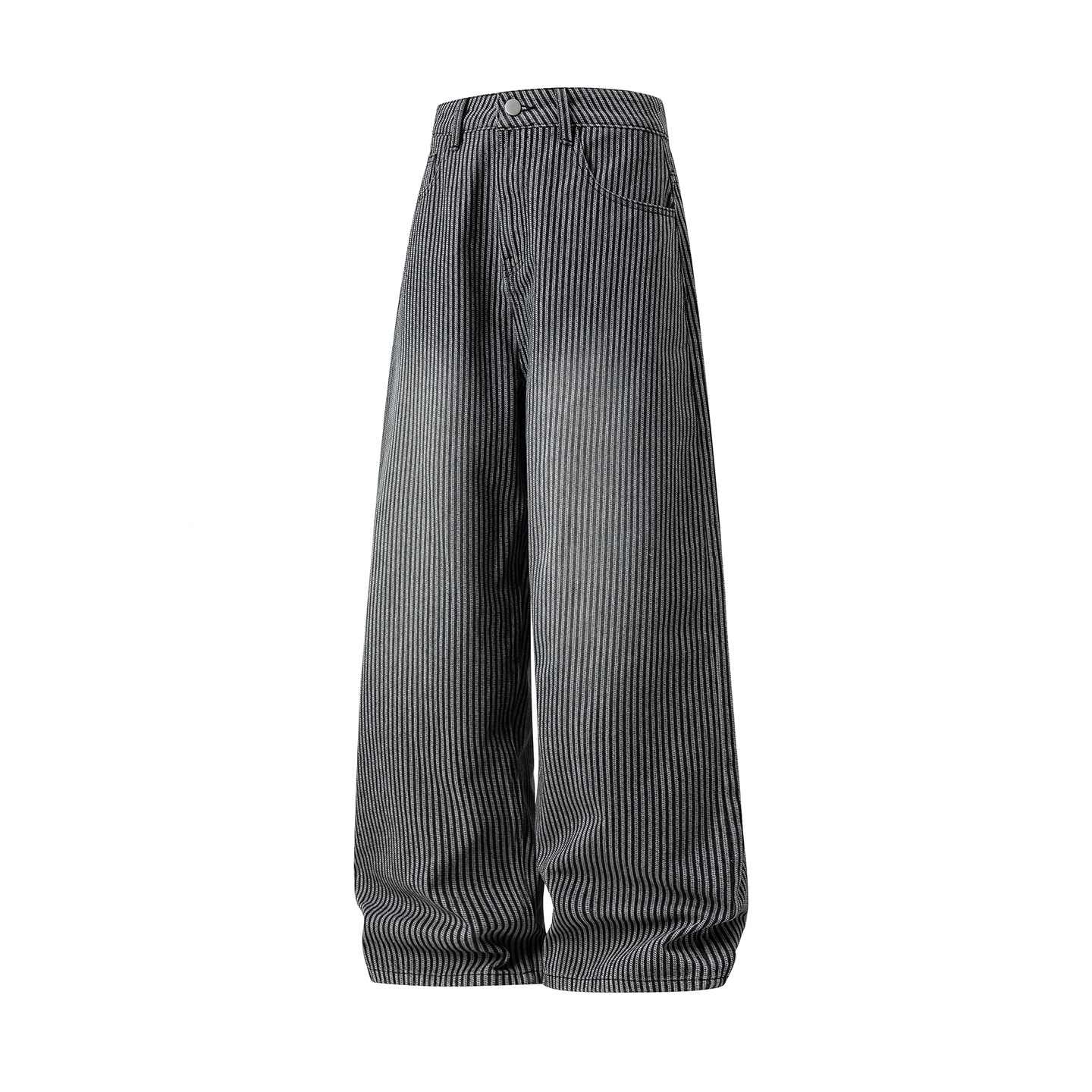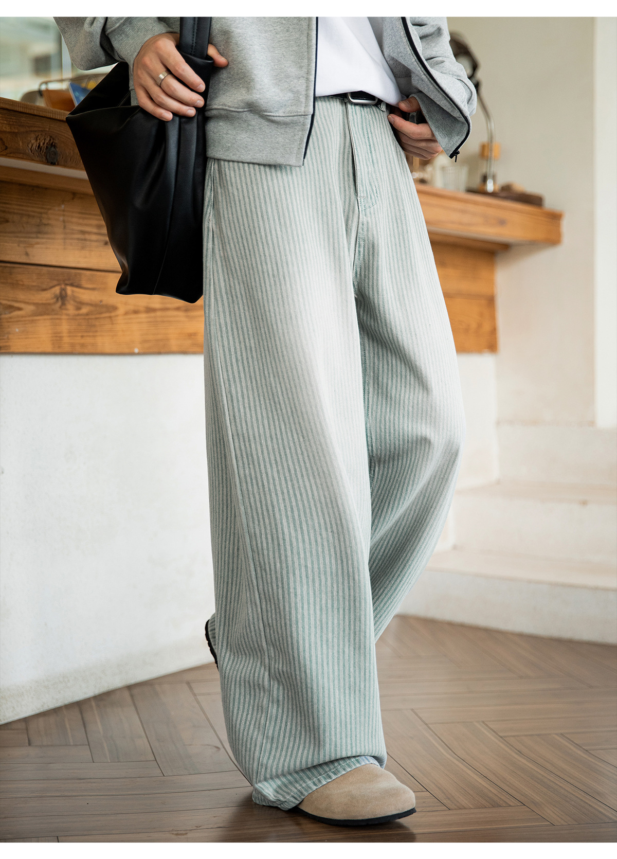 미국 레트로 스타일 세로 줄무늬 청바지 남성용 가을 모델 루즈핏 트렌디 브랜드 스트레이트 팬츠 워싱 빈티지 롱 팬츠