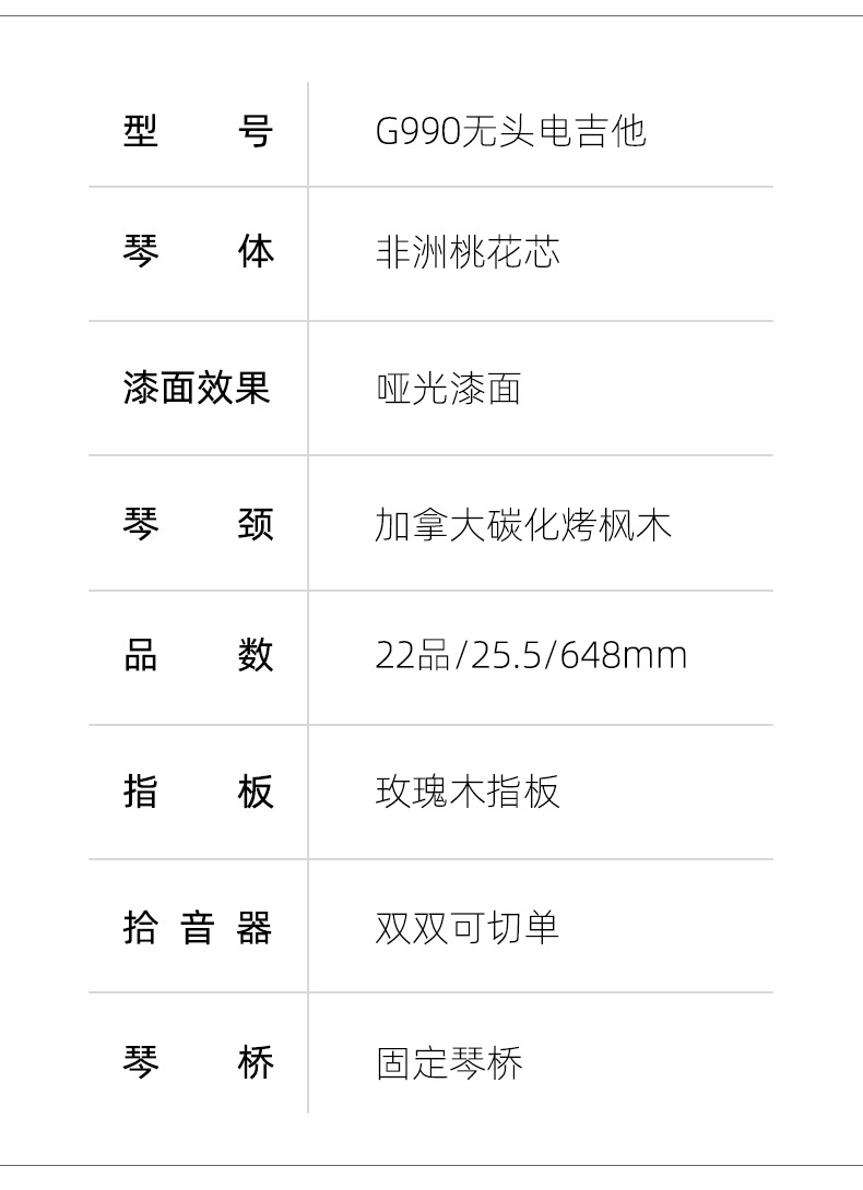 • 헤드리스 일렉트릭 기타 - 우드 컬러 + 액세서리