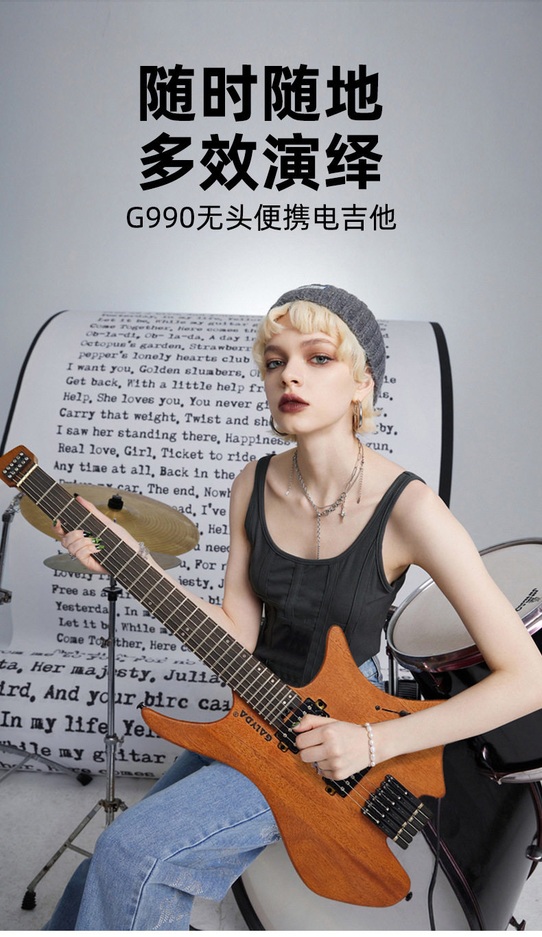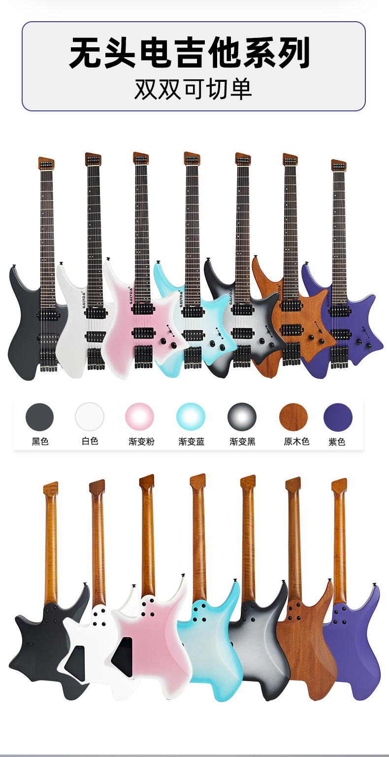 국경을 넘는 인기 모델 헤드리스 일렉트릭 기타 피치 월넛 여행용 록 보급형 기타 도매 고급 원목 일렉트릭 기타