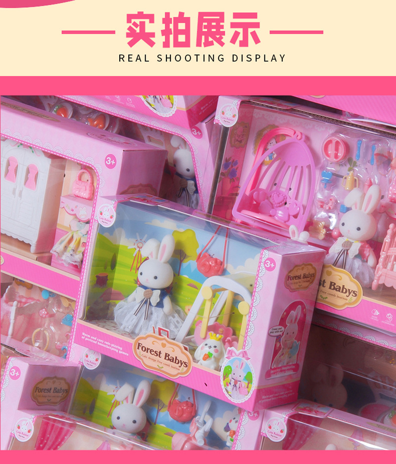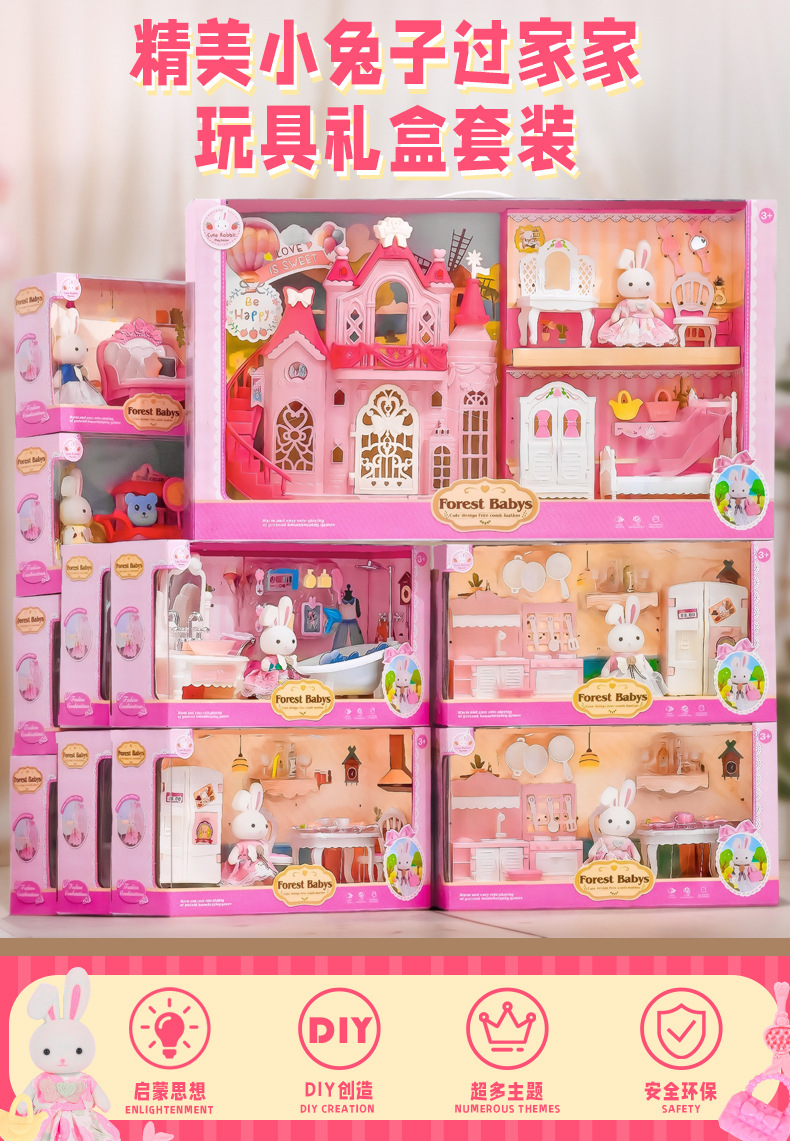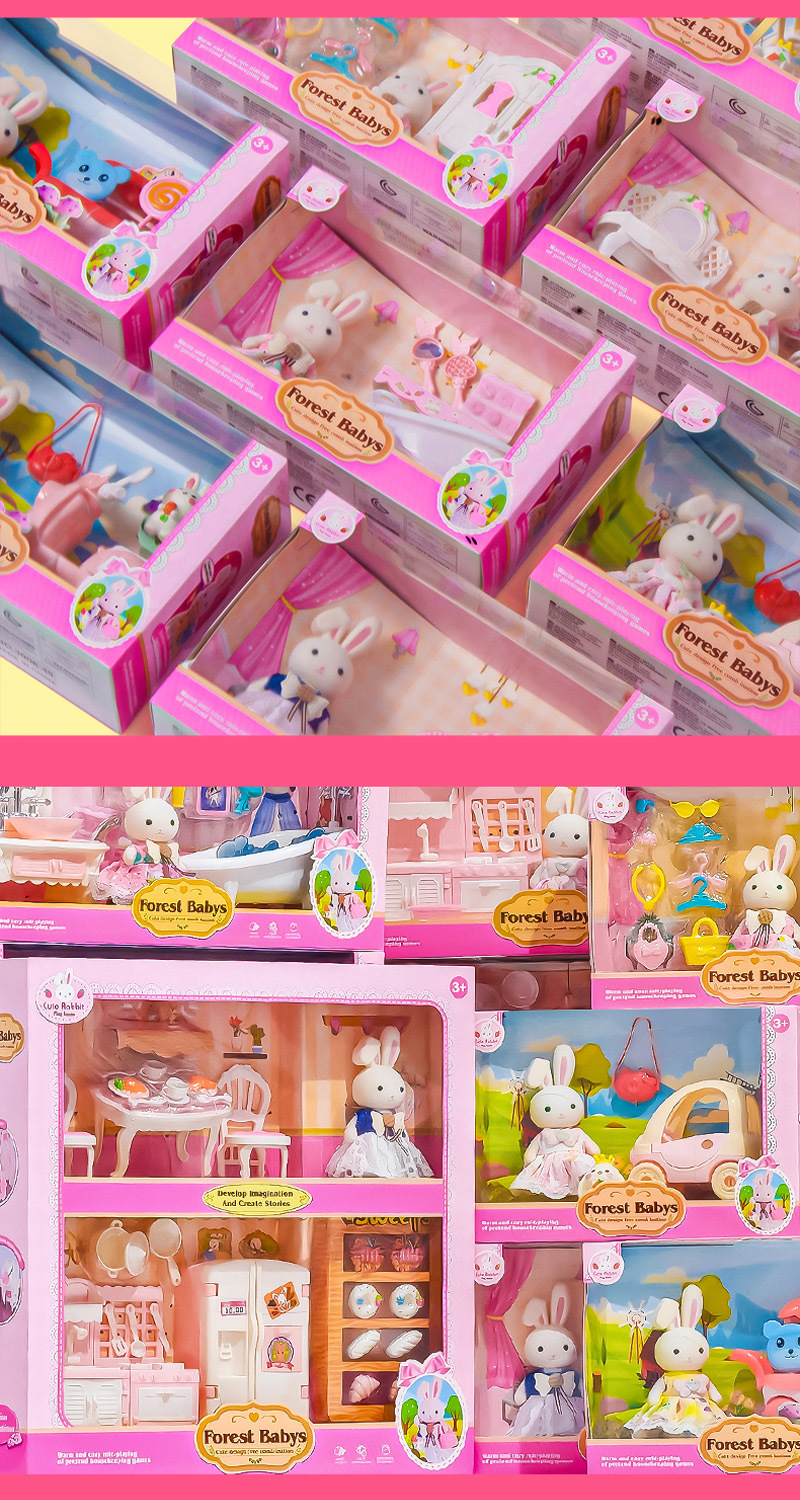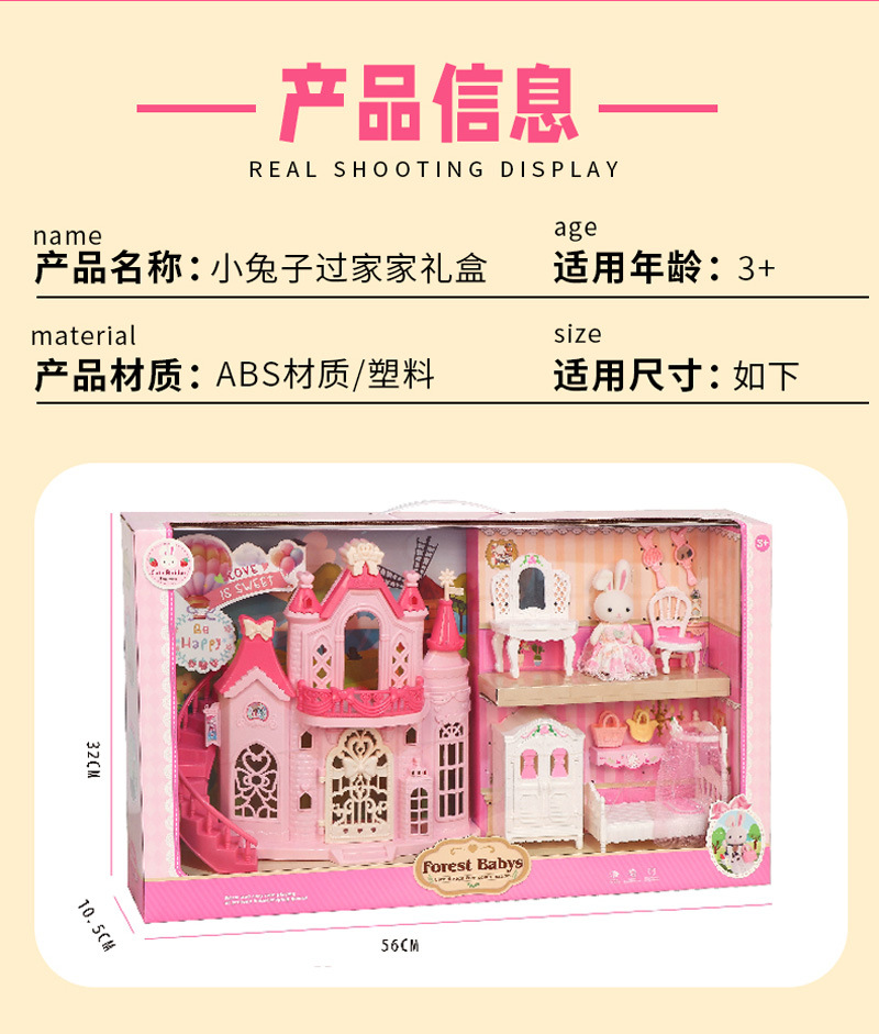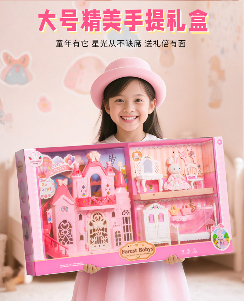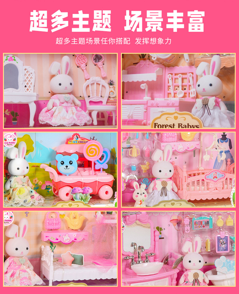 국경 간 플록 토끼 놀이 집 장난감 귀여운 토끼 인형 대형 성 디저트 하우스 생일 소녀 어린이 장난감스토어 가기
