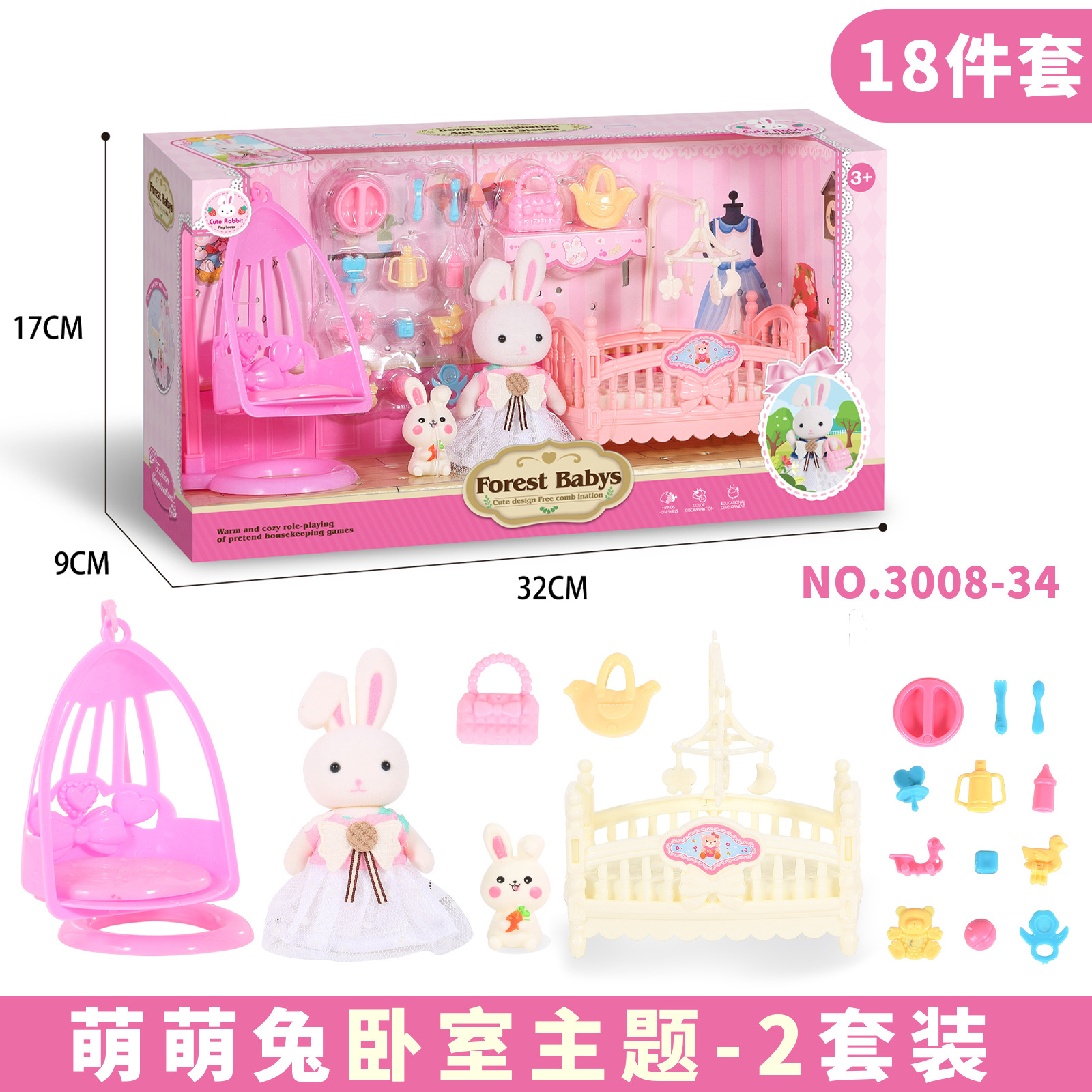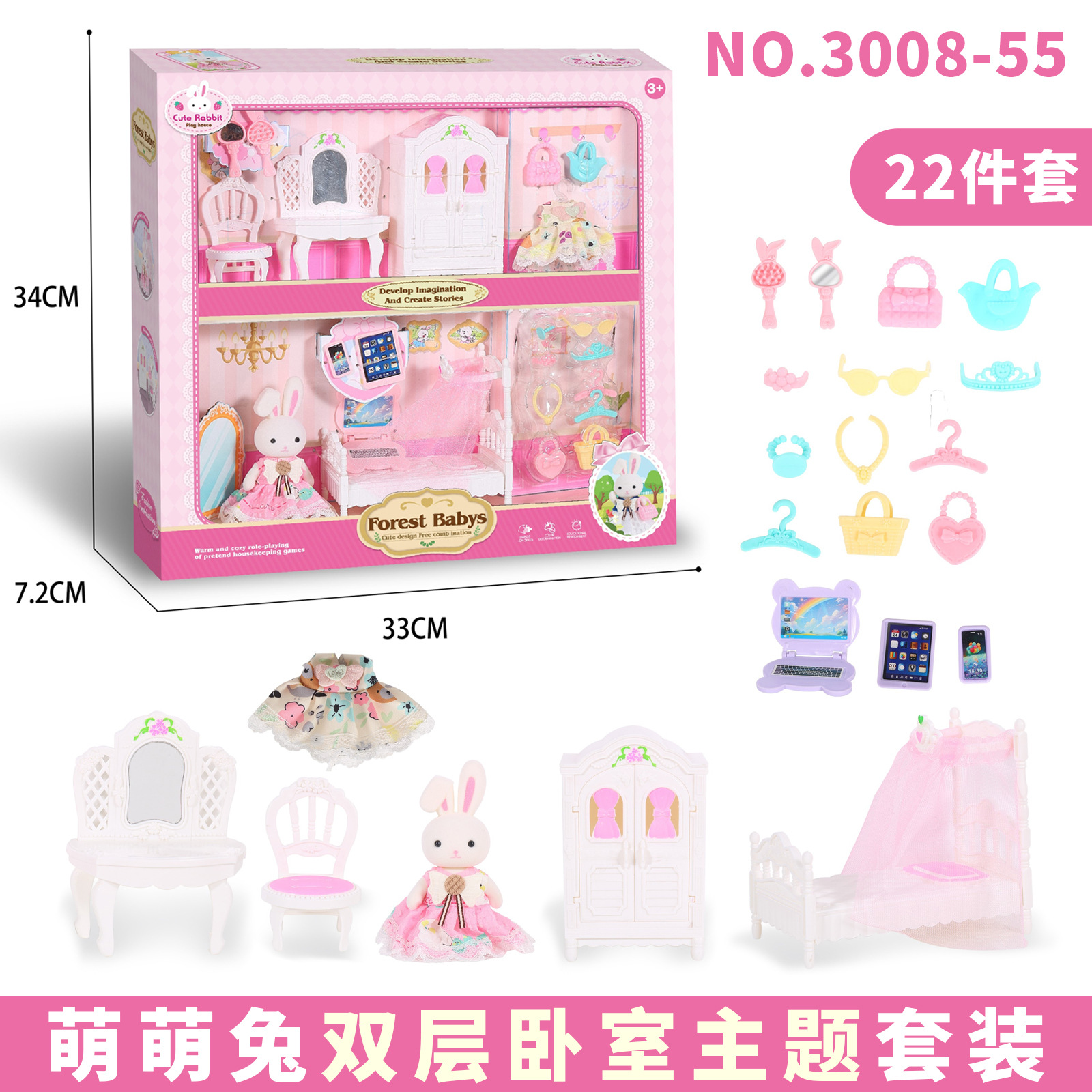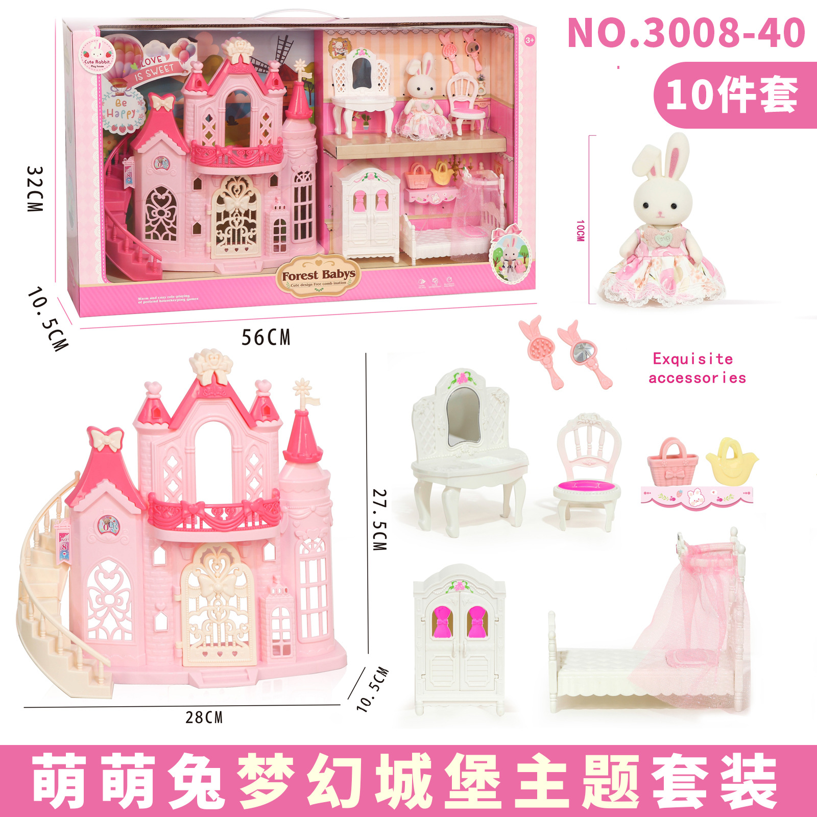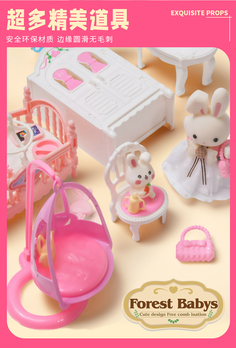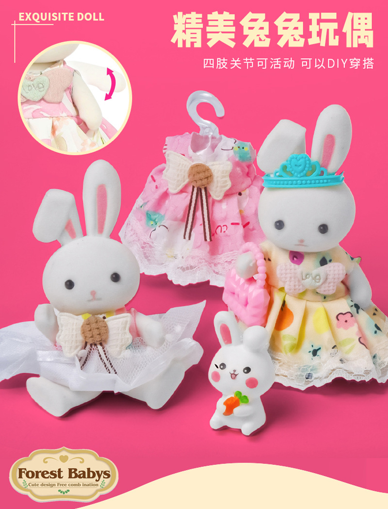 국경 간 플록 토끼 놀이 집 장난감 귀여운 토끼 인형 대형 성 디저트 하우스 생일 소녀 어린이 장난감스토어 가기