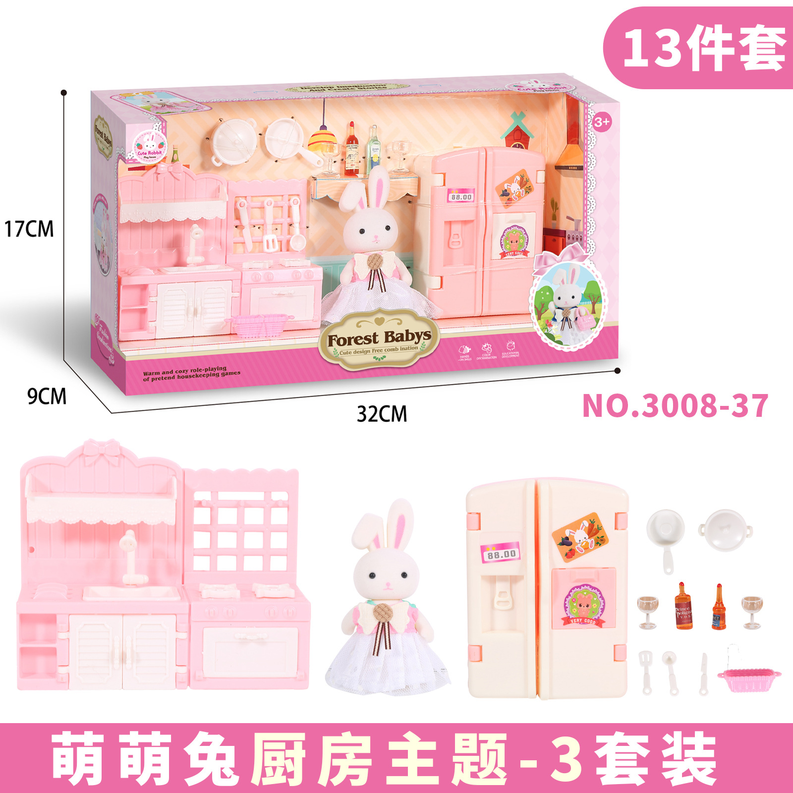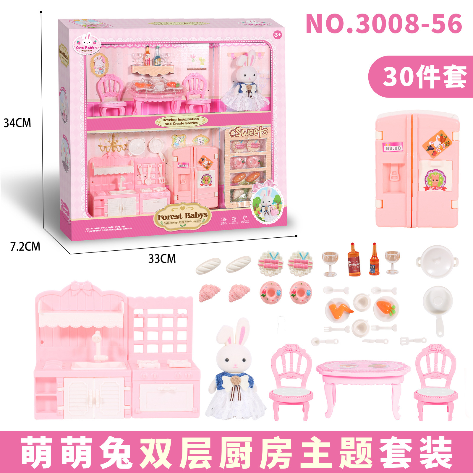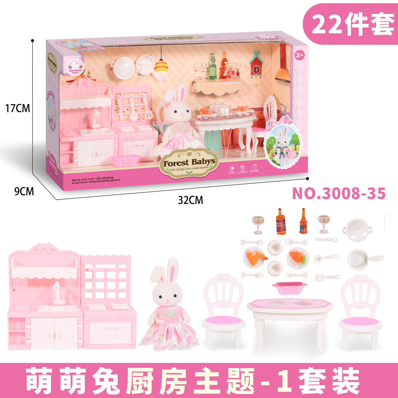 • [큰 선물 상자] 무리 토끼 주방 테마-3008-35