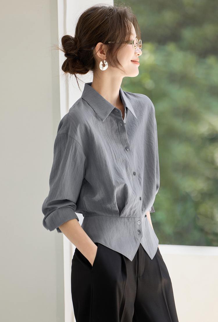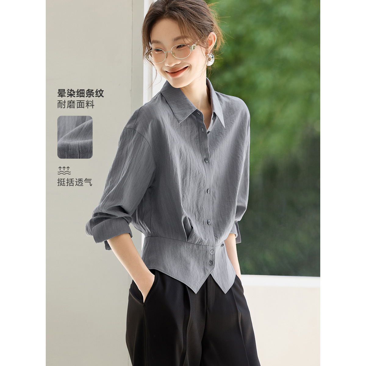 프렌치 스타일 여성 셔츠 탑 2025 가을 통근 셔츠 허리 슬리밍 셔츠스토어 가기
