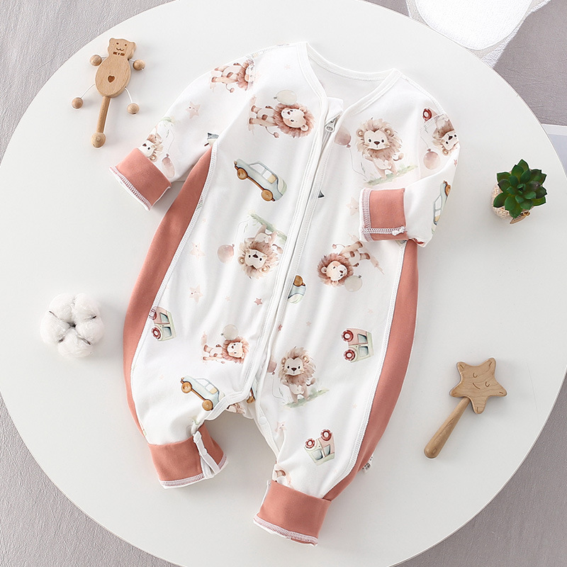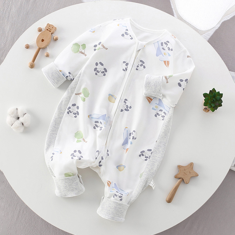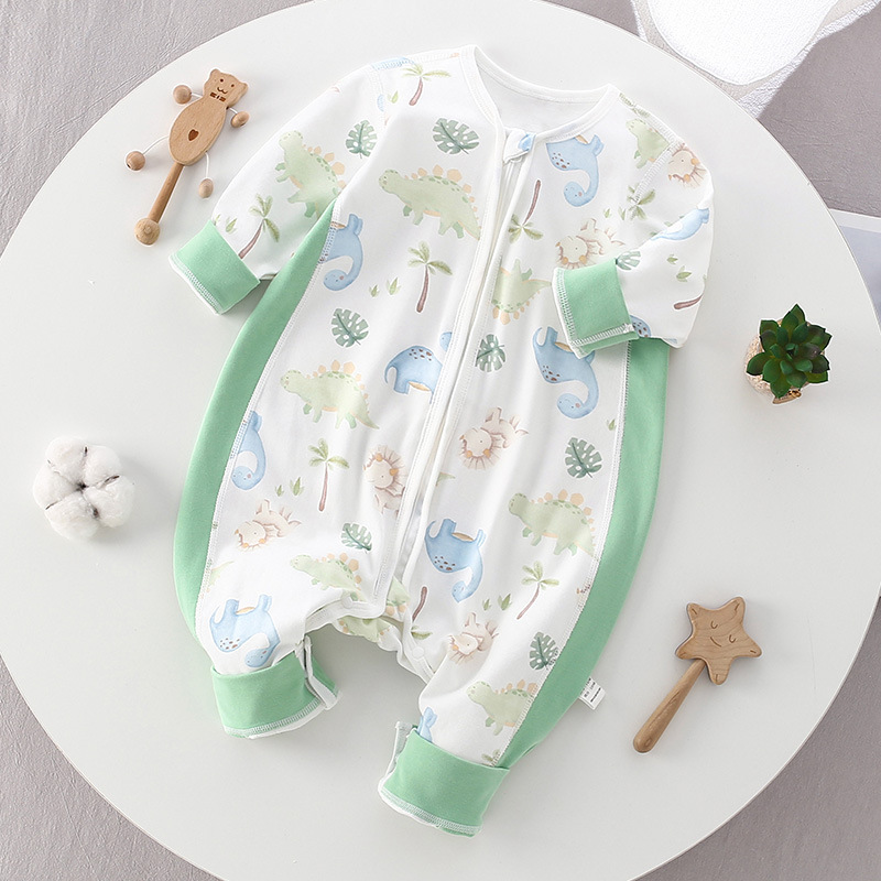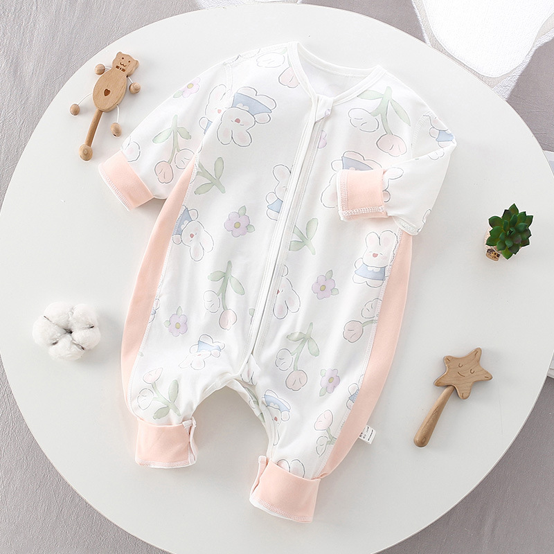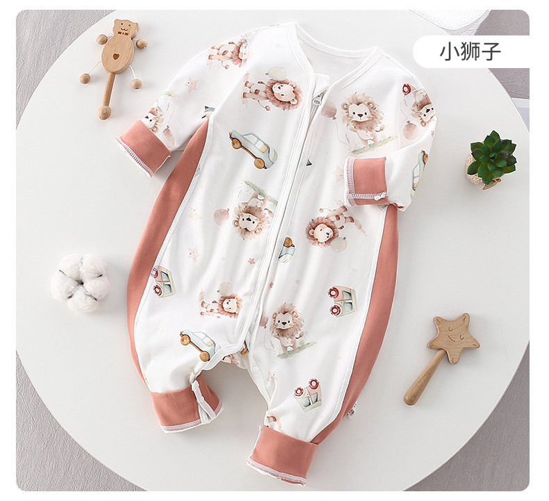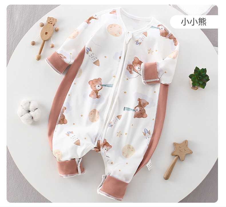 아기 침낭 봄과 가을 순면 남성과 여성 아기 일체형 침낭 아기 옷 스타일 분할 다리 침낭 가을 감기 예방