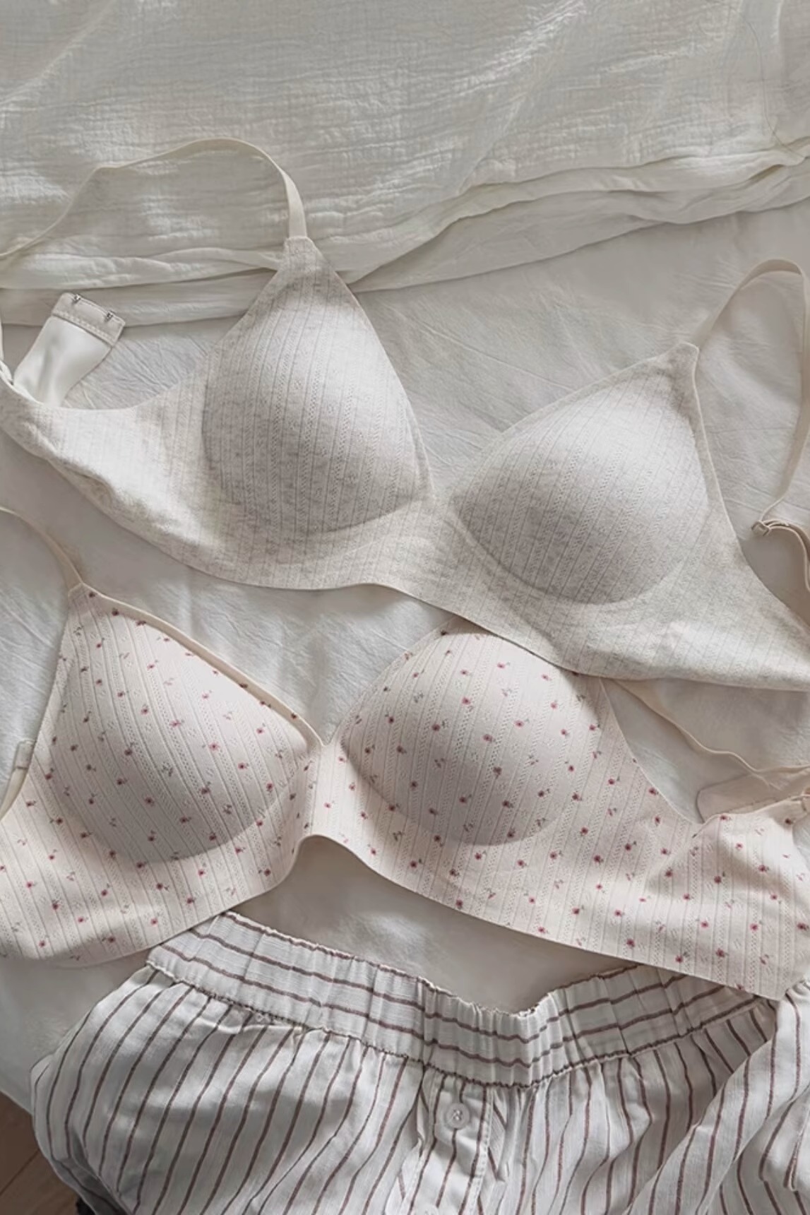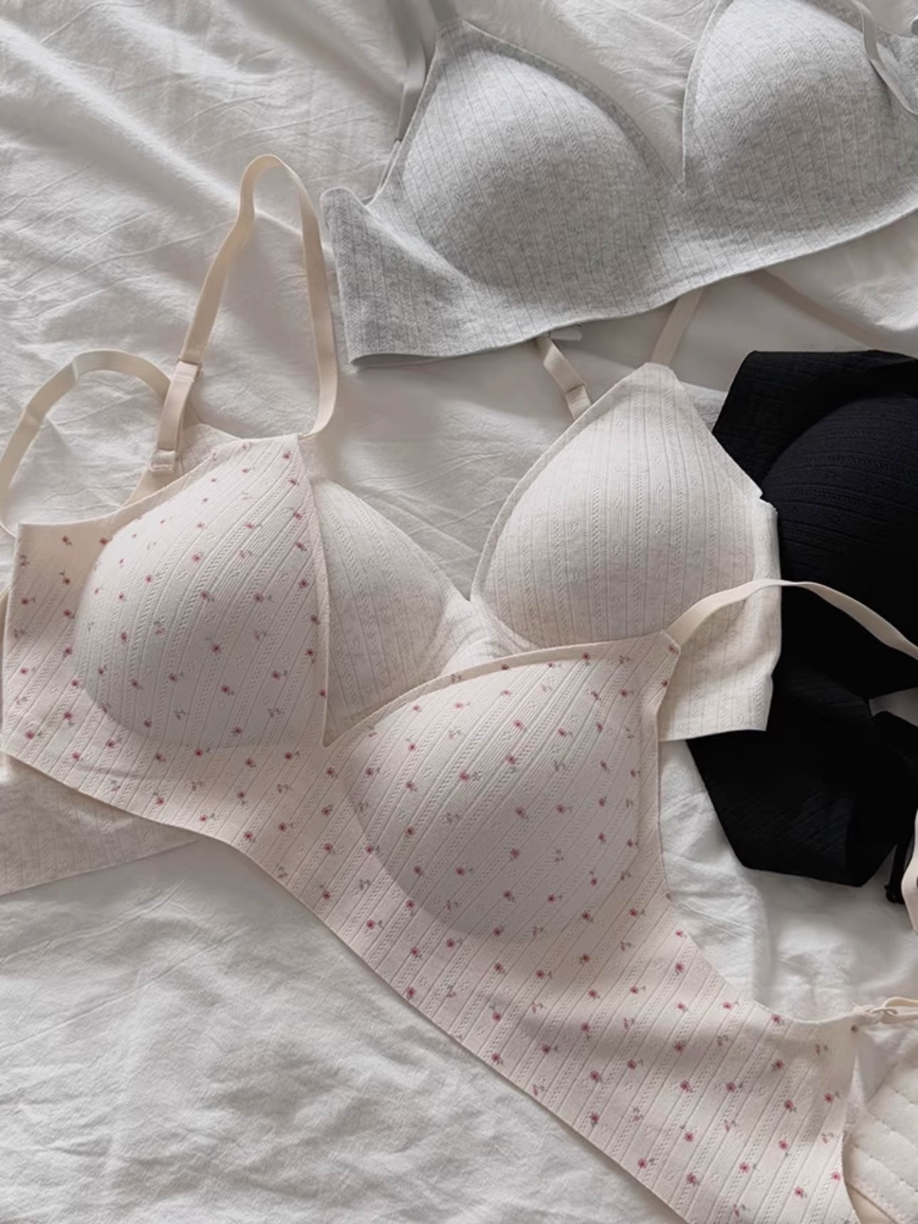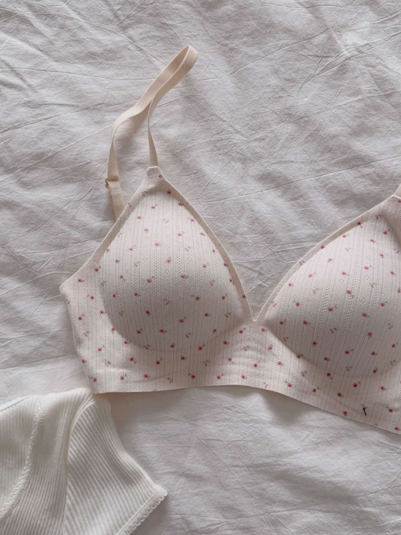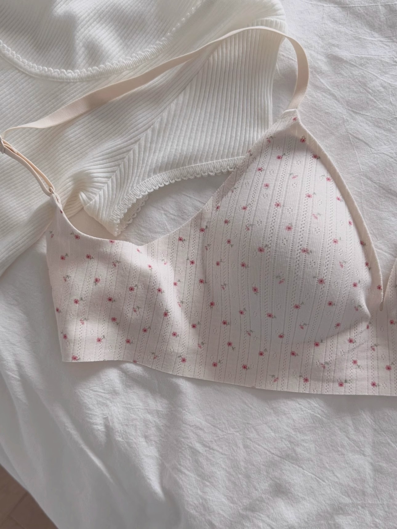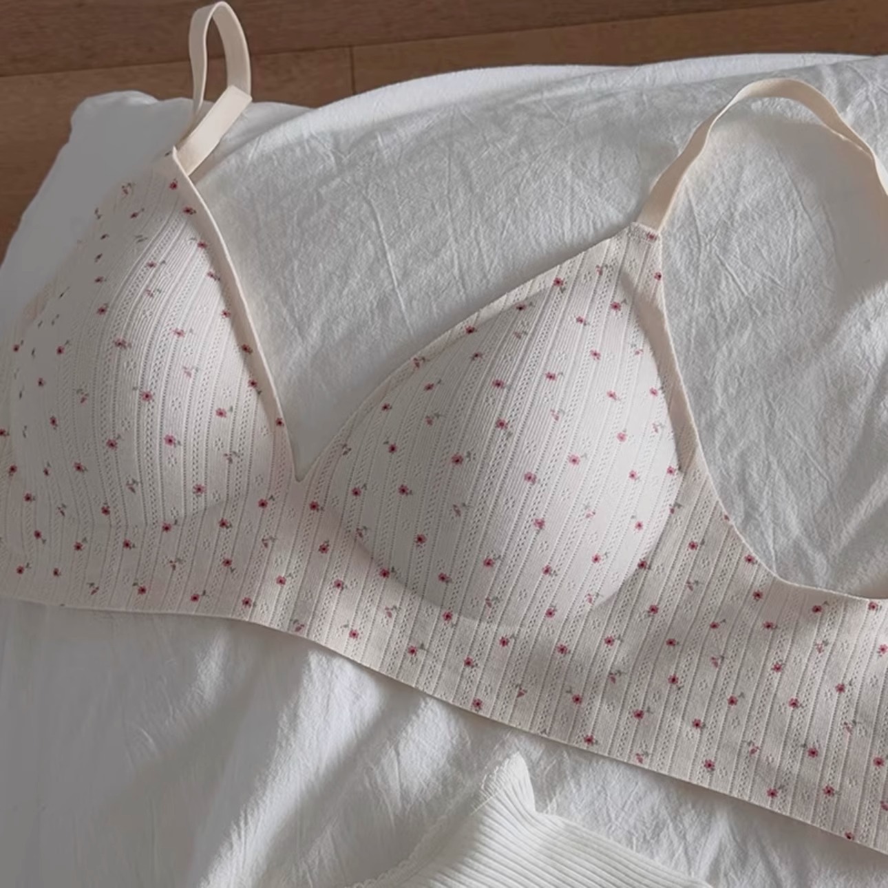 여성용 여름 작은 꽃무늬 속옷, 프렌치 트라이앵글 컵, 얇은 작은 가슴 푸시업, 와이어 없음, 편안한 브라, 새로운 스타일스토어 가기
